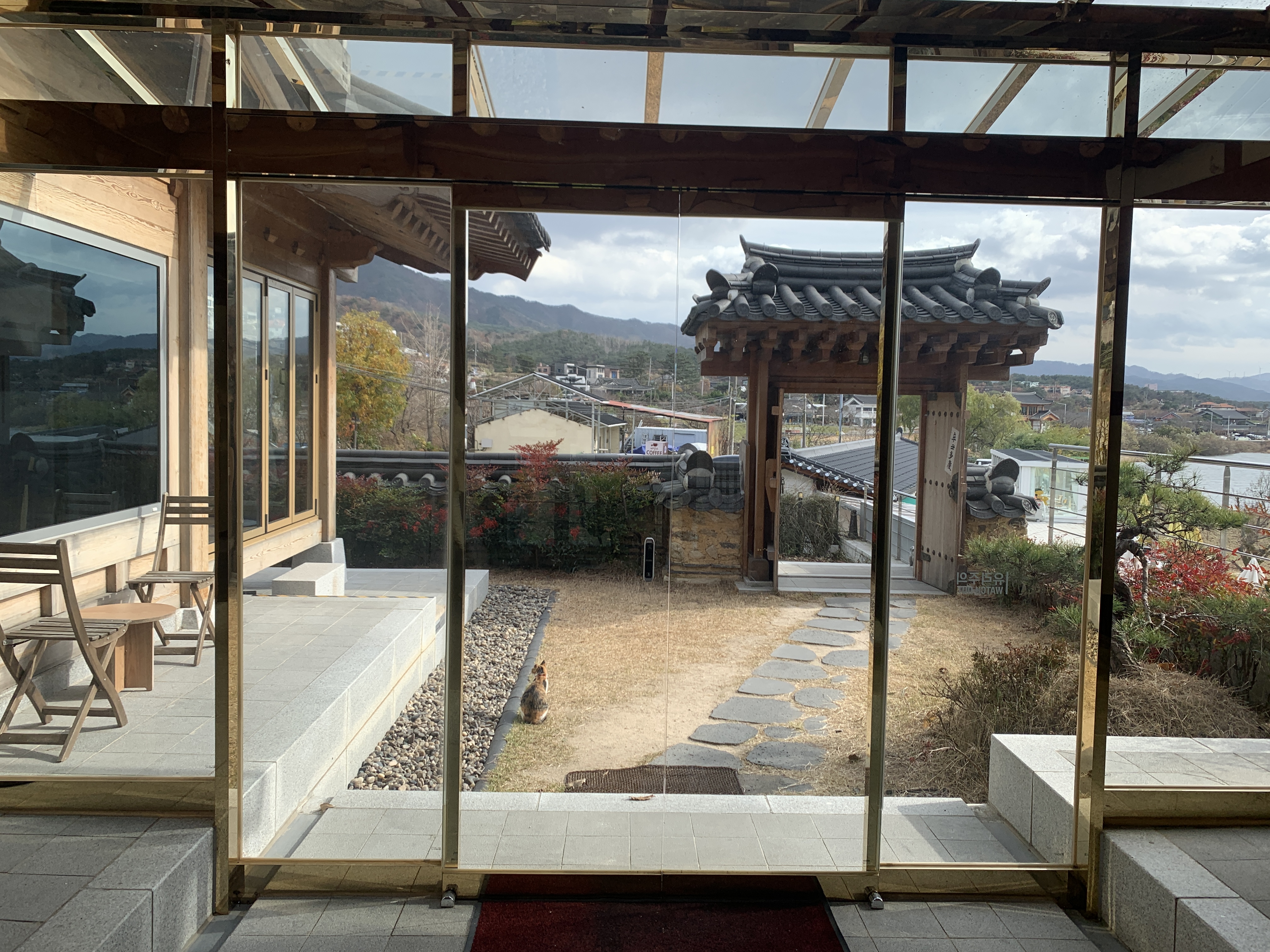 카페는 이런 식으로 생겼다. 모던한 한옥 스타일의 건물인데, 무슨 현대식 궁궐 같은 느낌도 든다.