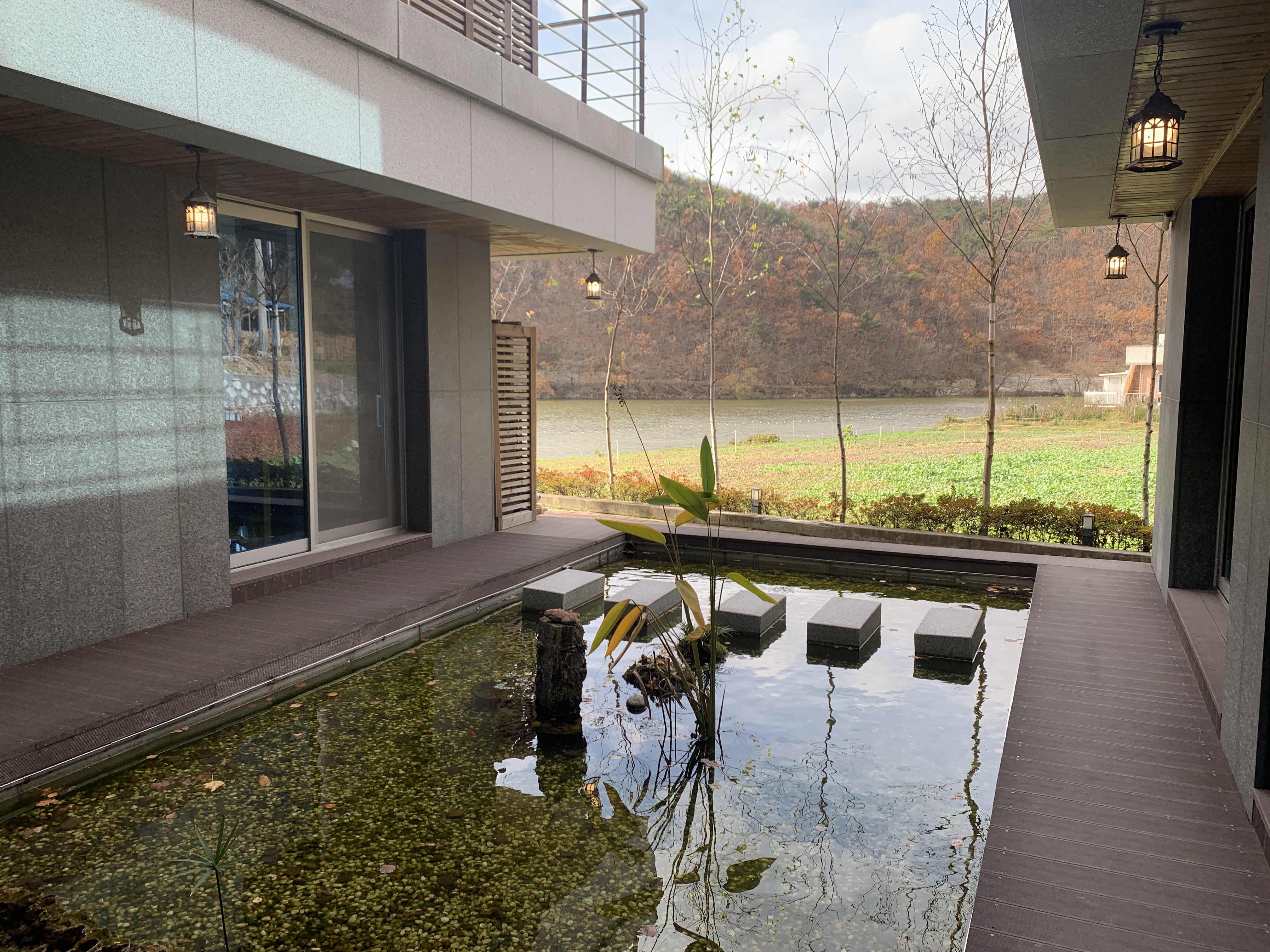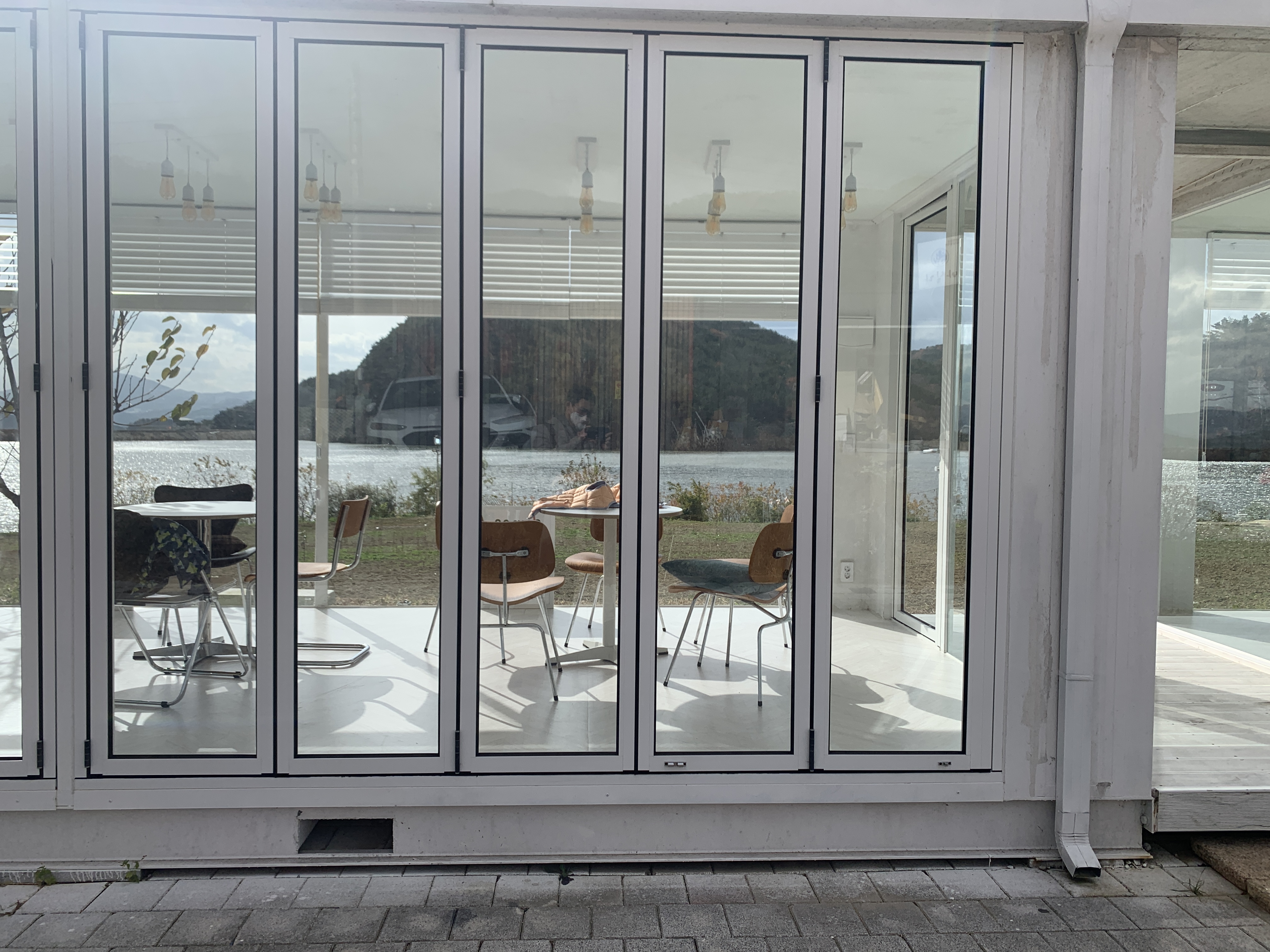 1층에서는 바깥 호수가 보이지 않는데 여기 2층으로 올라오면 이렇게 호수가 광활하게 펼쳐져 있다.