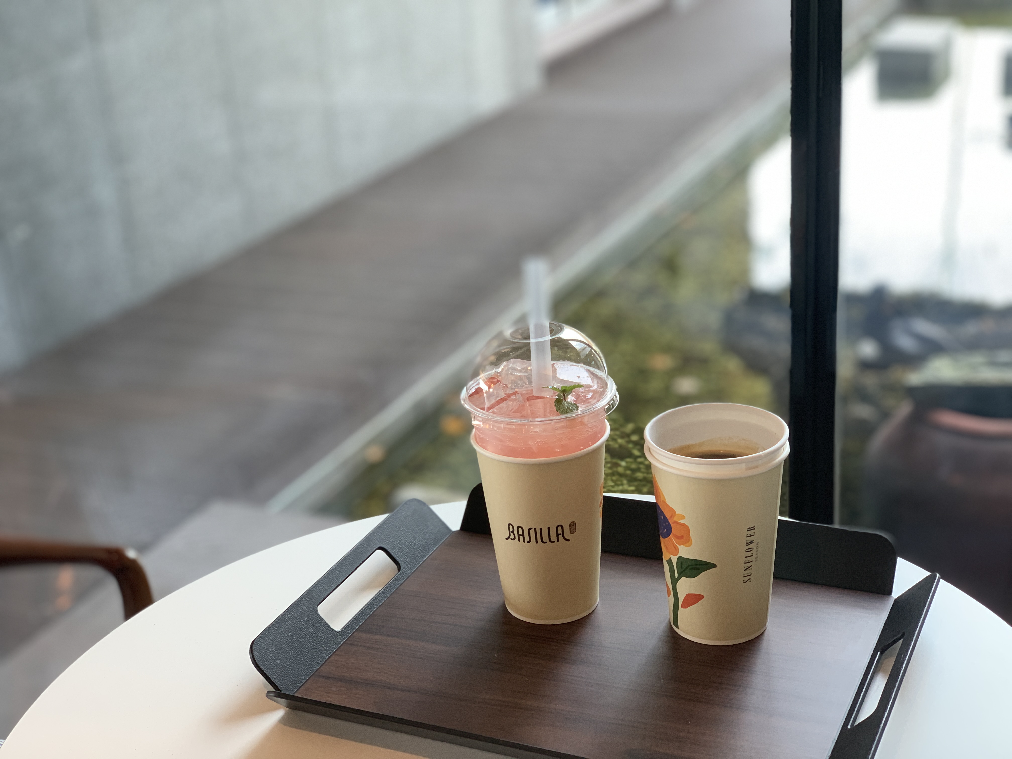 다른 자리에 앉아 있다가 창가 자리가 나서 후다닥 자리를 옮겼다.