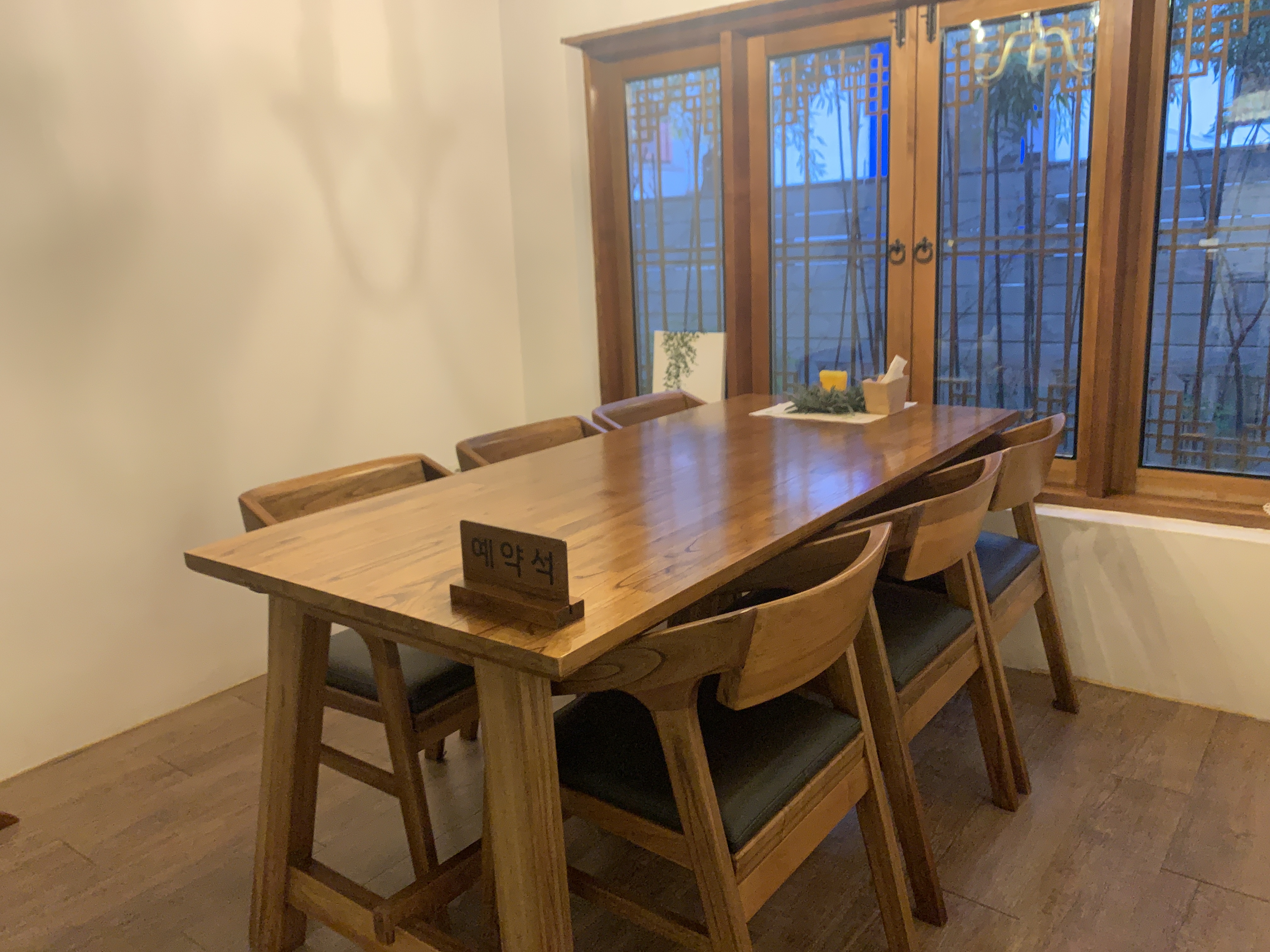 내부가 원목으로 인테리어 되어 있어서 한옥 분위기와 잘 어울린다.