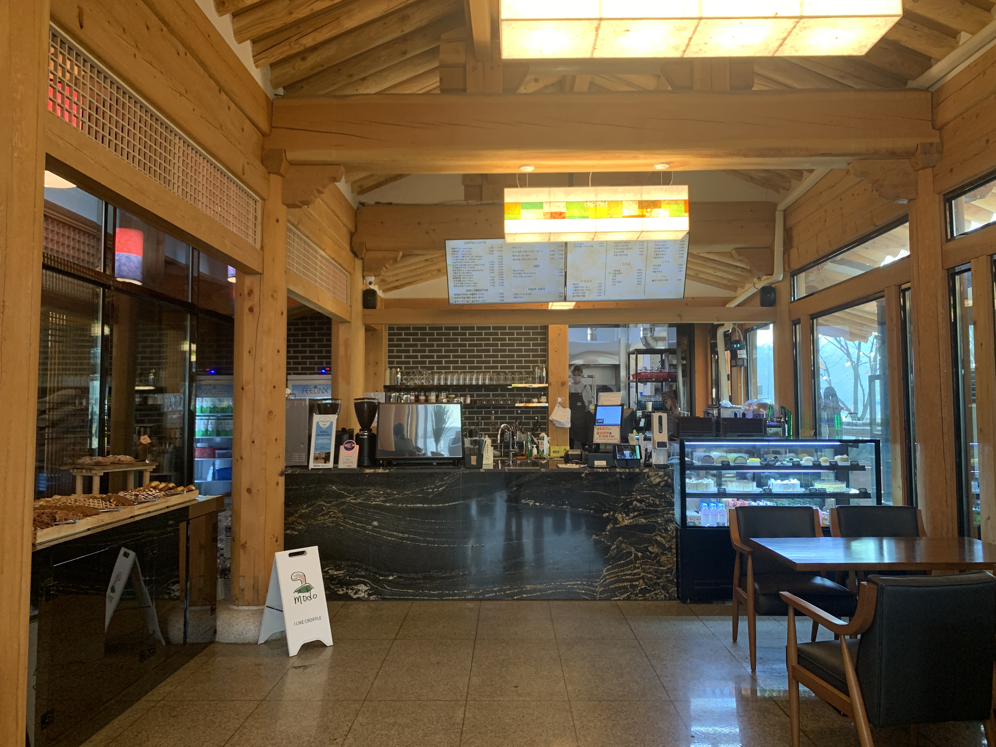 여기서 주문하고 안에 앉아도 되고 테라스쪽에 앉아도 된다.