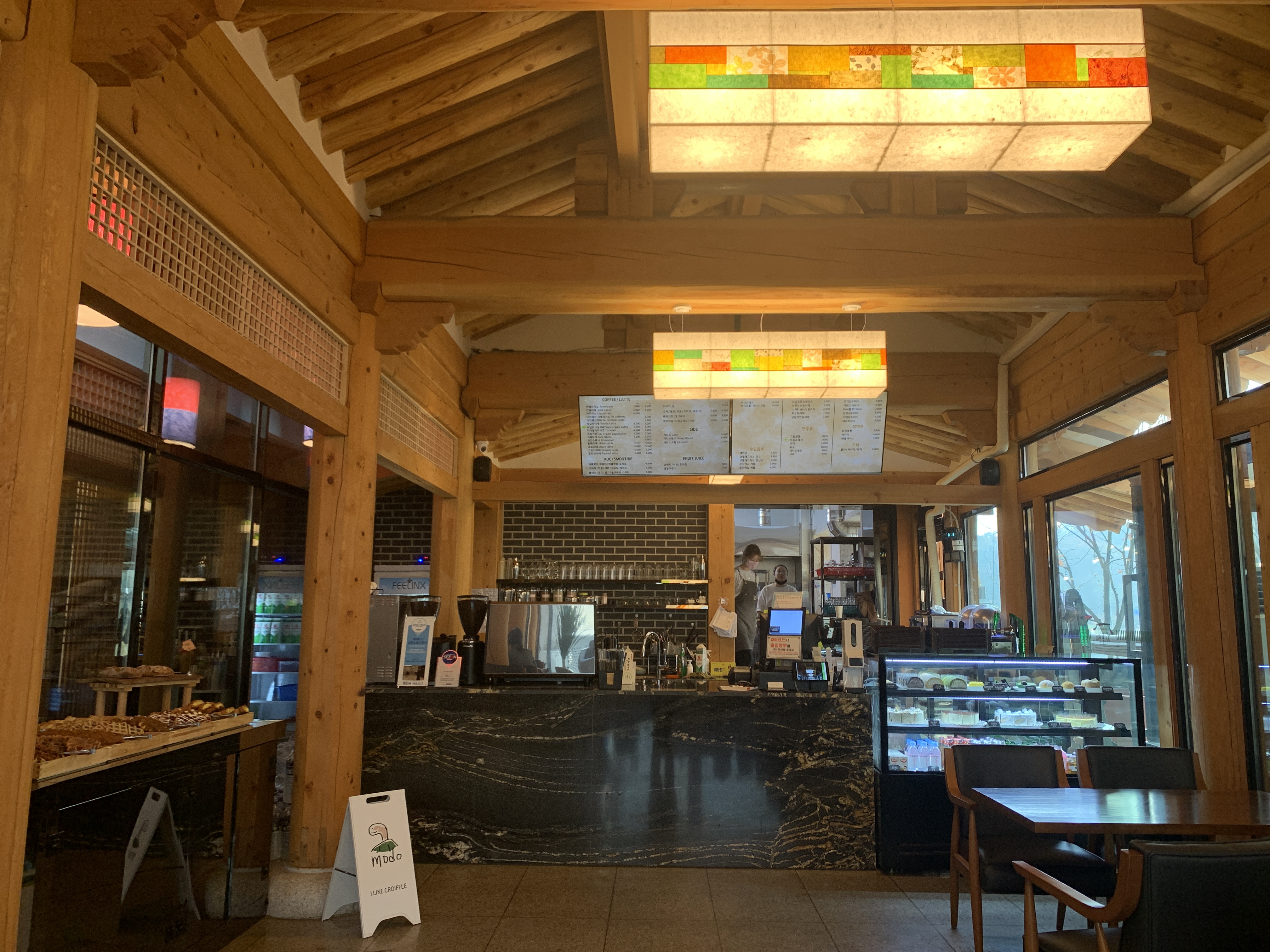 여기서 주문하고 안에 앉아도 되고 테라스쪽에 앉아도 된다.
