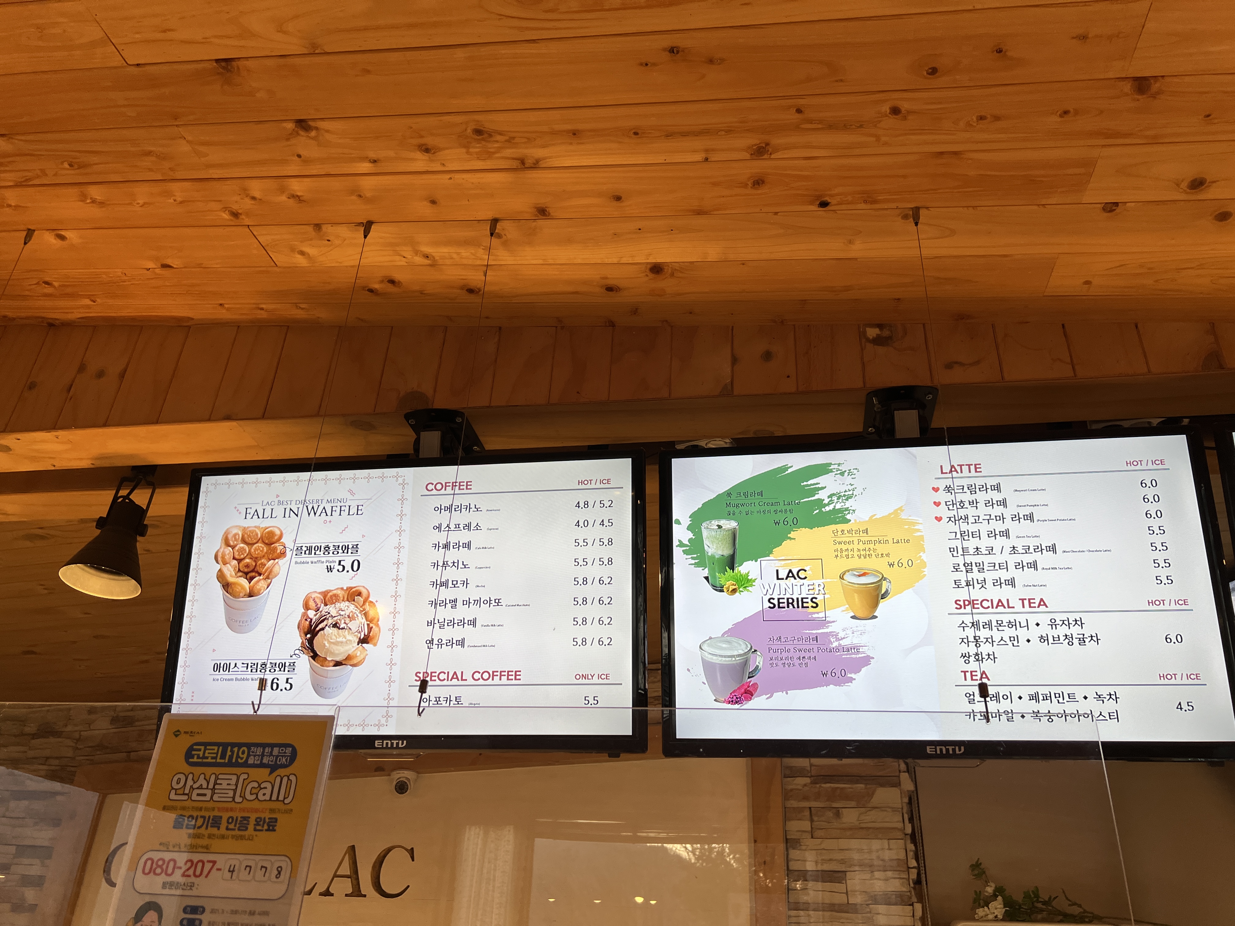 메뉴는 특별한 건 없고 와플과 커피를 판매하고 있습니다.