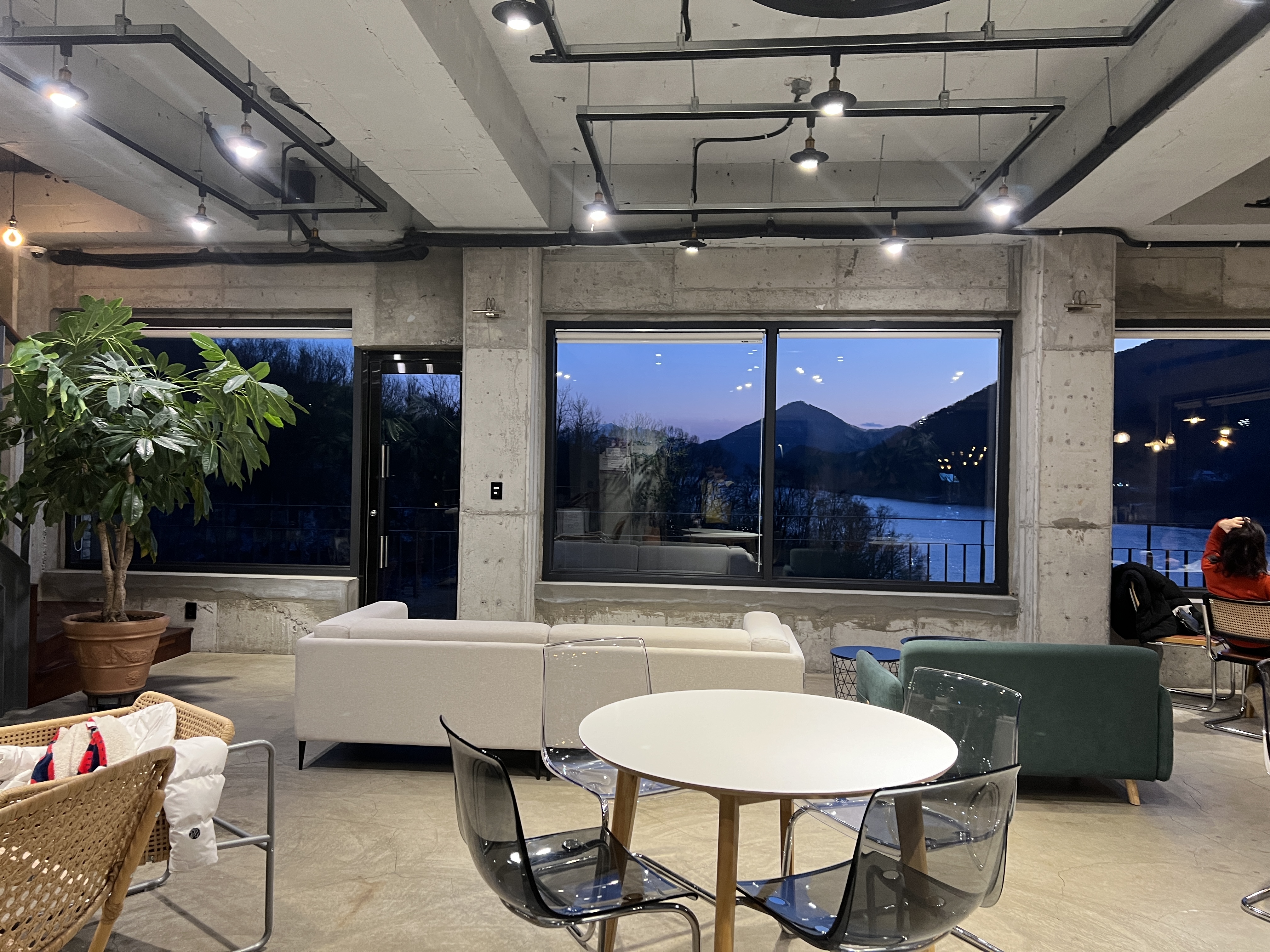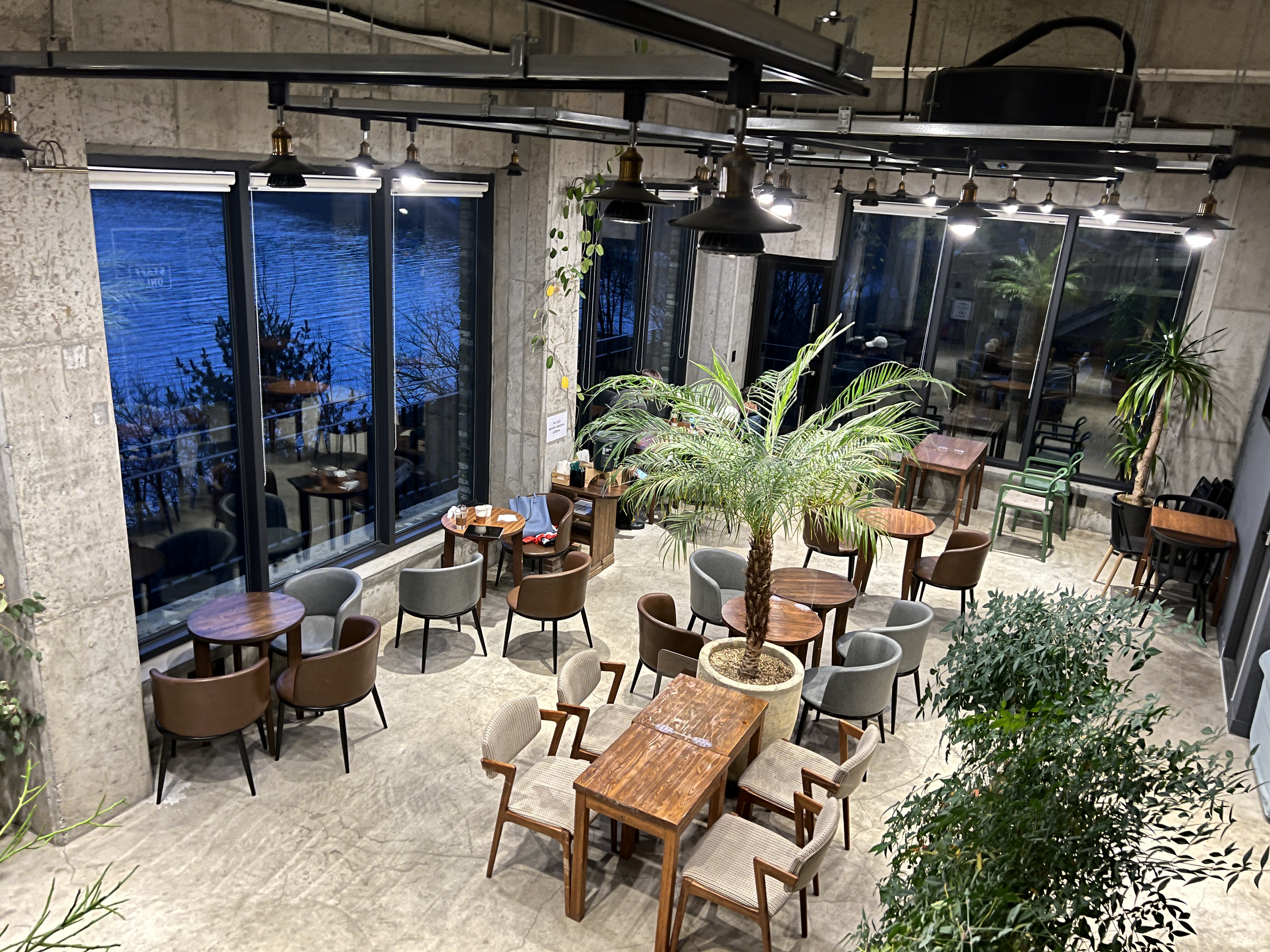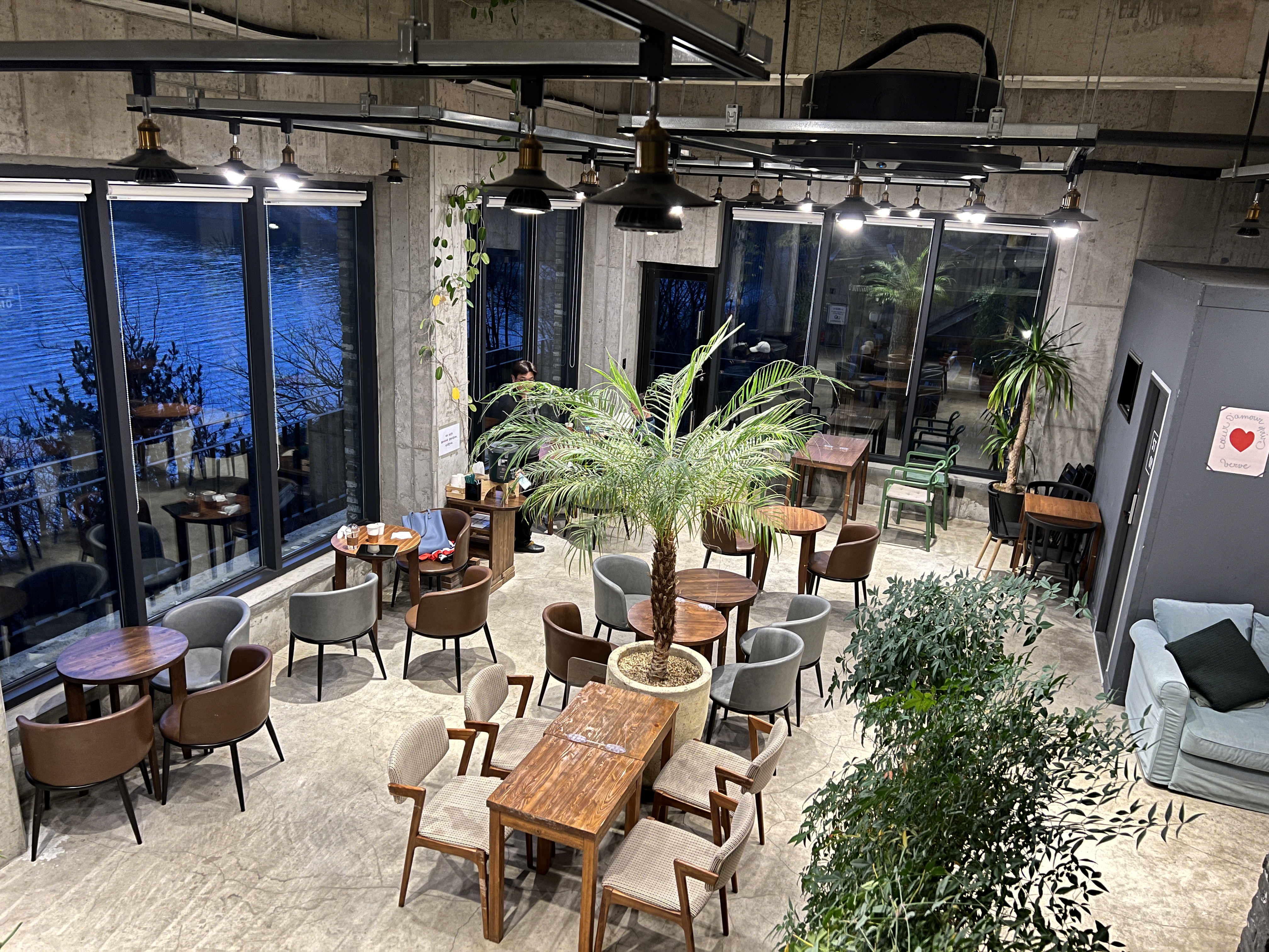 슬슬 석양이 지기 시작하는데 불을 켜니까 카페가 감성적이고 참 예쁩니다.