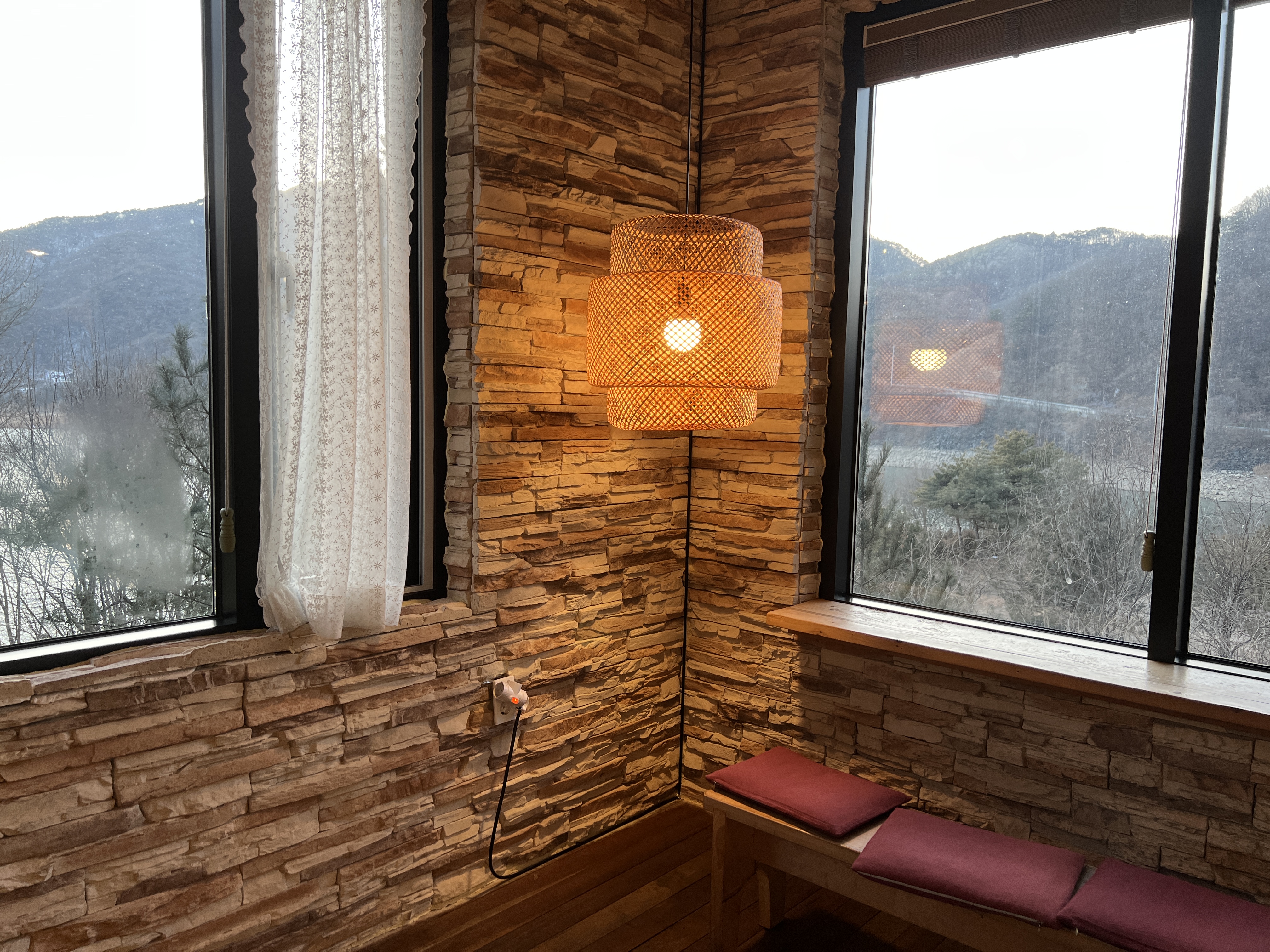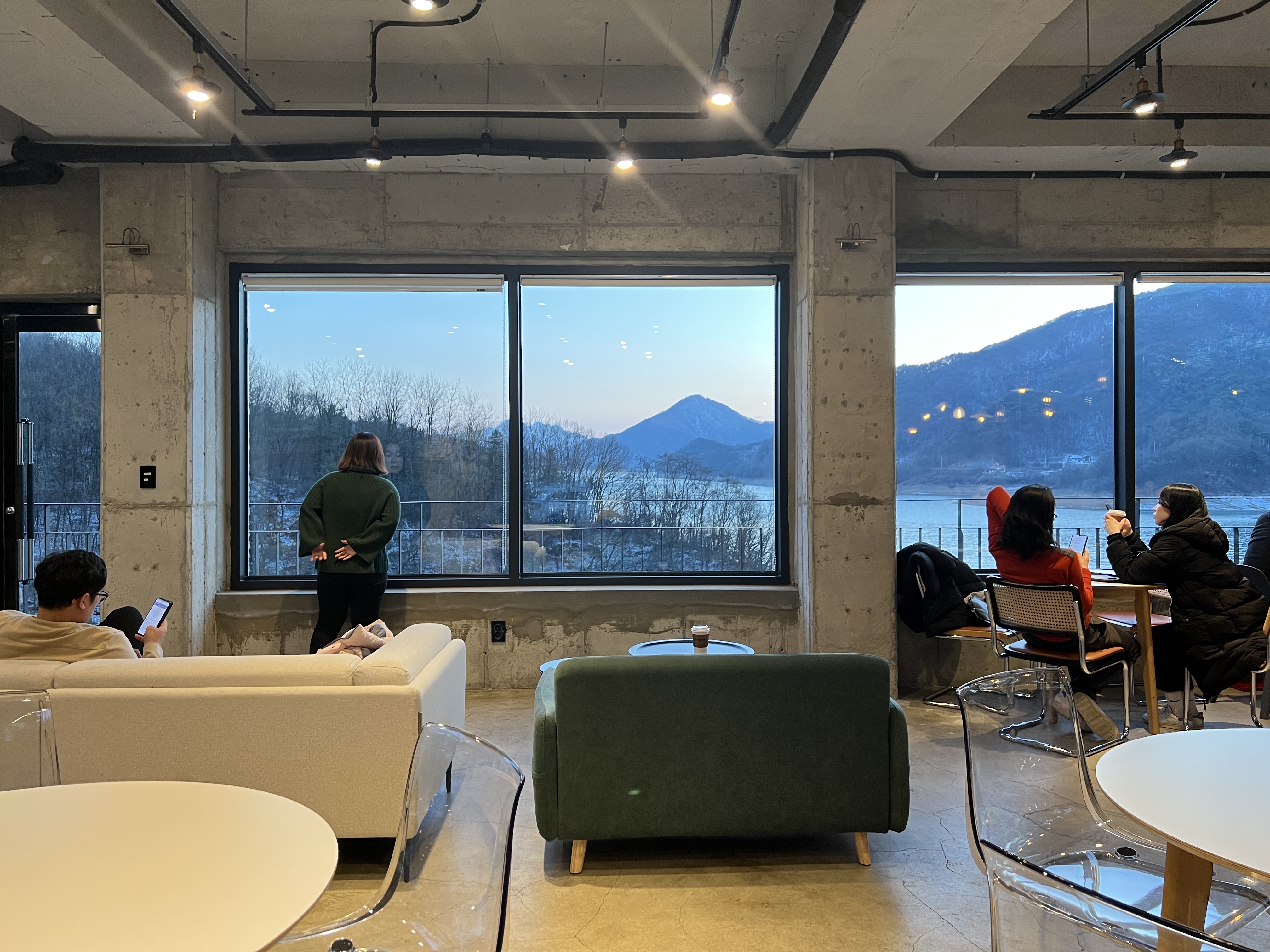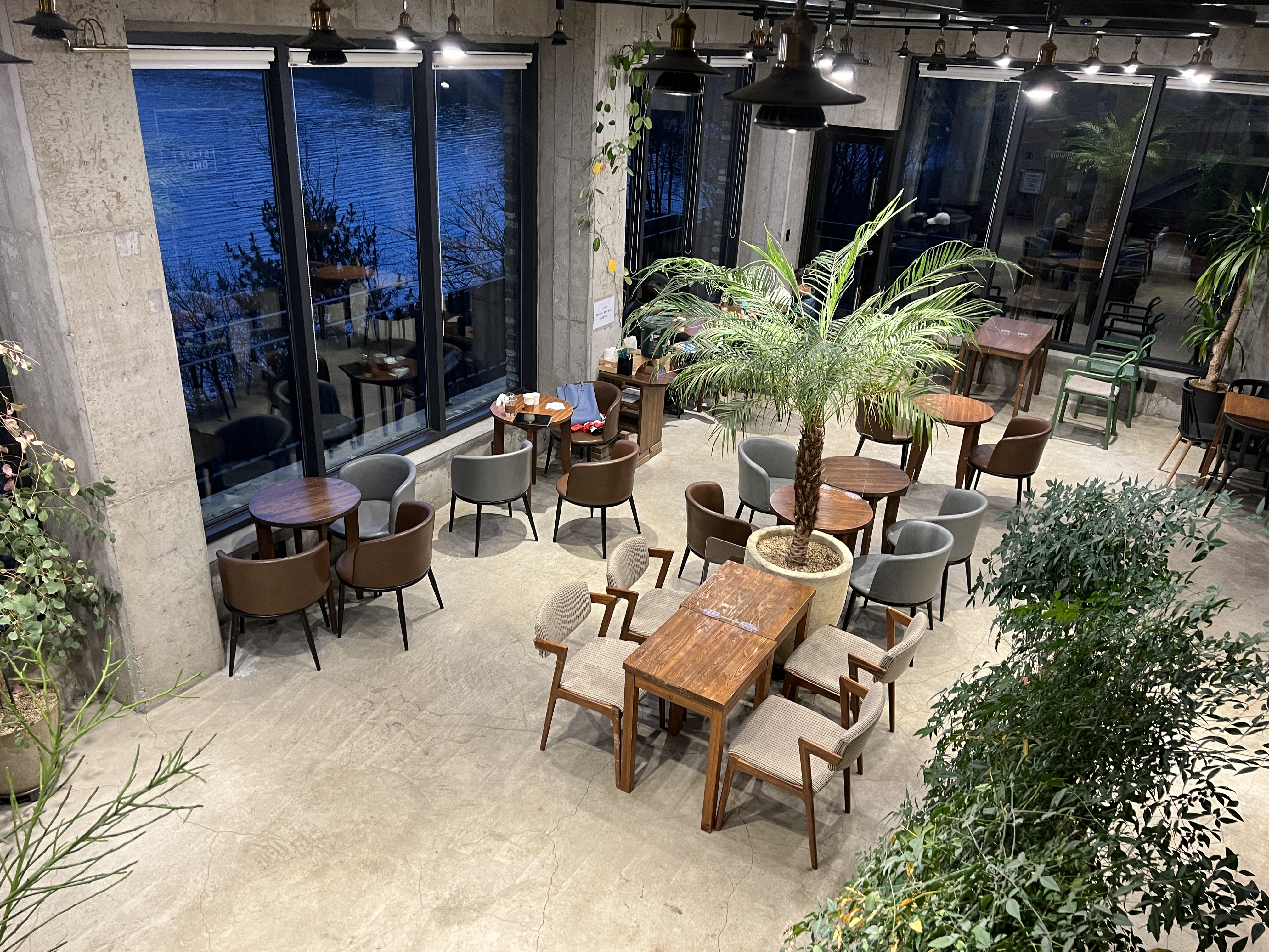 슬슬 석양이 지기 시작하는데 불을 켜니까 카페가 감성적이고 참 예쁩니다.