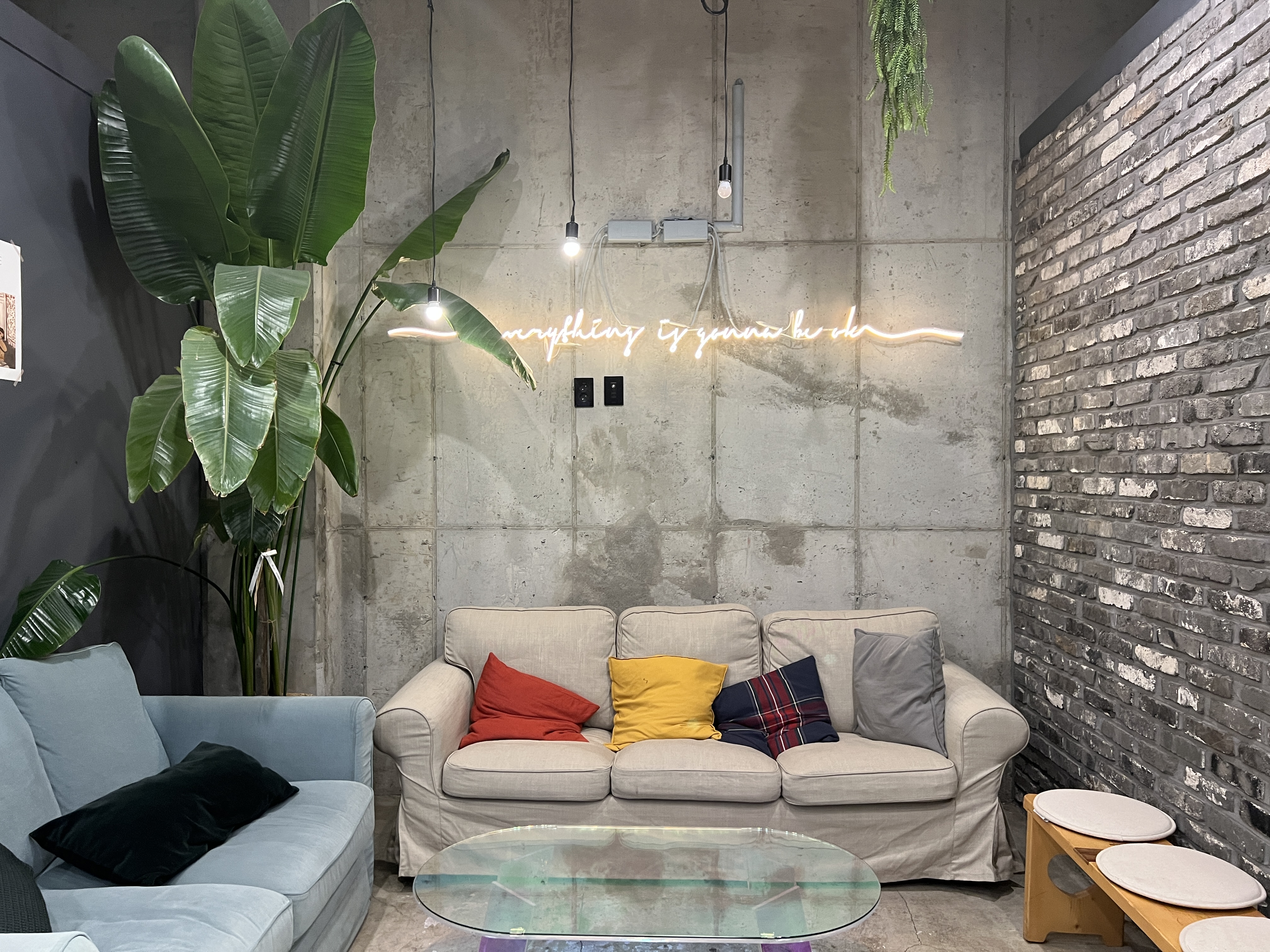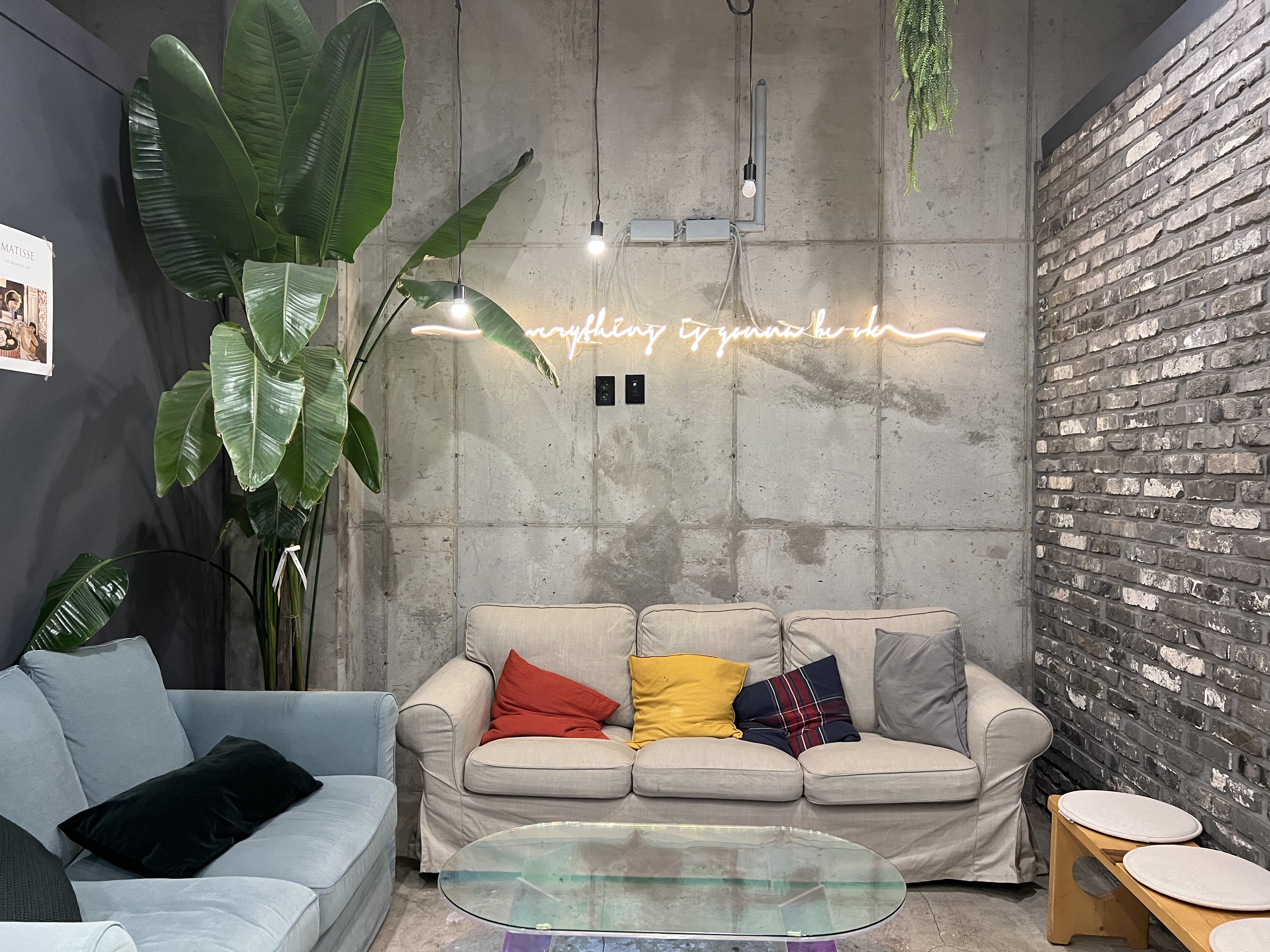 이런 식으로 그냥 벽면을 따라서 의자만 주루룩 있는 형태여서 약간 창고 같다는 느낌이 들기도 하네요.