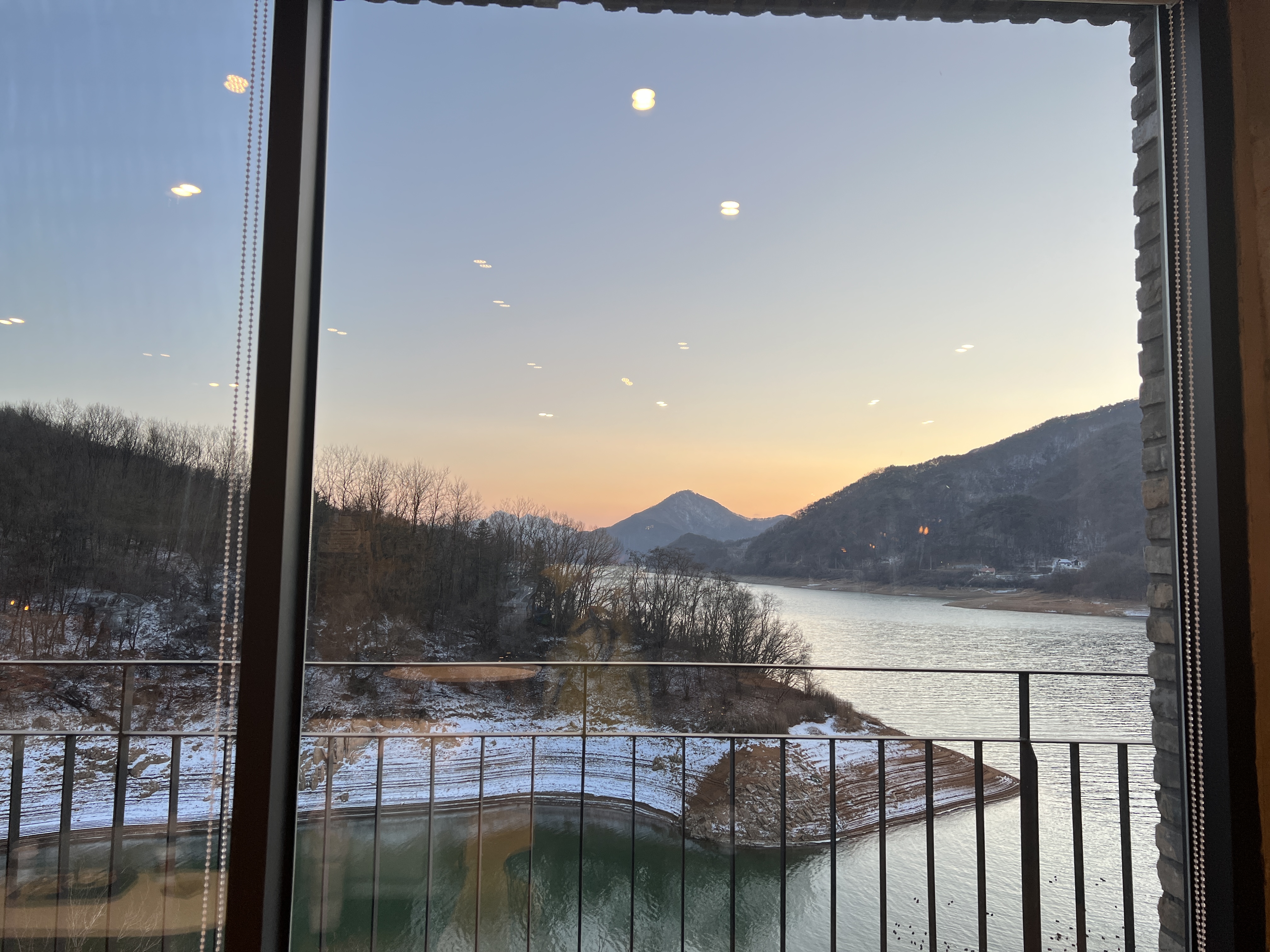바깥 뷰를 보는데 경치가 정말 예쁩니다.