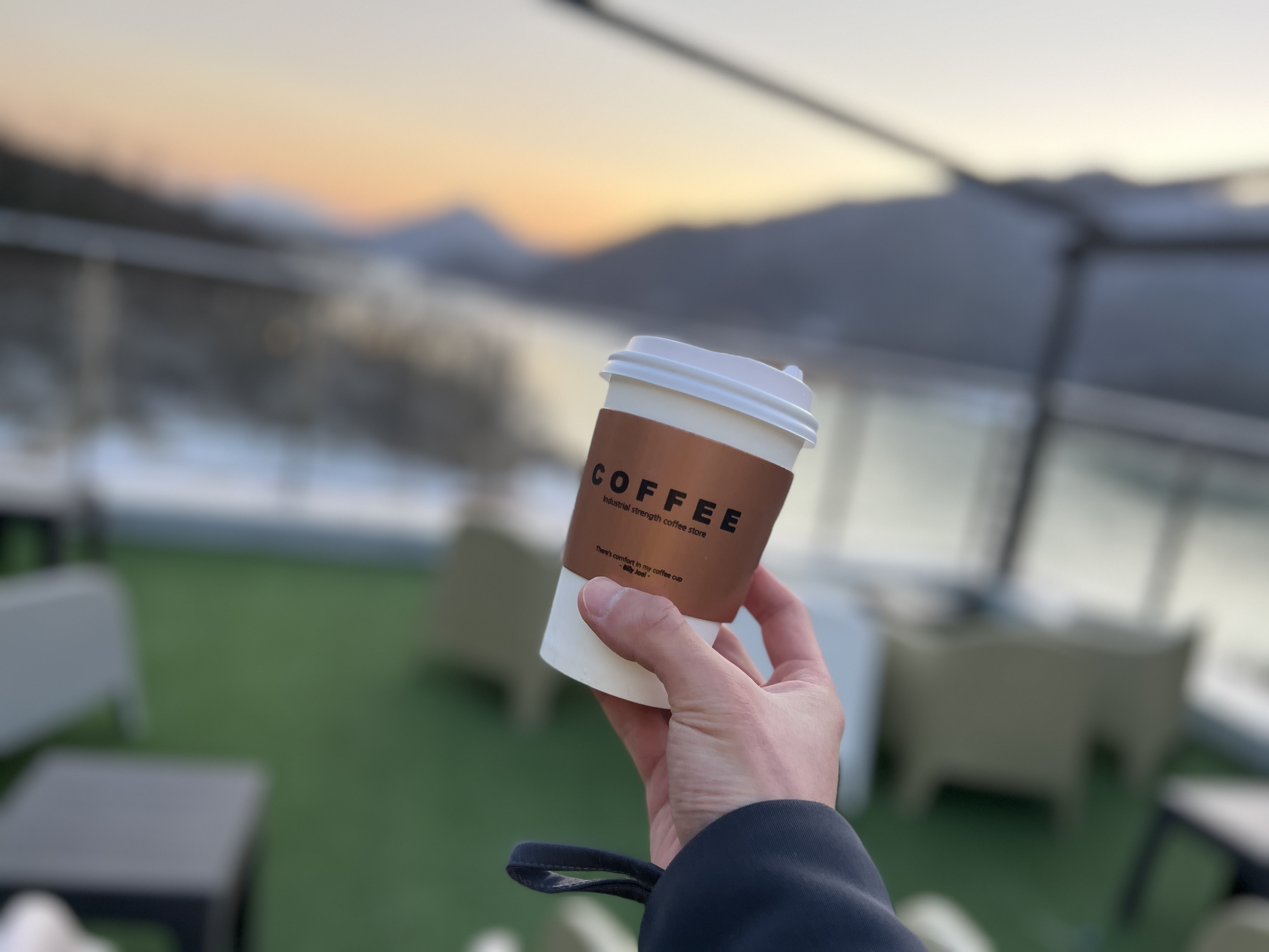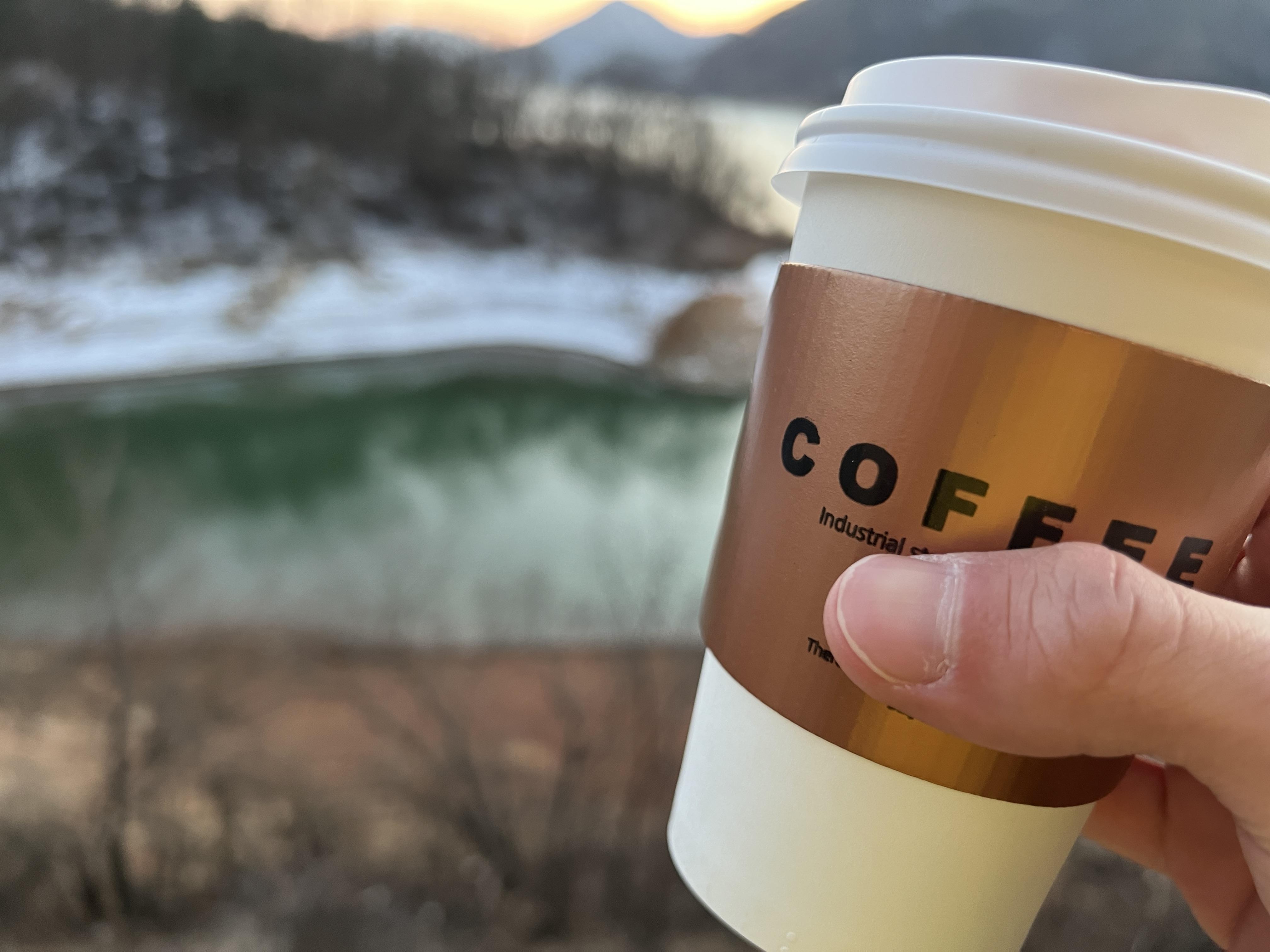 커피를 들고 밖으로 나와봤습니다. 커피는 그냥 일회용 잔에 줘서 뭐 특별한 건 없습니다.