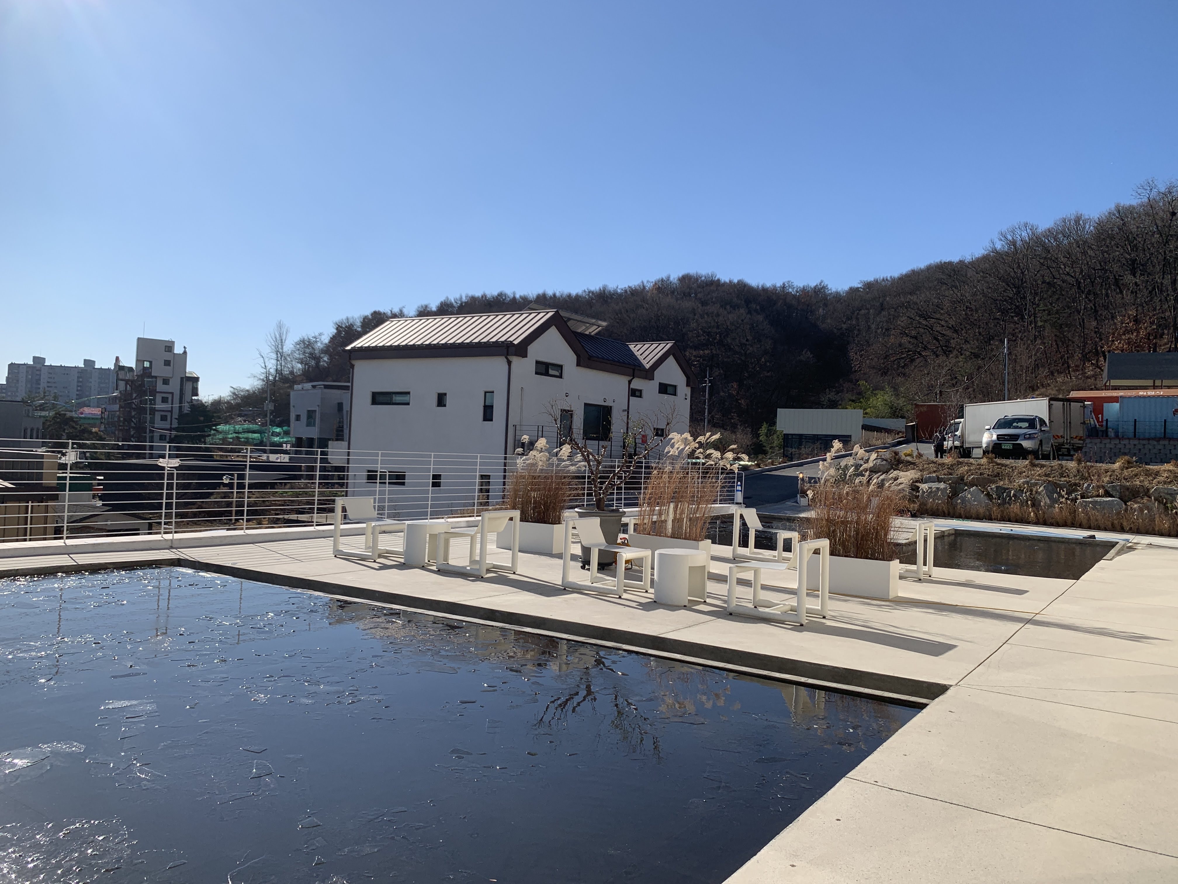 그리고 이 카페 매력 포인트 중 하나는 바로 이 바깥에 있는 물이다.
