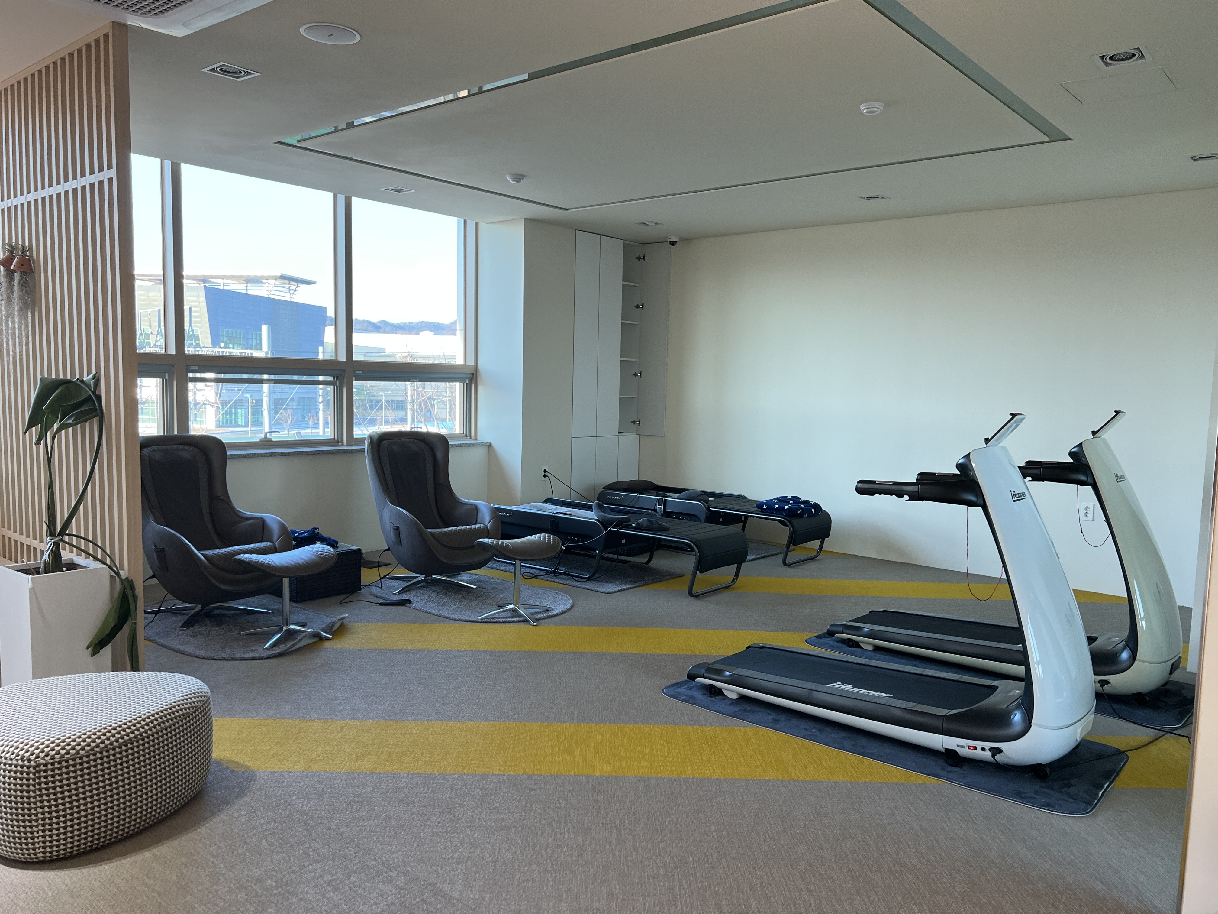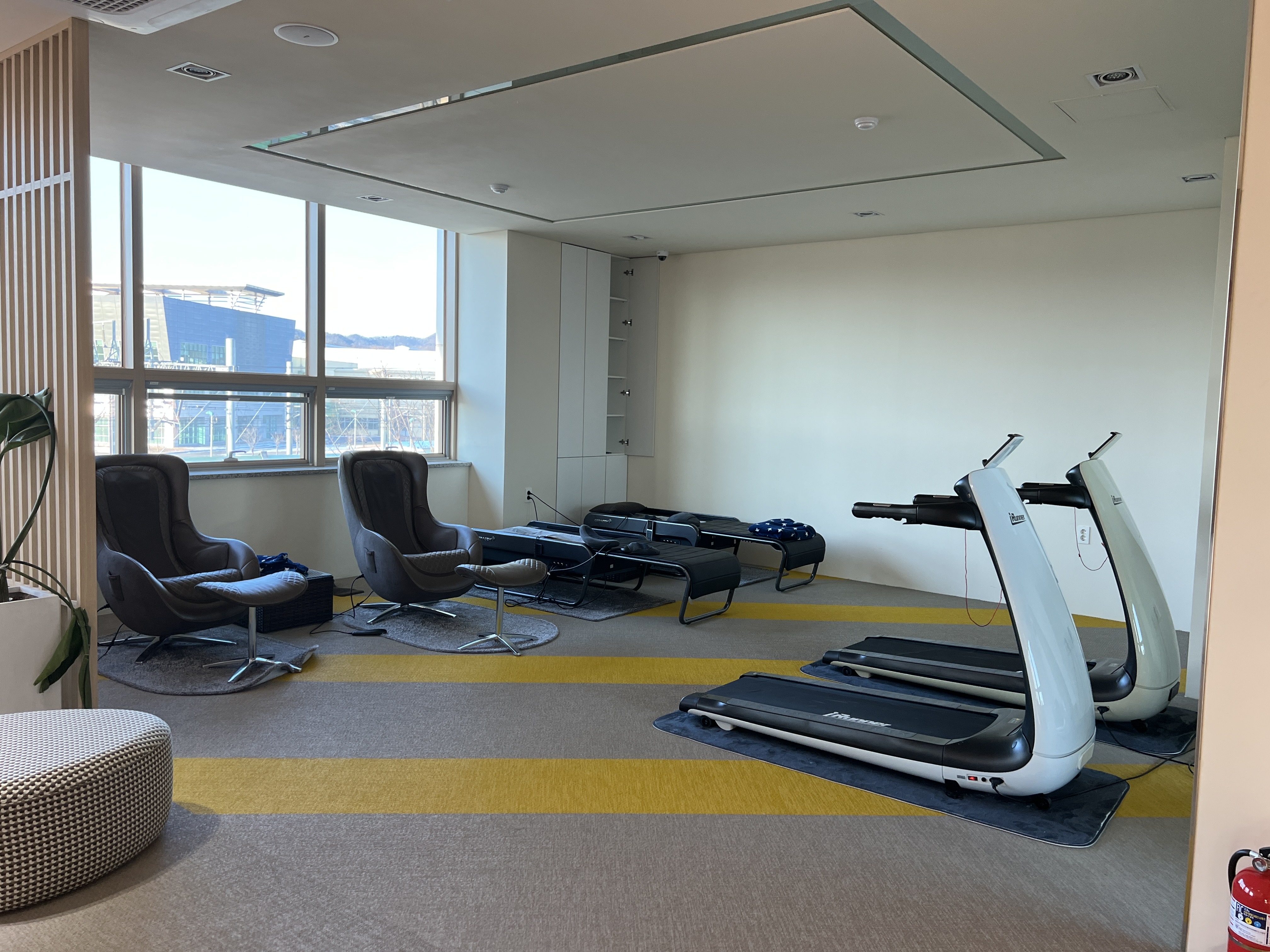 그리고 휴게실 공간이나 간단하게 운동을 할 수 있는 런닝머신 있고 안 말을 할 수 있는 안마의자까지 있다.
