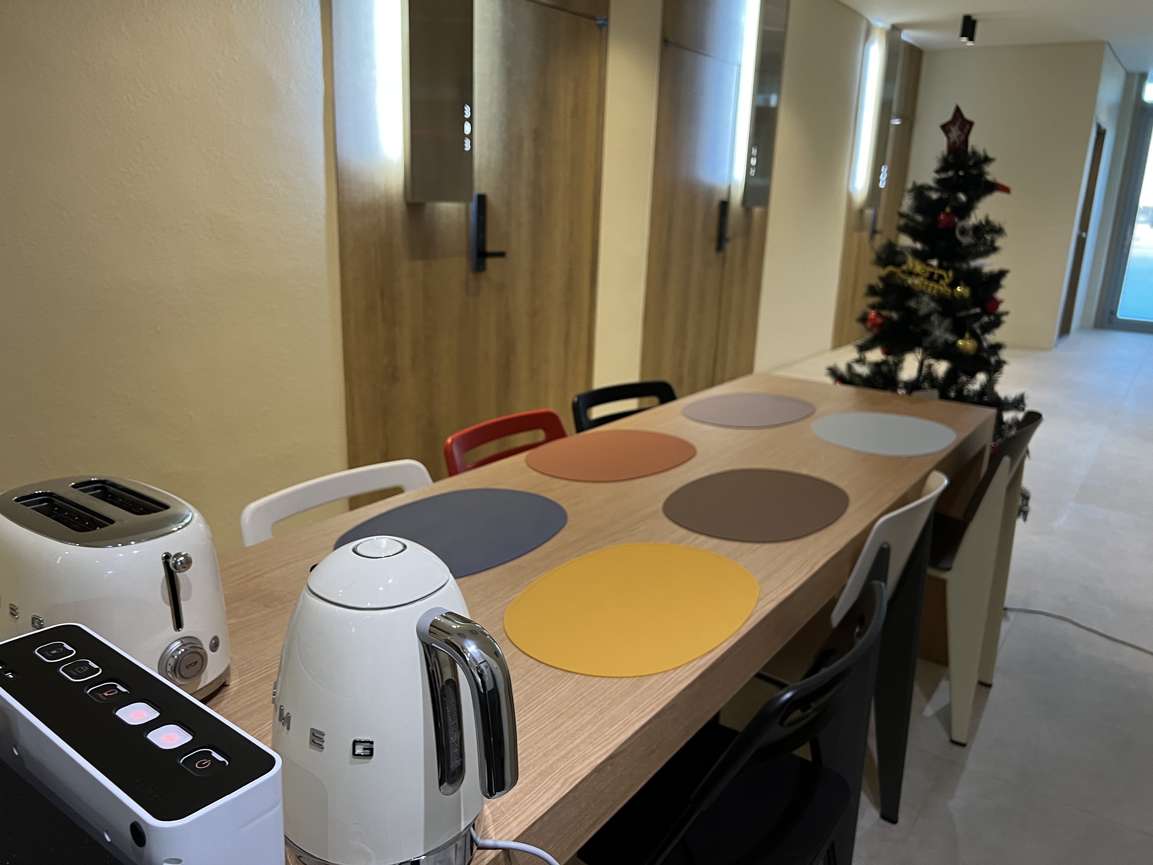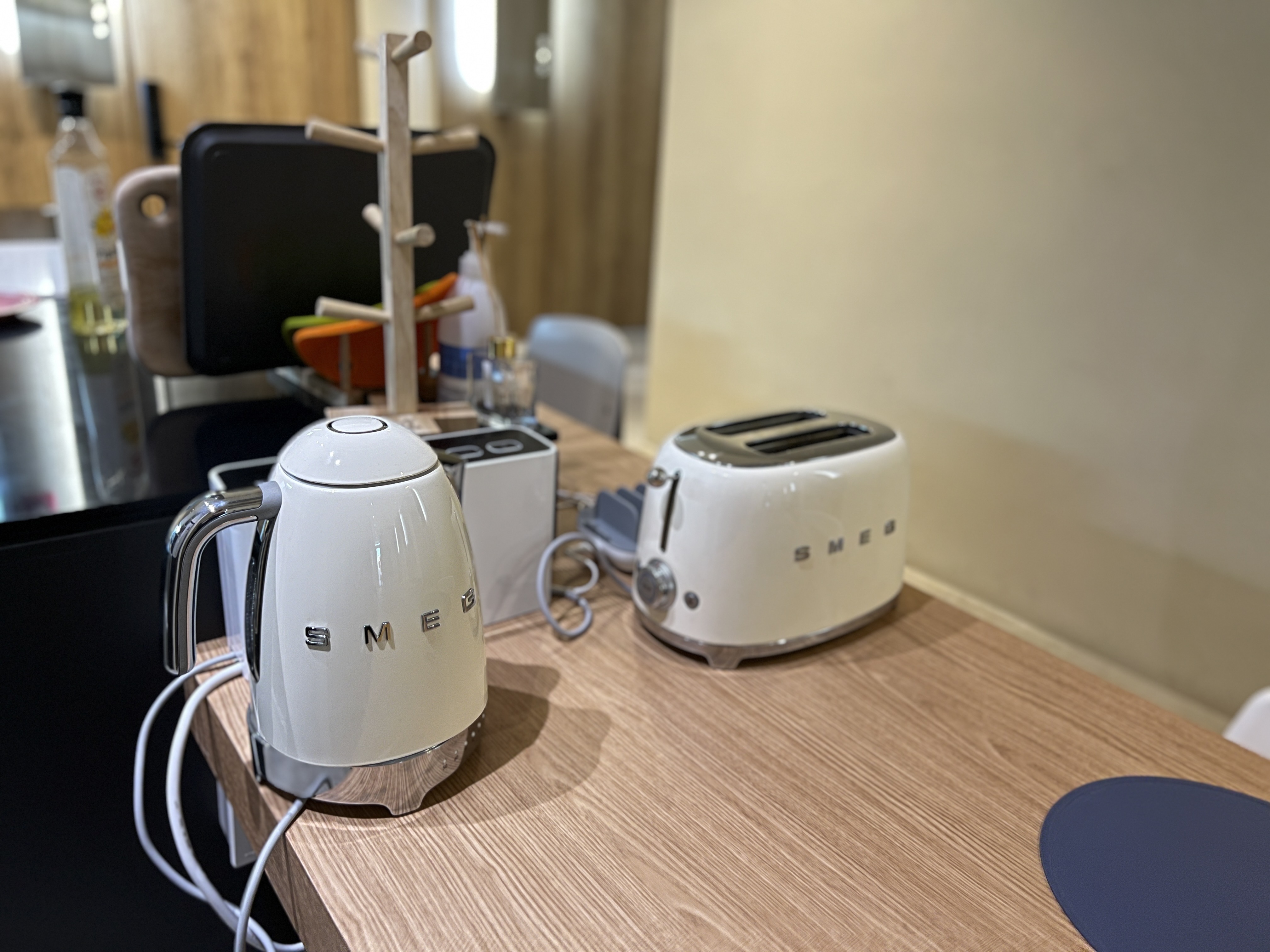 나는 이걸 보고 정말 깜짝 놀랐는데 주방에 있는 커피포트와 토스트기가 스메그 브랜드 제품이다. 무려 스메그 !!!
