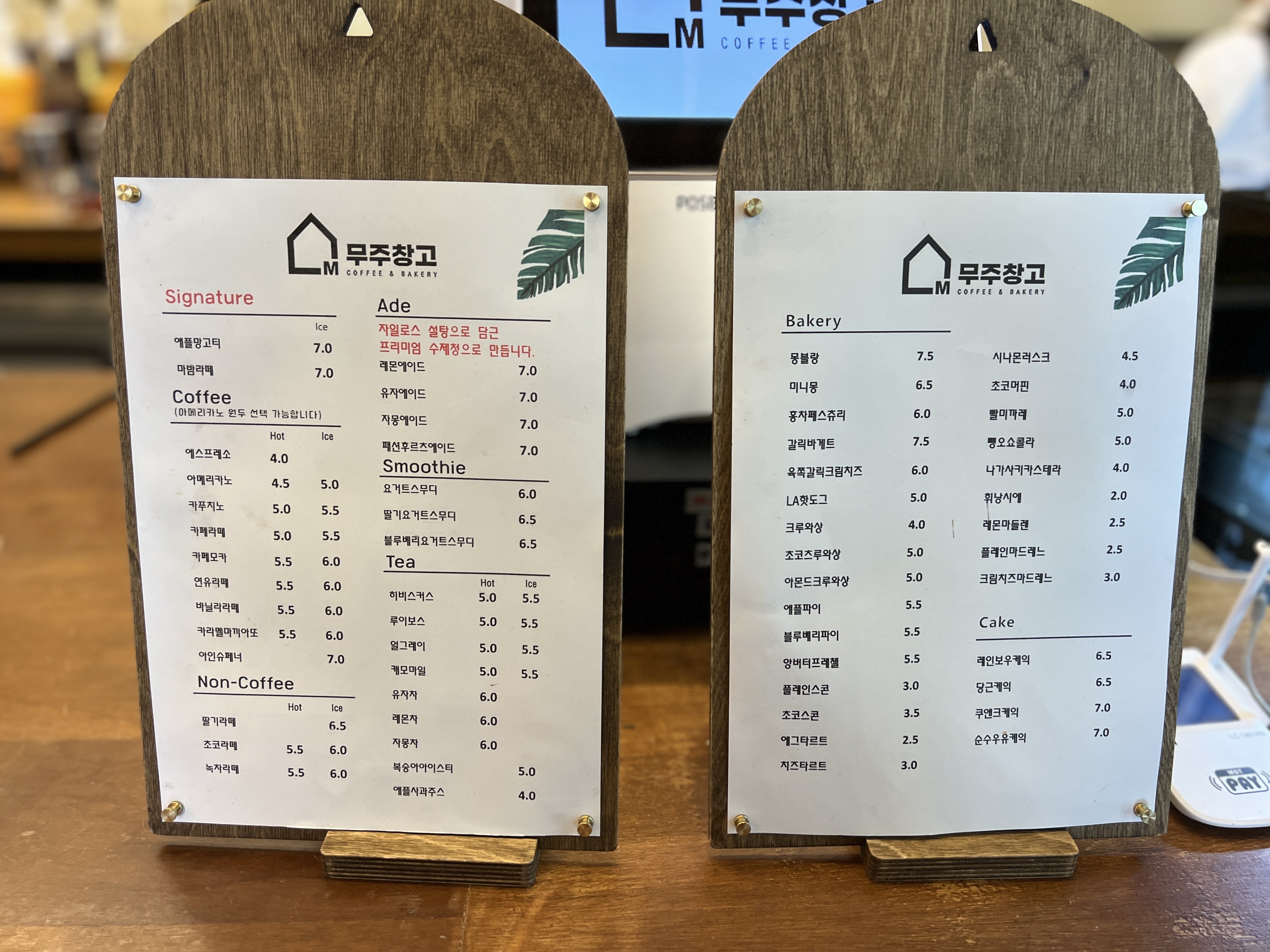 메뉴판인데 커피랑 베이커리가 약 5000원 정도 한다