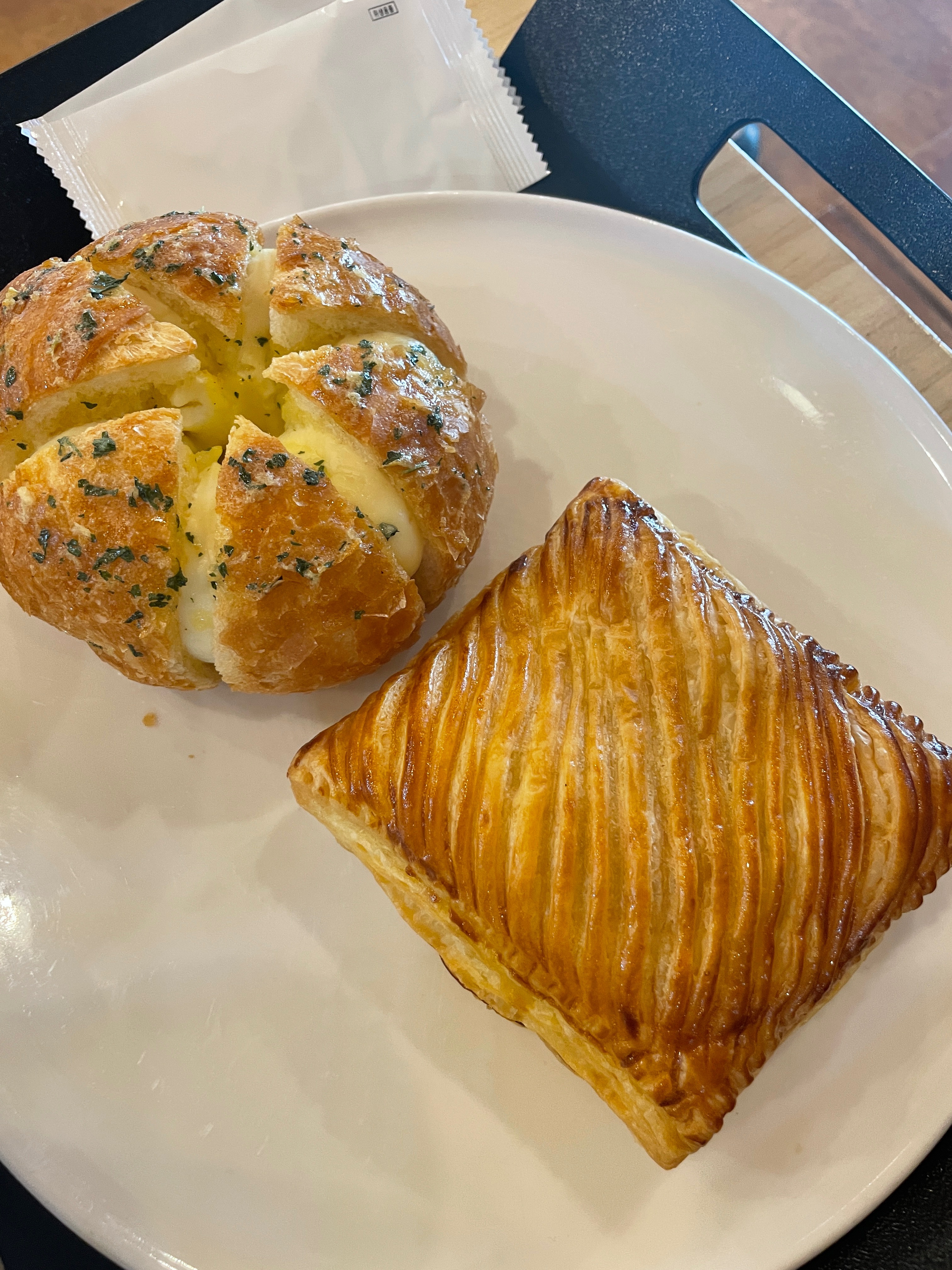 나는 마늘 바게트랑 애플 파이를 시켰는데 정말 맛있었다.