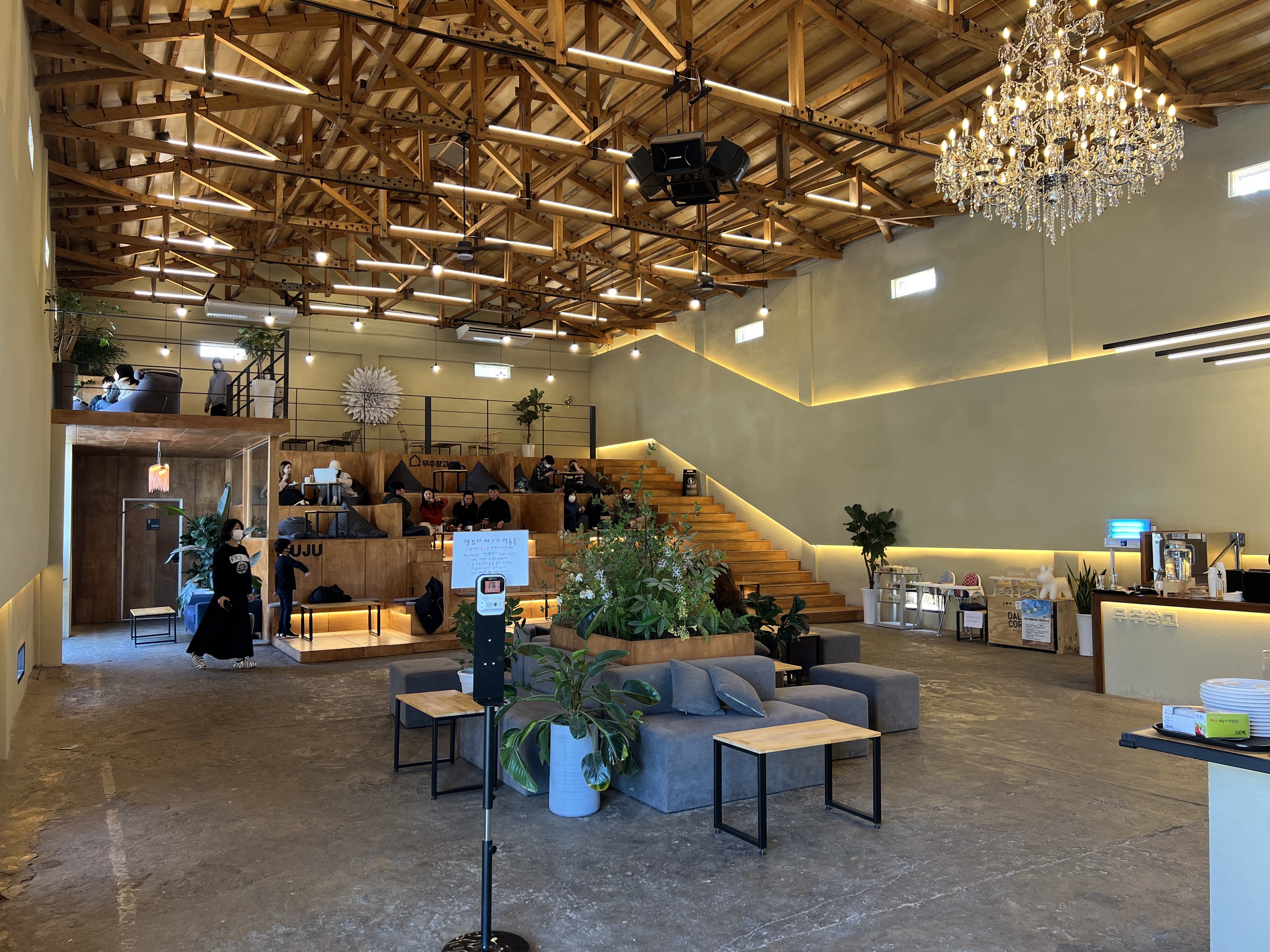 요즘 유행하는 대형 카페를답게 천장이 높고 자리를 간에 간격이 넓어서 자연스럽게 거리 두기를 하면서 다른 사람을 크게 신경 쓰지 않고 시간을 보낼 수 있다