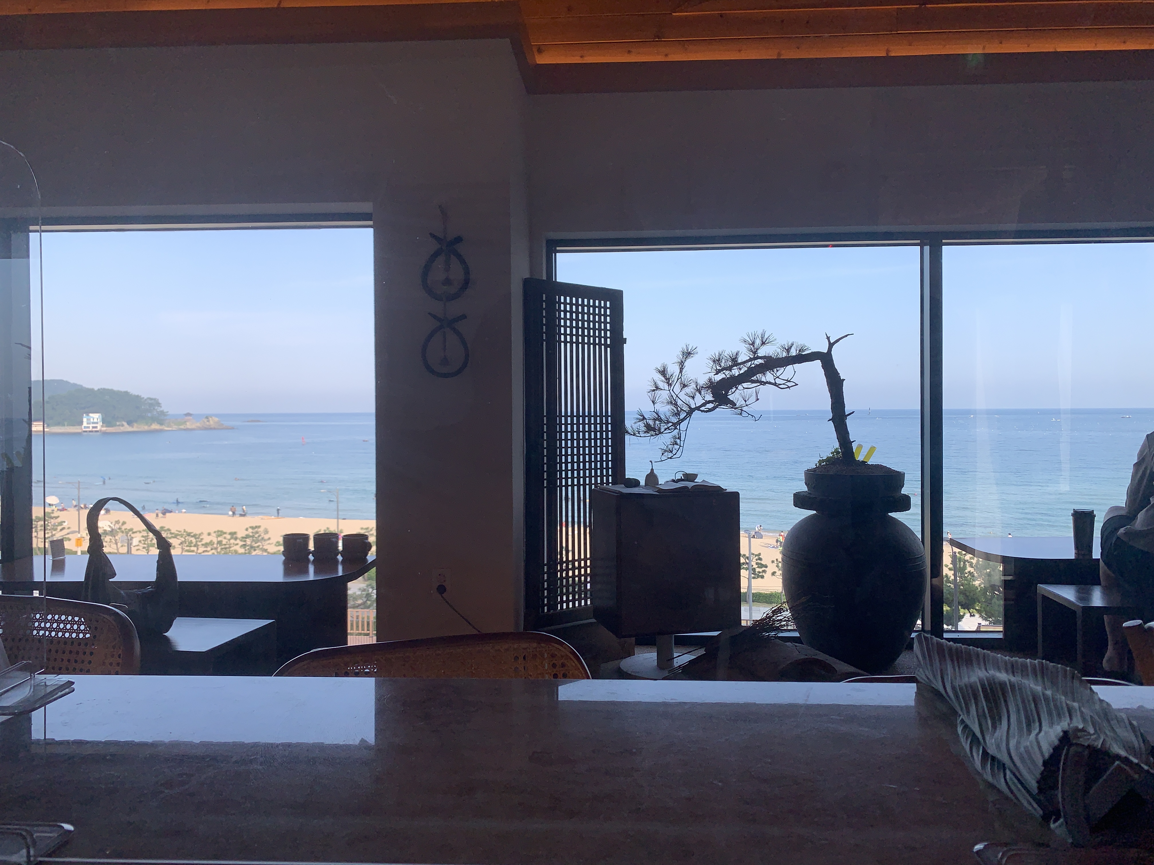 여기 창가에서 내려다보는 송정해변 뷰가 정말 멋지다.