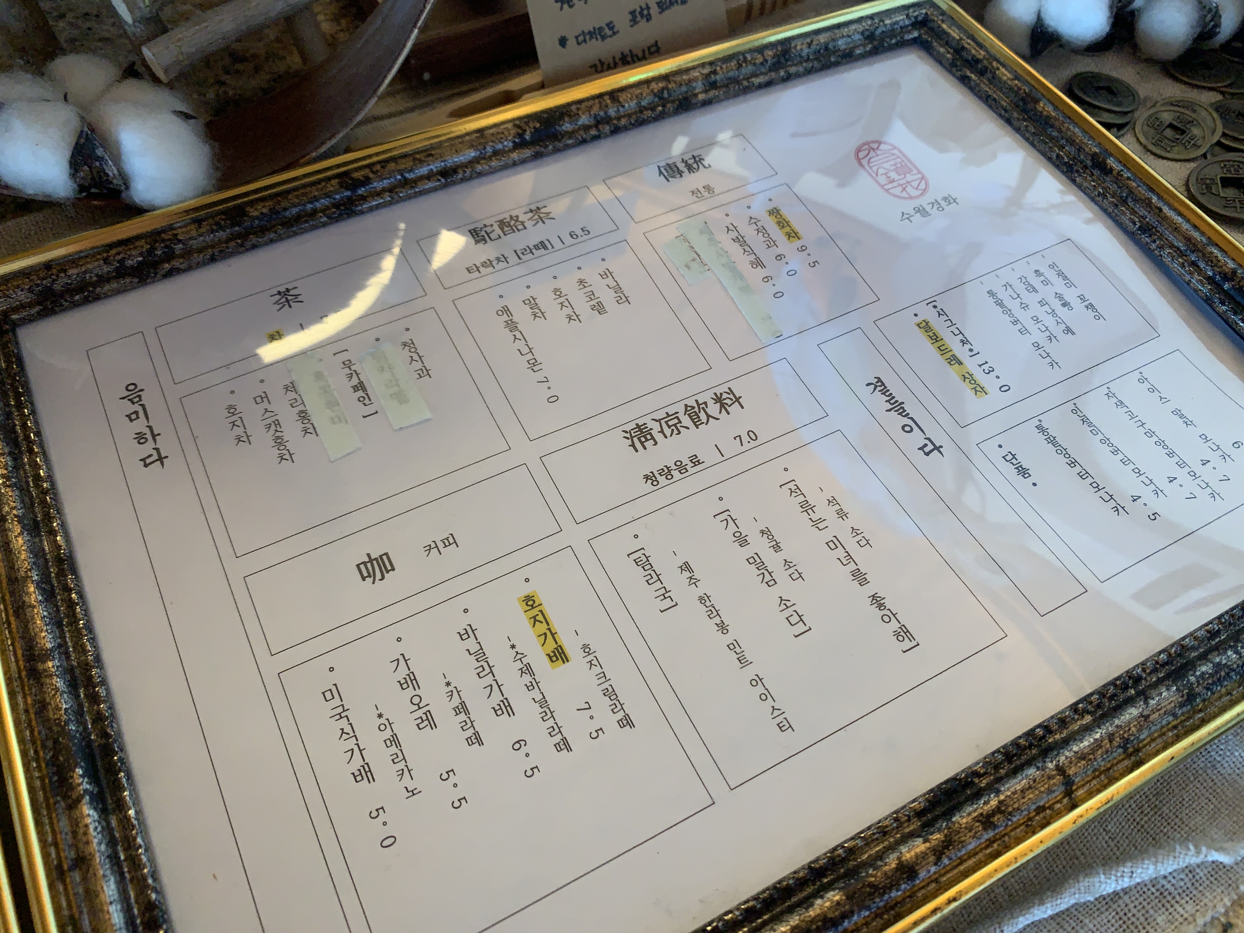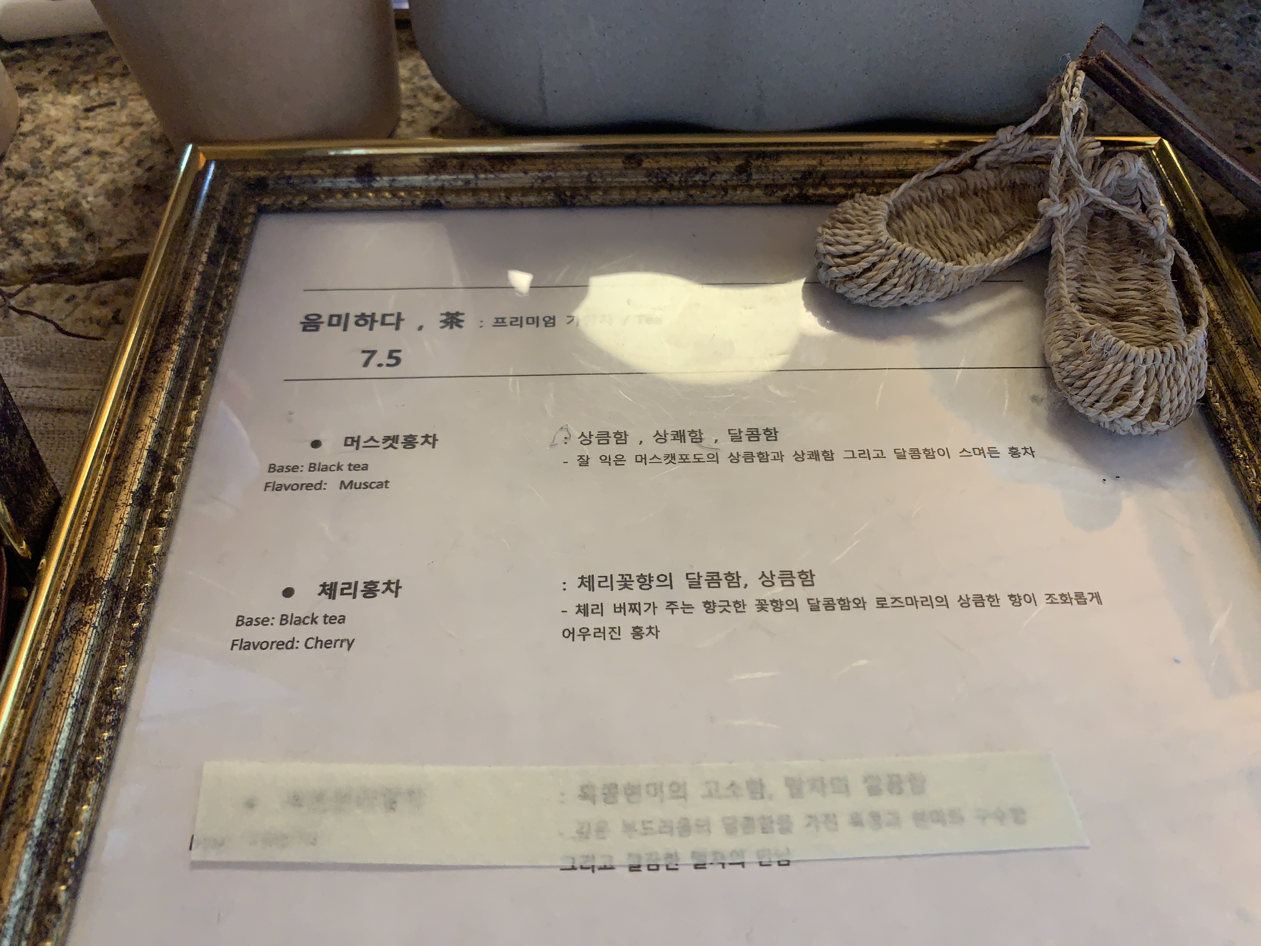 여기는 약간 전통미를 추구하는 인테리어여서 이런 차를 메뉴로 판매하고 있다.