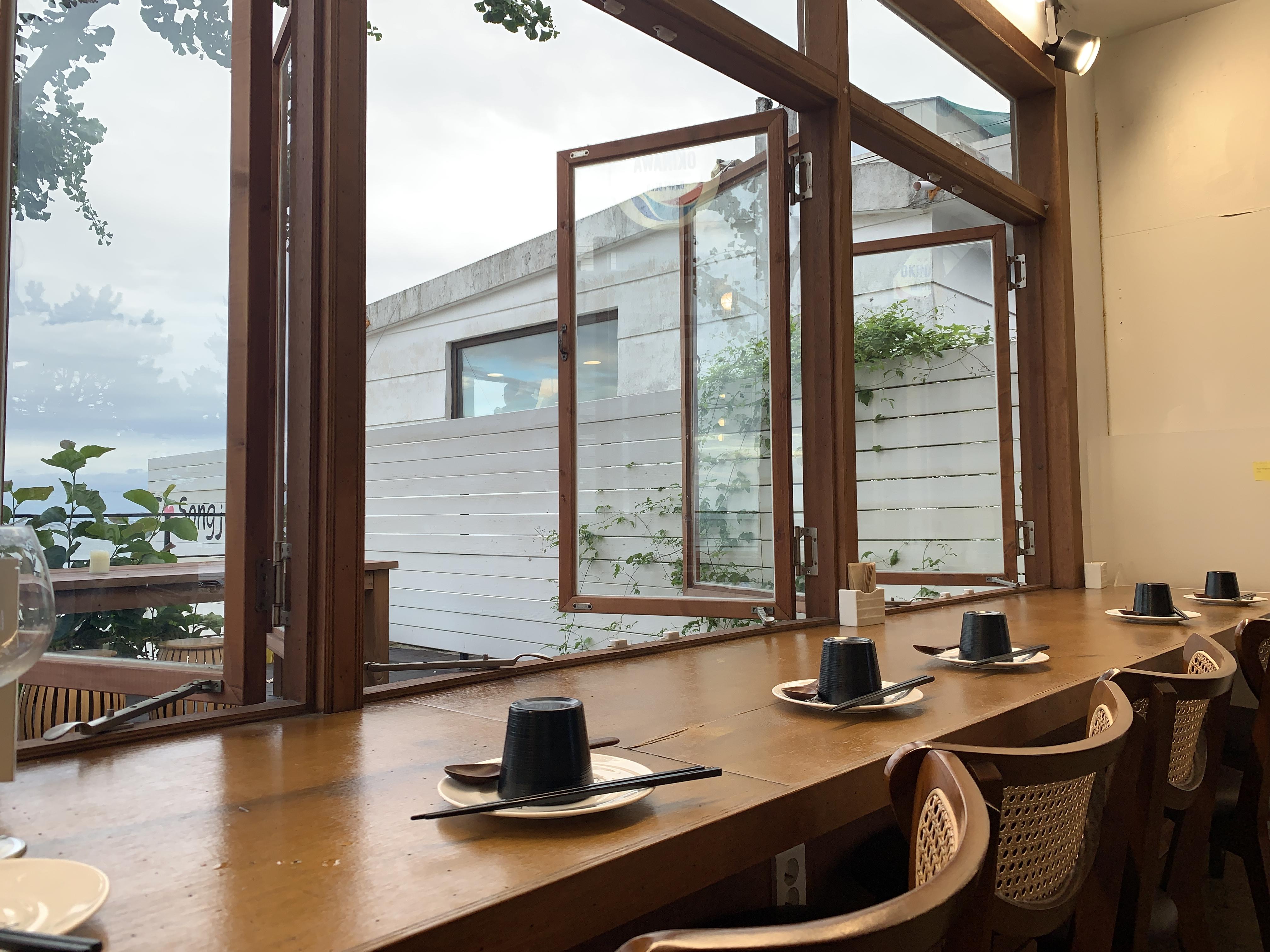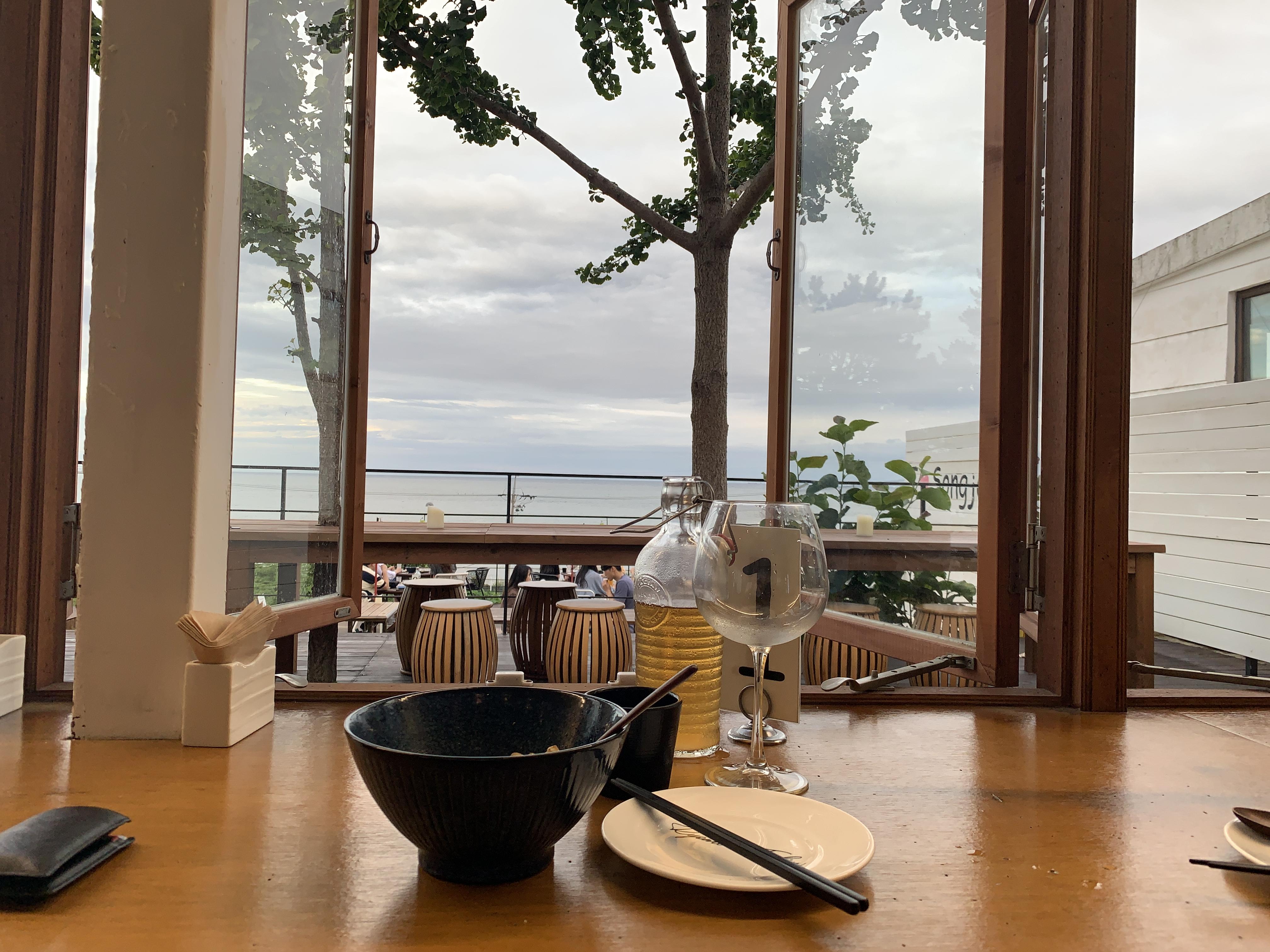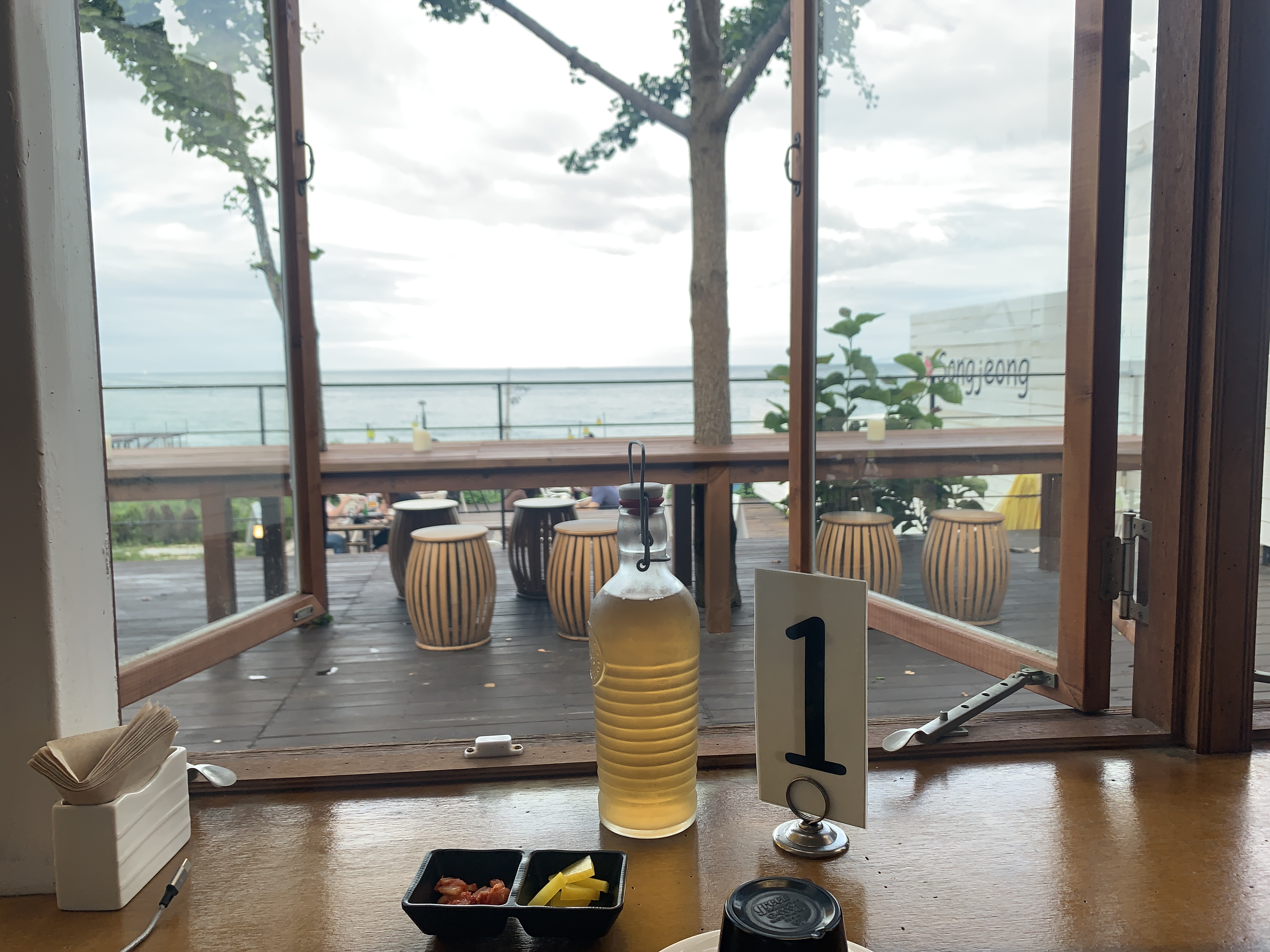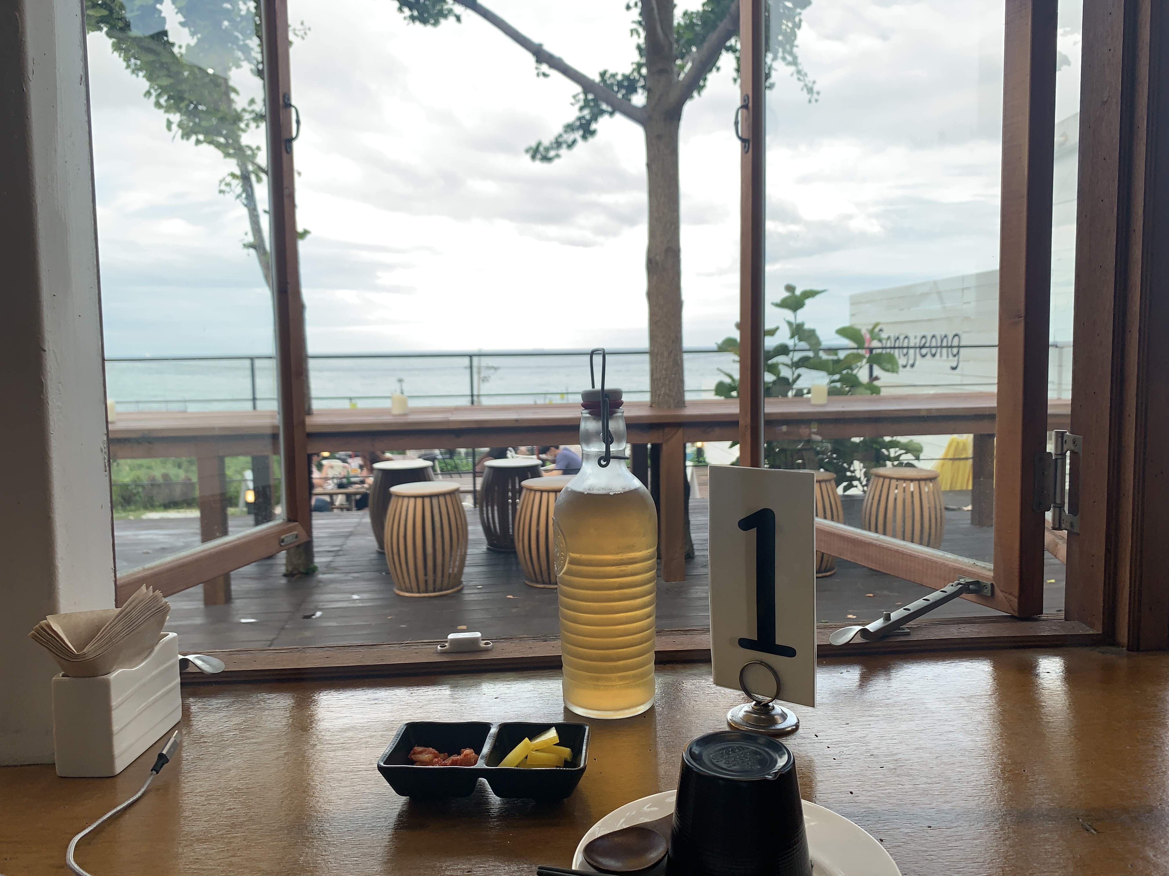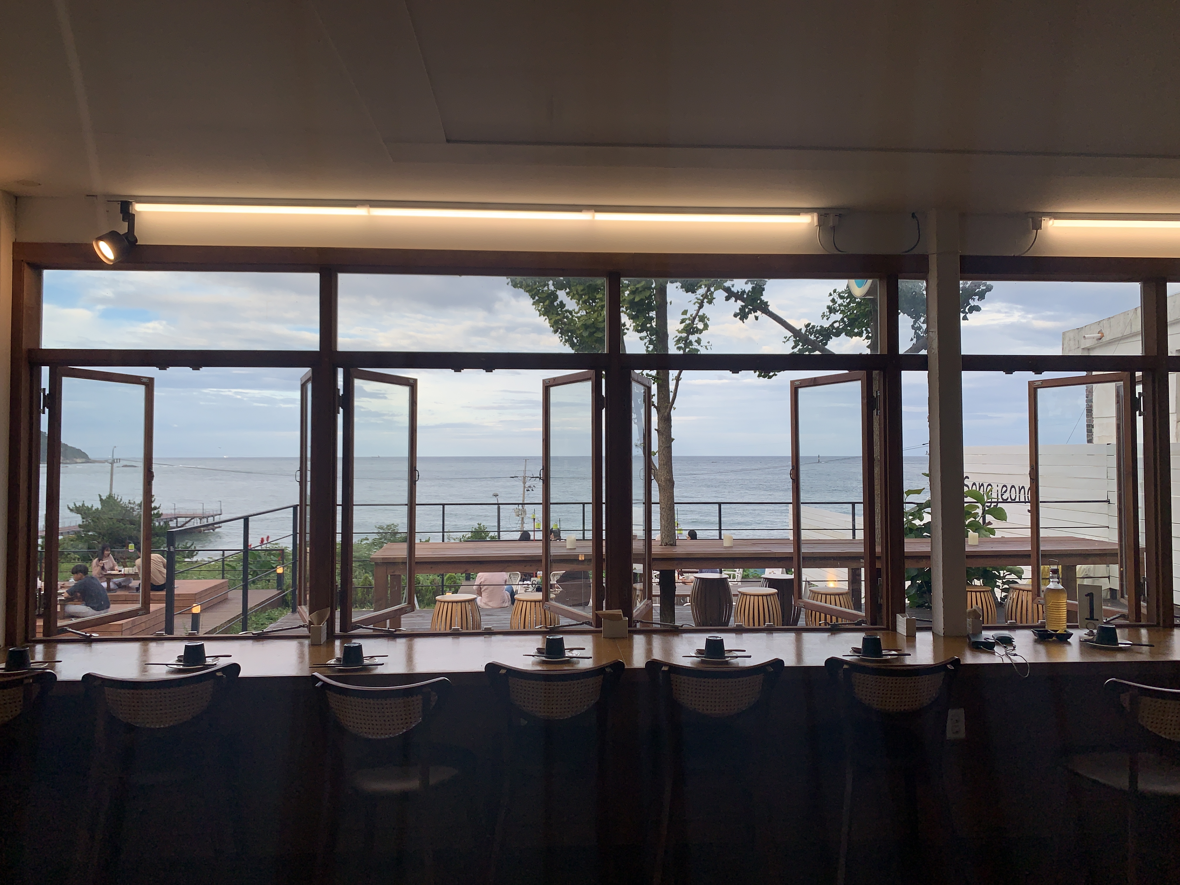 내가 앉았던 자리는 이런 식으로 생긴 곳인데, 여기도 나름 창문이 하나의 프레임처럼 보여서, 창 밖으로 보이는 오션뷰가 정말 이쁘다.