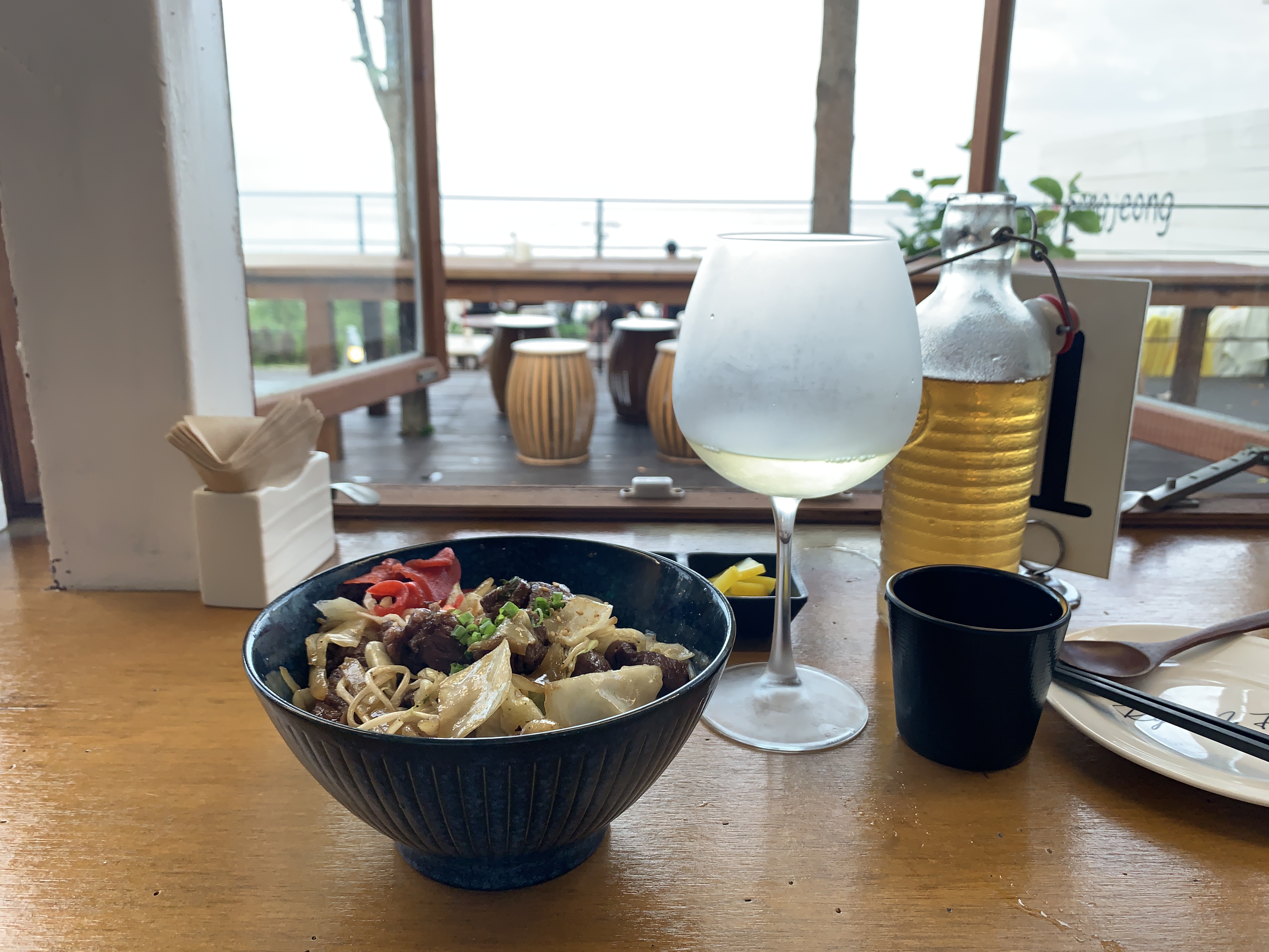 그냥 덮밥 하나만 먹기는 조금 아쉬워서 하우스 와인도 한잔 시켰다.