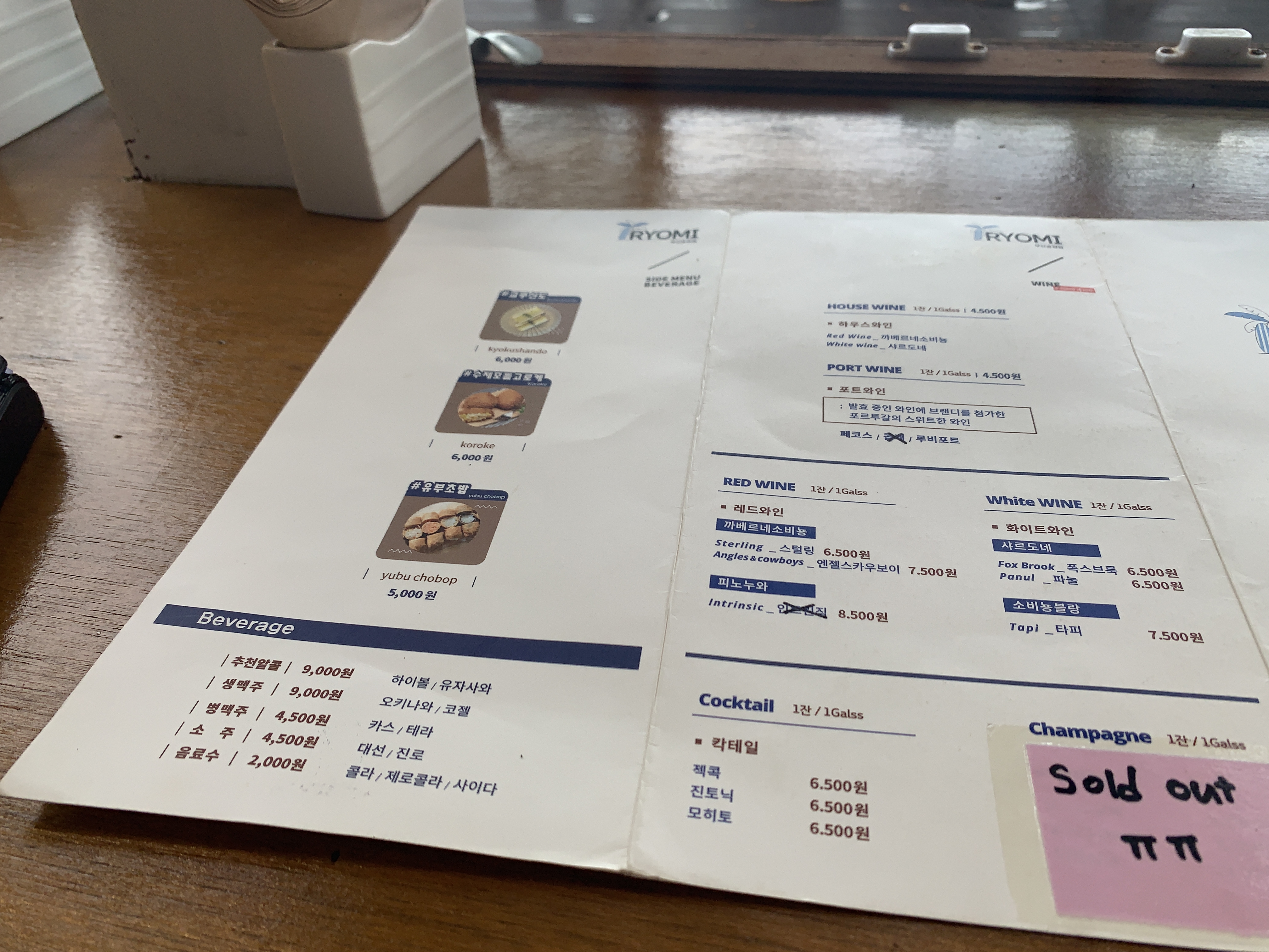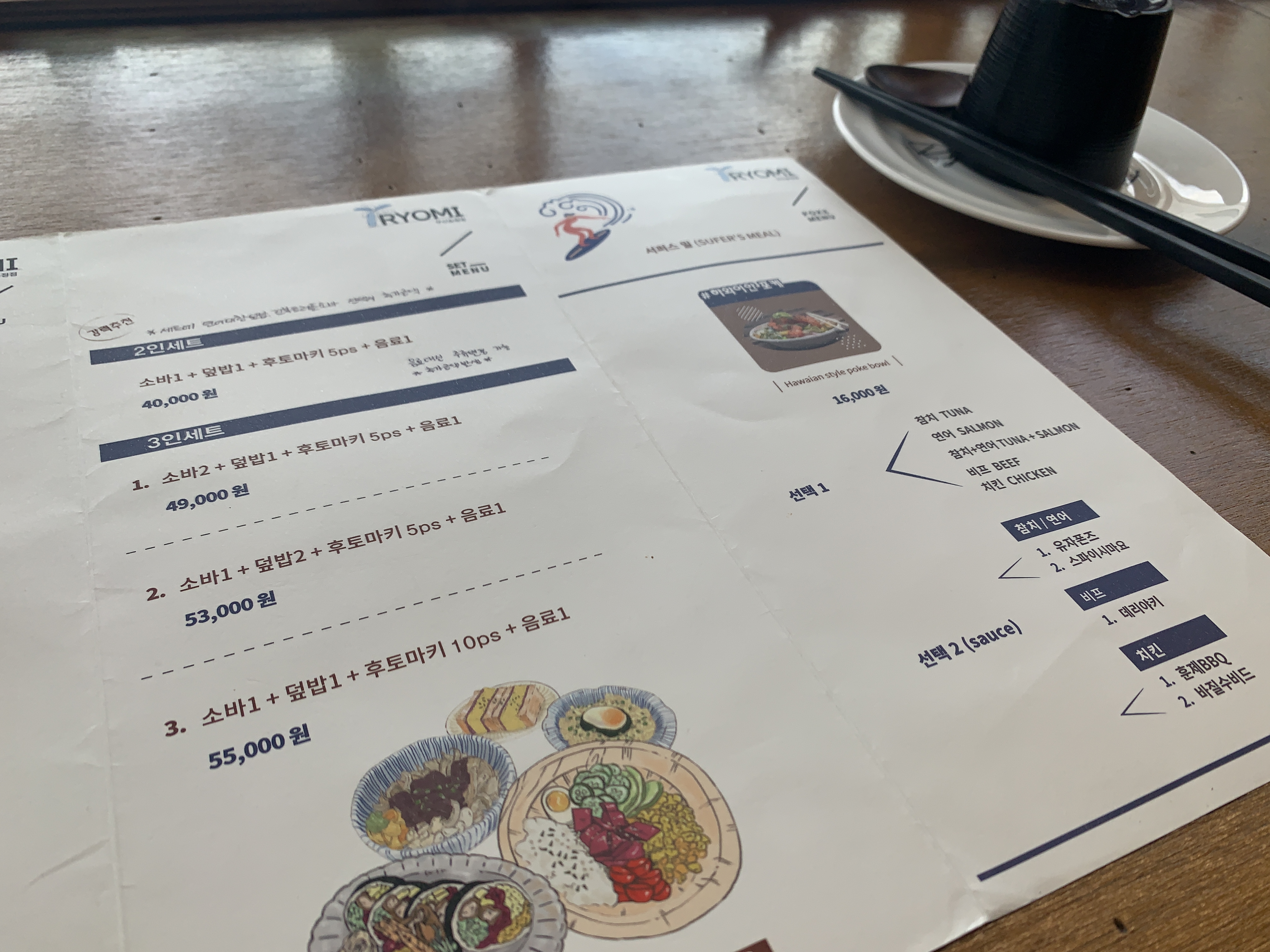 근데 개인적으로 어밤부까지 둘 다 가본 입장에서는 나는 료미가 훨씬 나은 것 같다. 어밤부는 바다 보이는 테라스 자리는 좋기는 한데, 그 자리에 앉으려면 웨이팅도 너무 길고, 솔직히 그 자리도 바다 바로 앞이 아니면 그저 그런 자리라 자리가 너무 복불복이다.