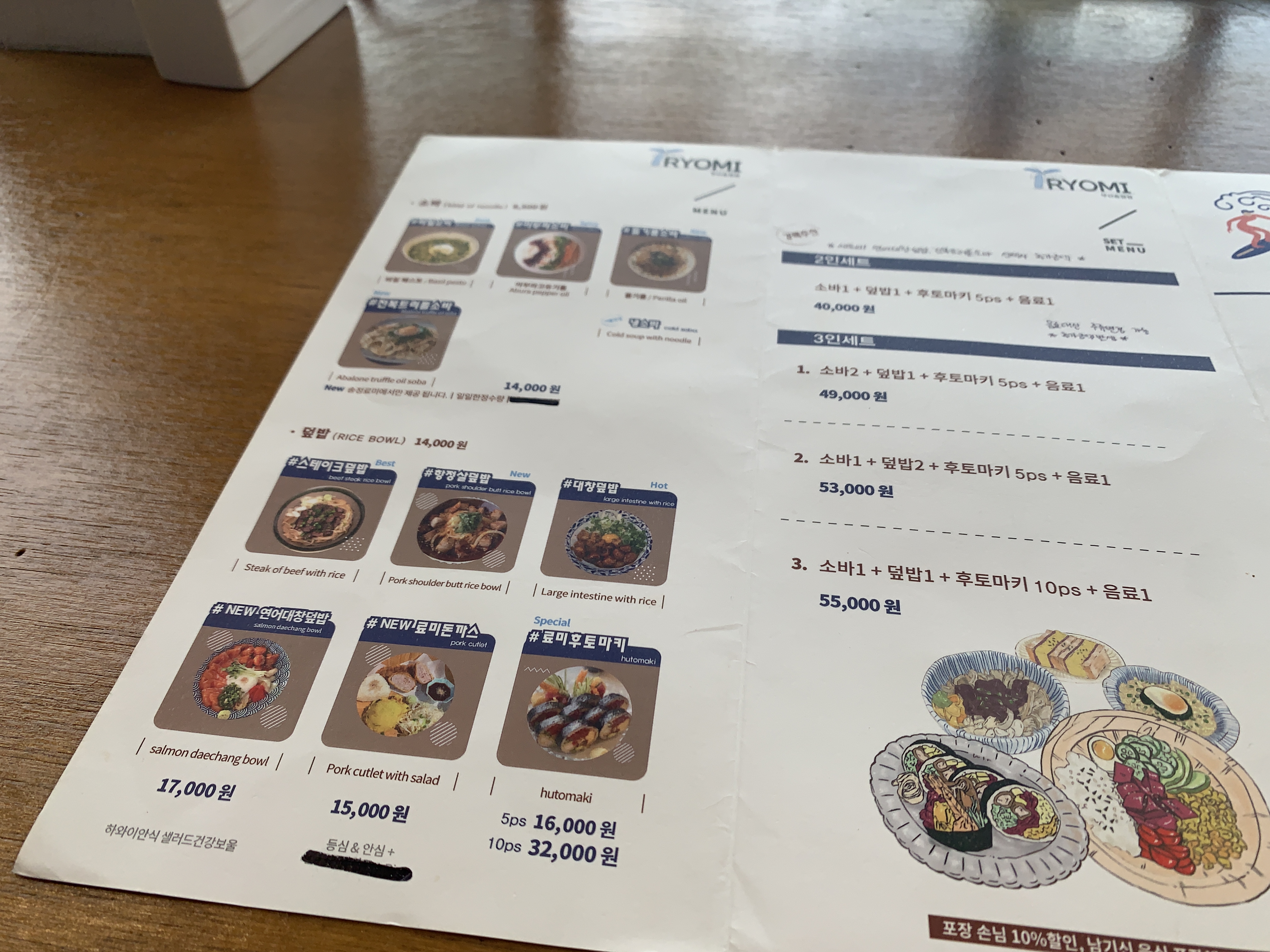 메뉴는 대체로 소바와 덮밥인데 약간 퓨전 일식 느낌이라고 생각하면 된다.