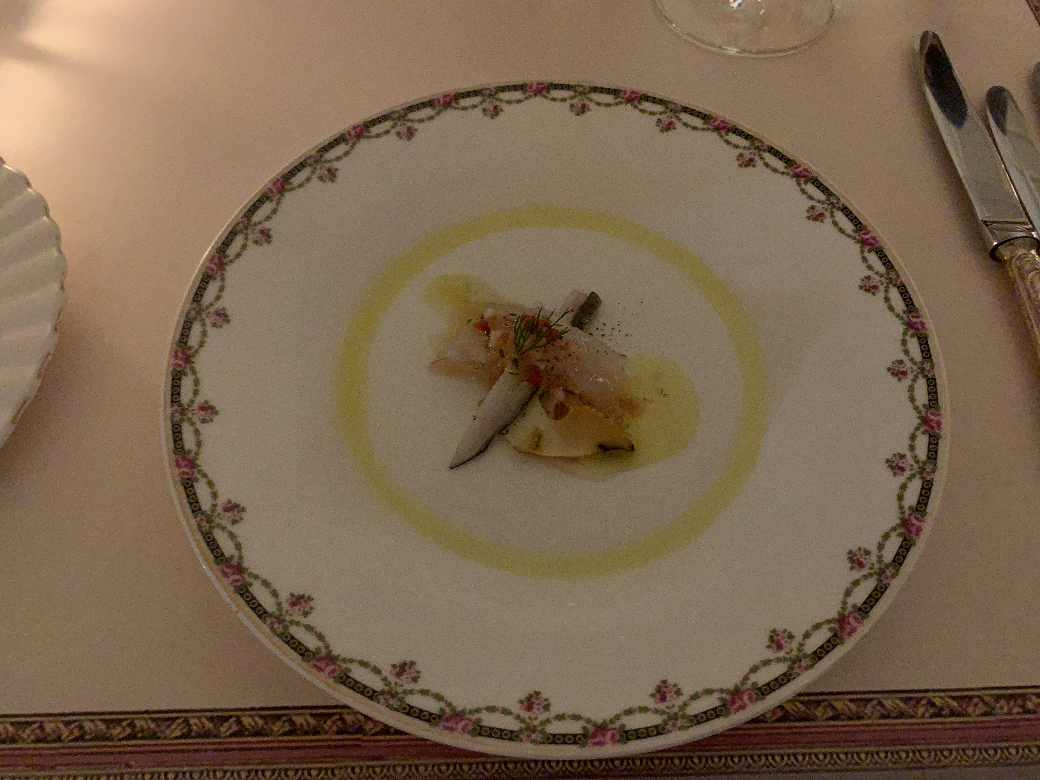 이 전채요리도 뭐였는지 정체불명이기는 한데, 전채요리 특성상 상큼하면서 식감을 돋우는 느낌이 난다.