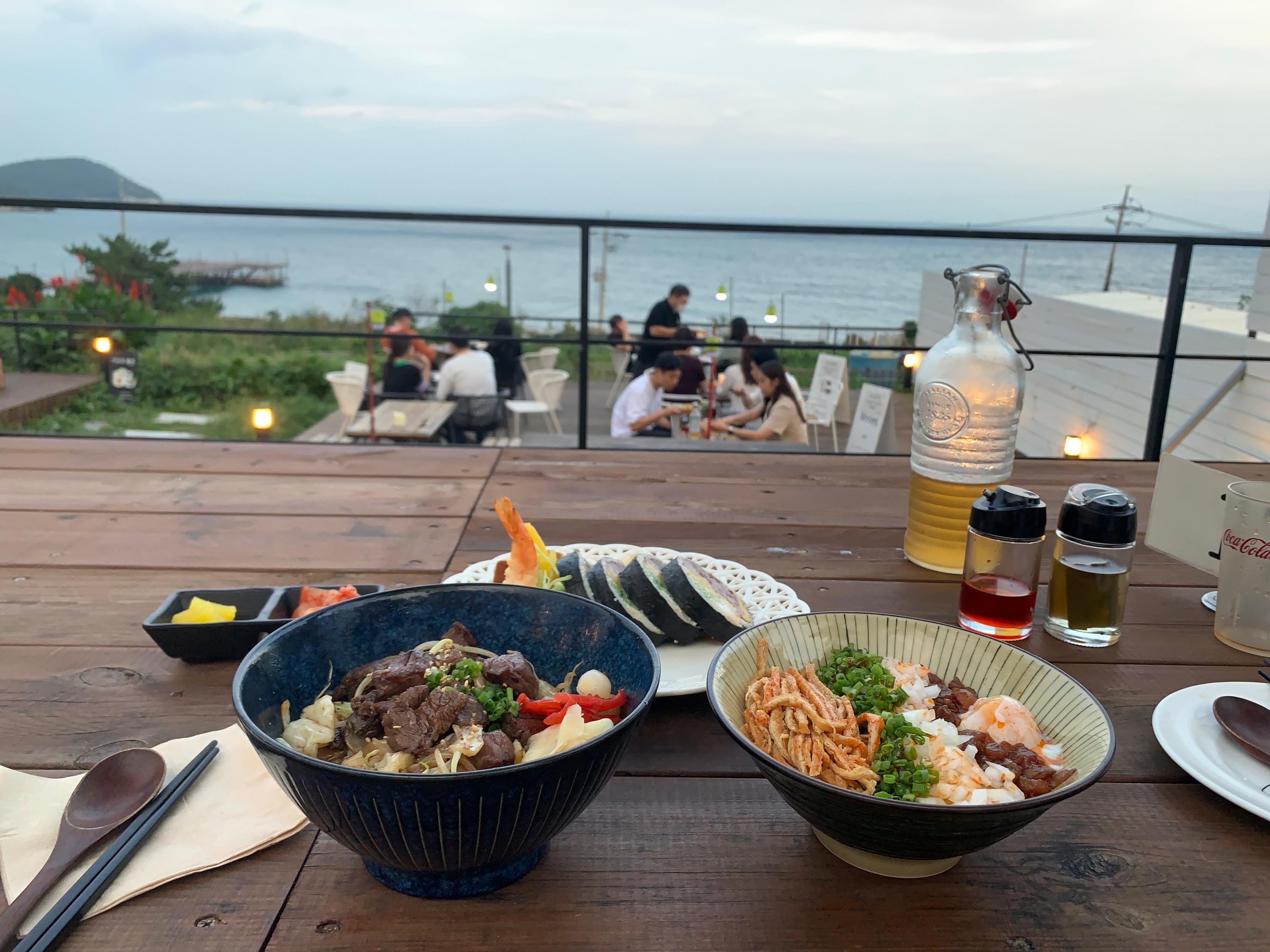 여름에는 벌레가 좀 있기는 한데, 그래도 바다를 내려다보면서 먹을 수 있는데 포기할 수 없지.