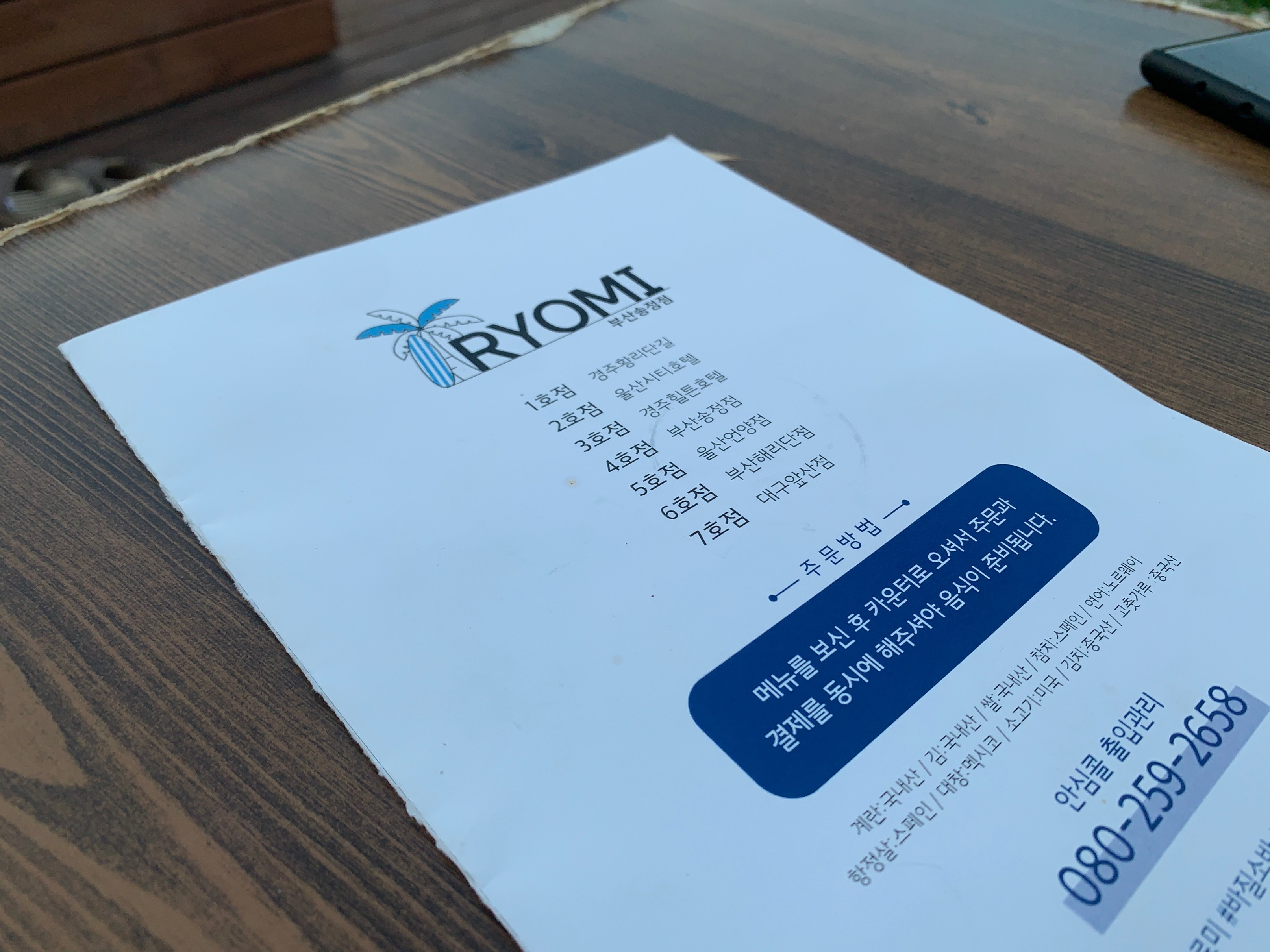 이번에 소개할 곳은 부산 송정에 있는 "료미"라는 식당.