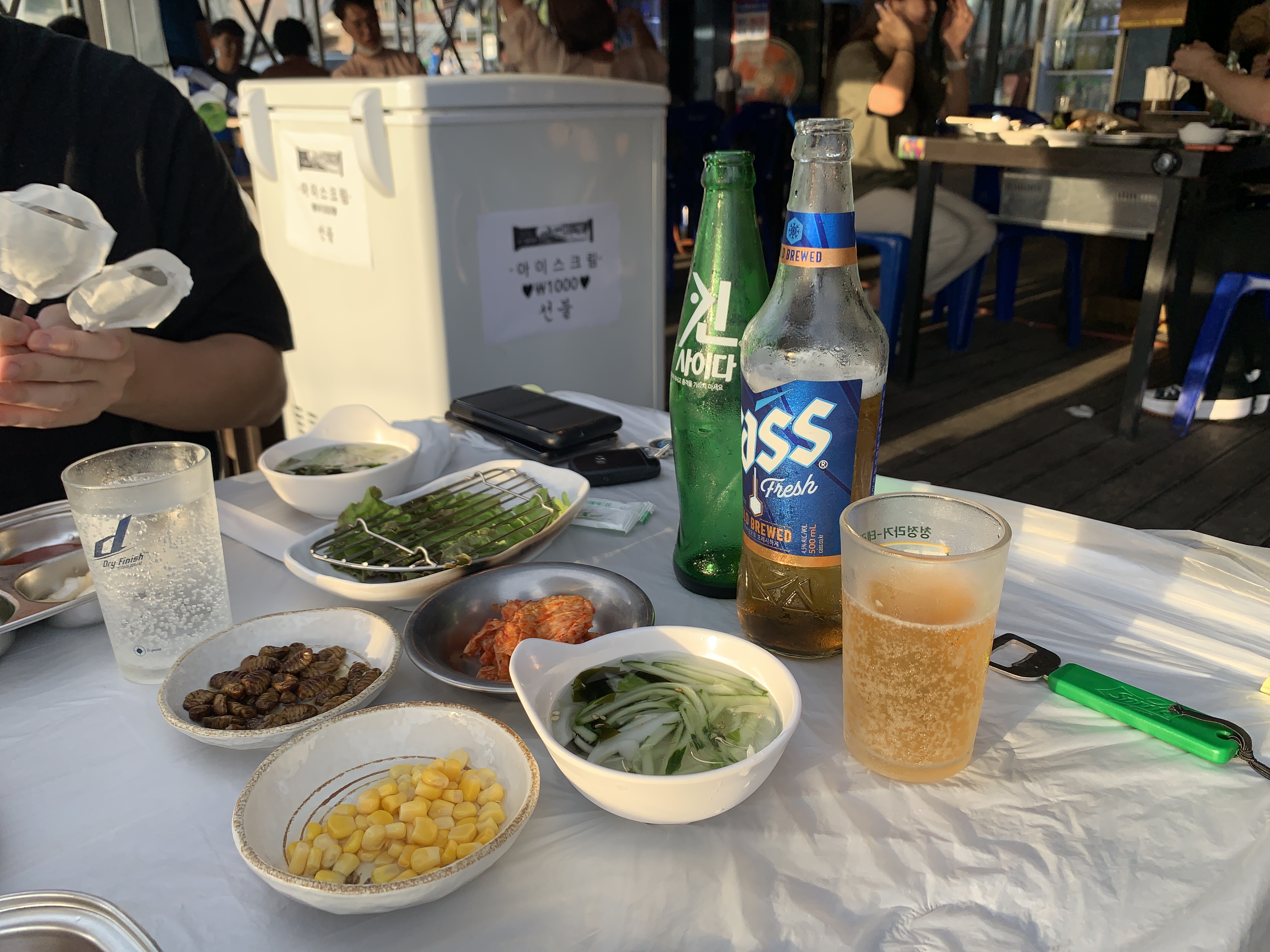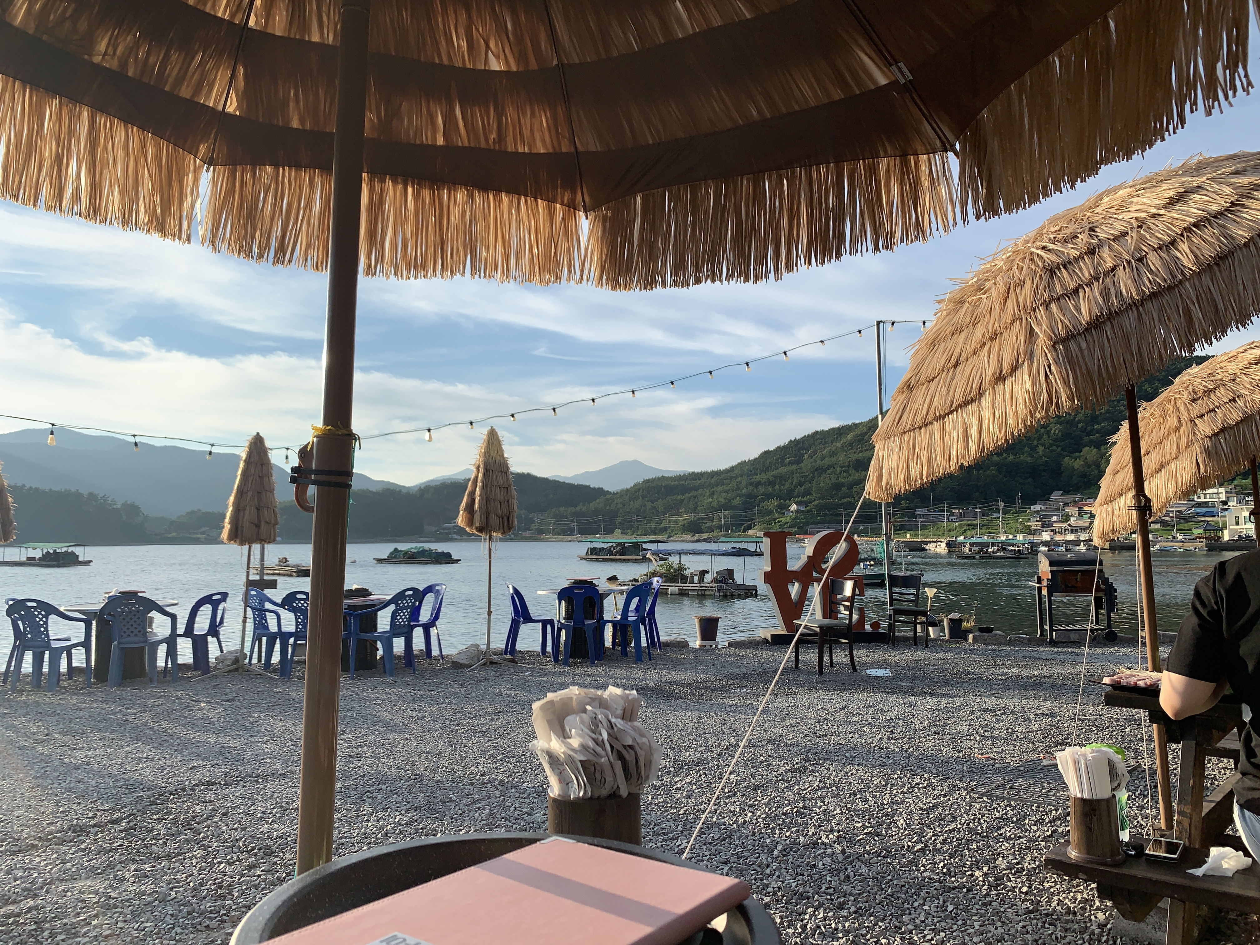그리고 바로 해변 옆에 있는 자리들이 있는데 개인적으로는 그 해변 옆에 있는 자리들보다는 그냥 그 해변을 바라보는 우리가 앉았던 테이블 자리가 훨씬 좋았던 것 같다.