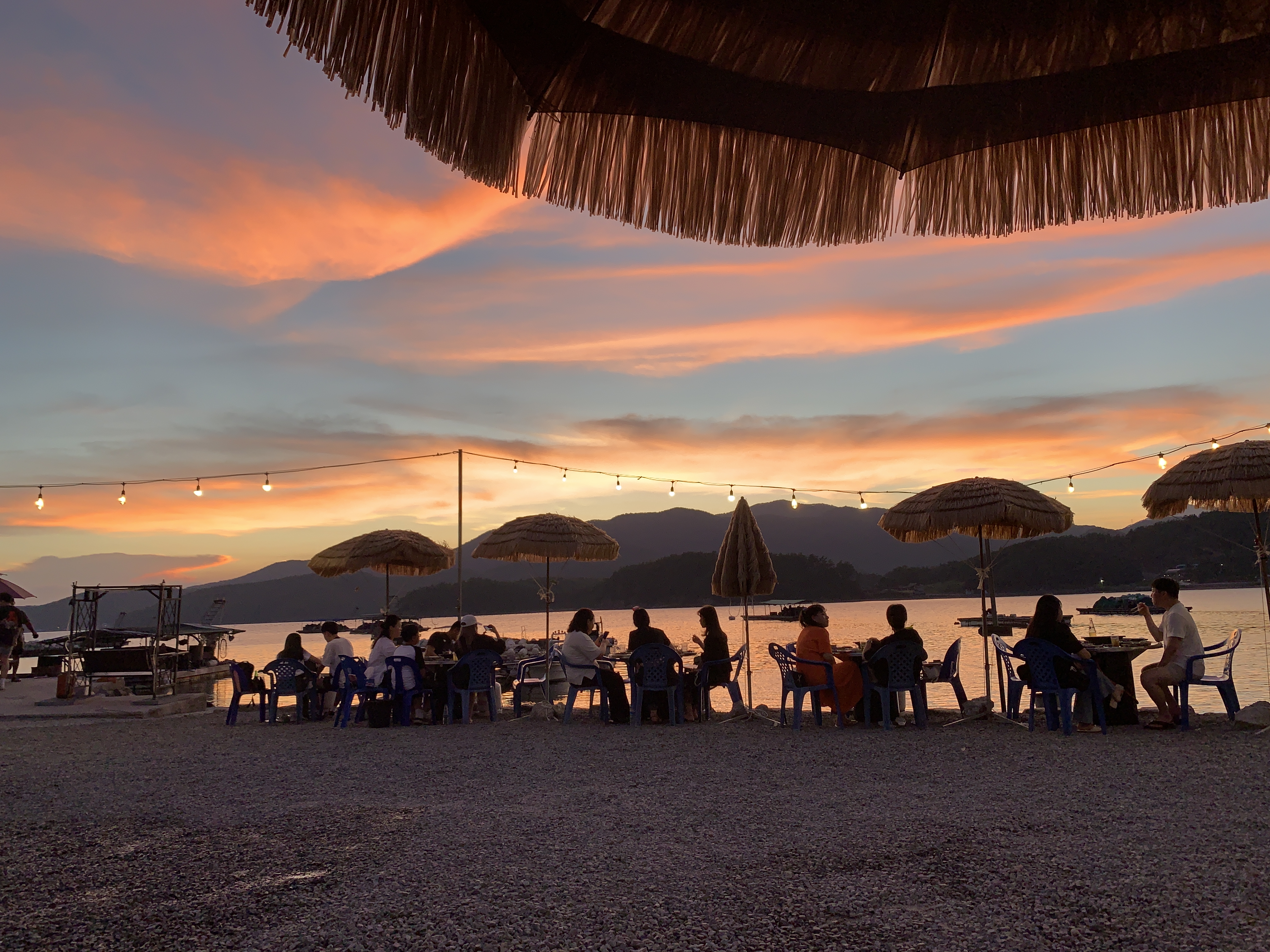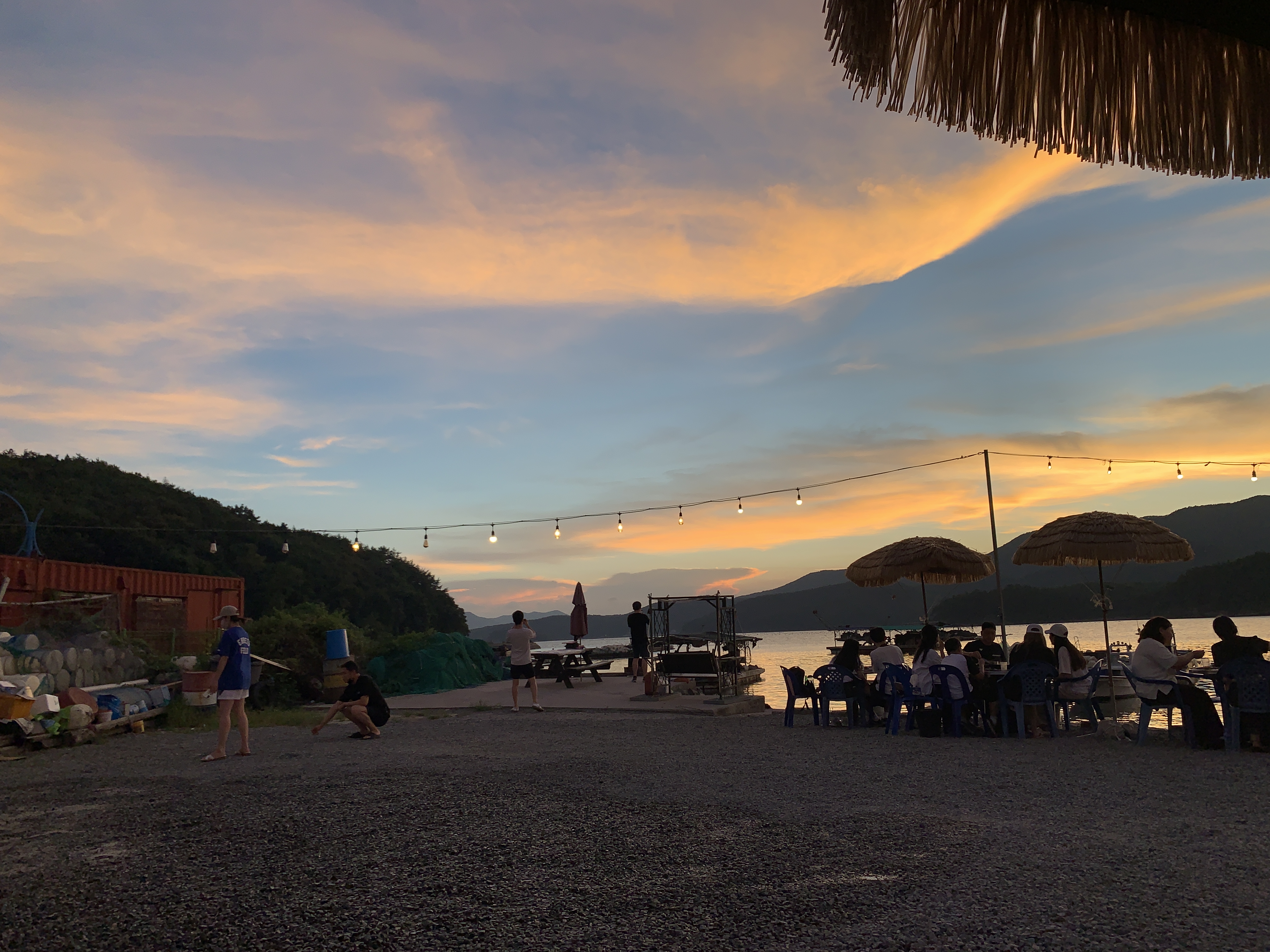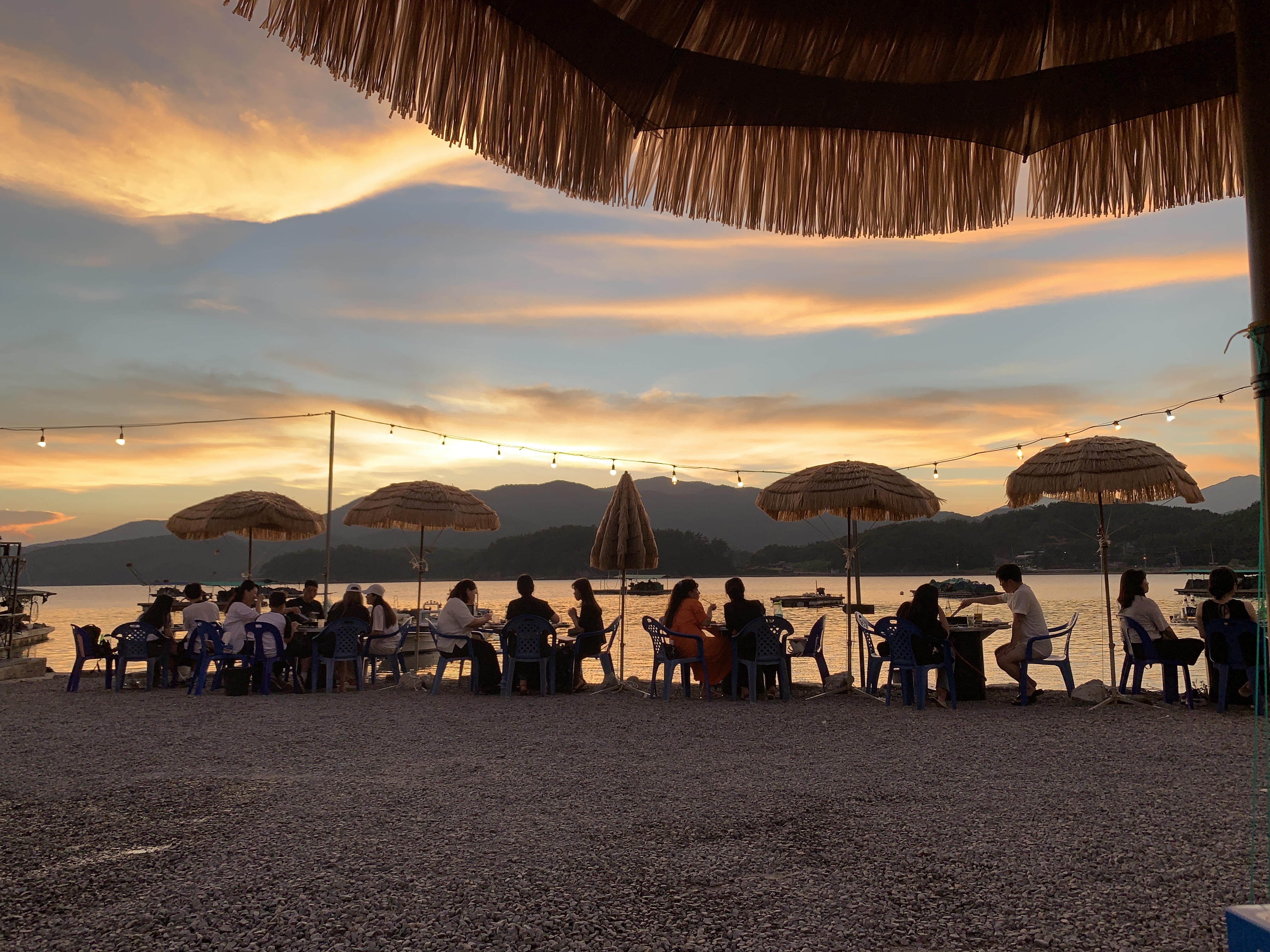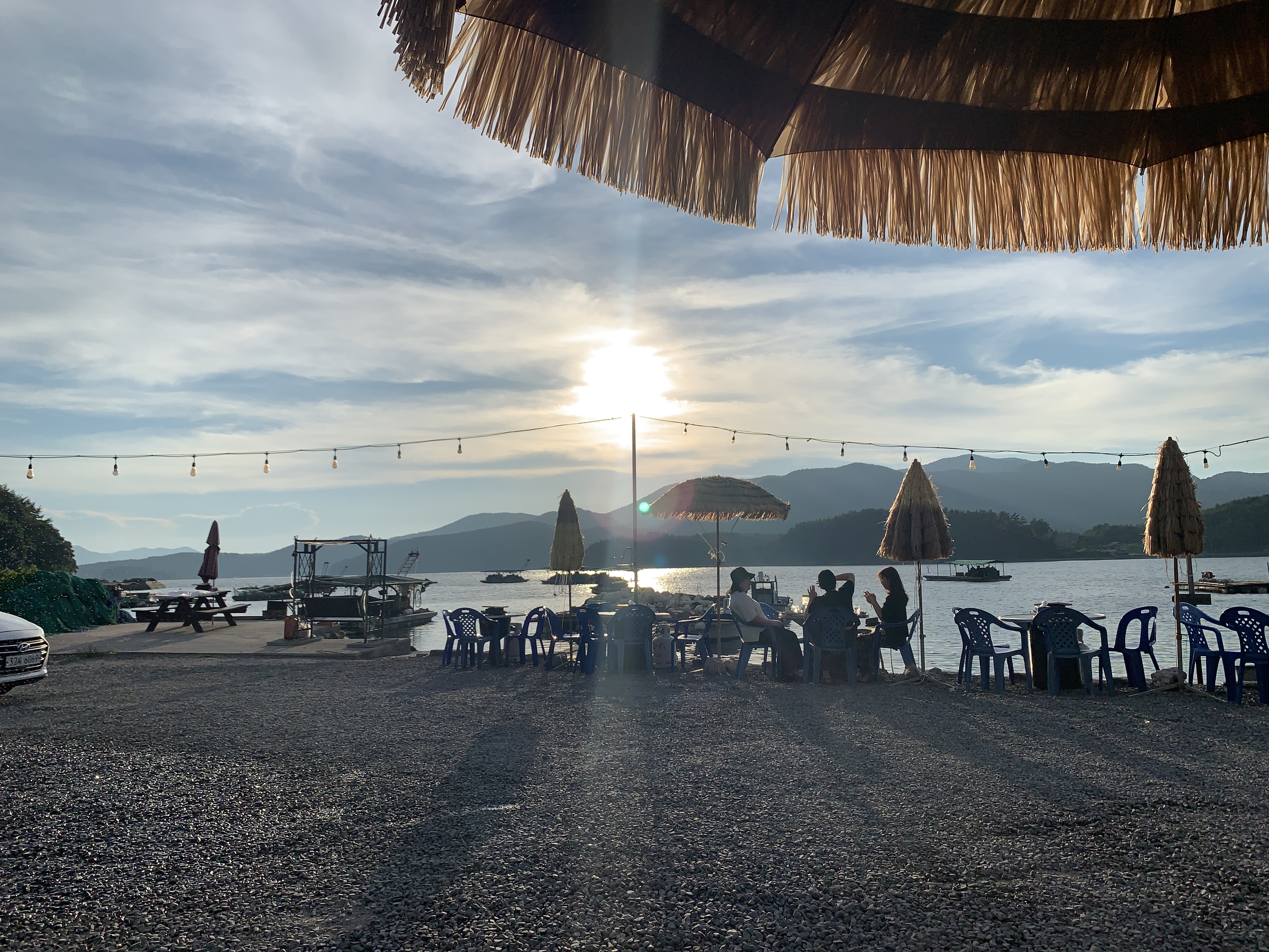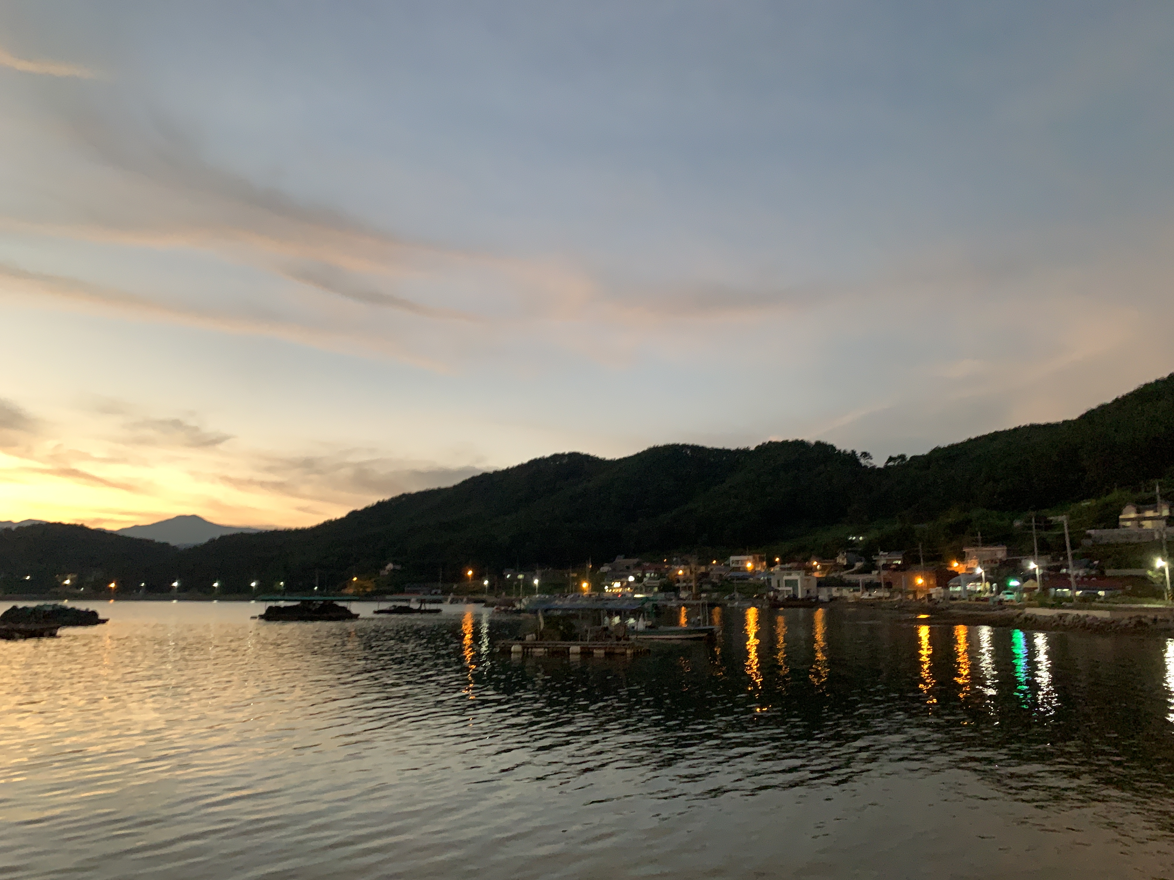 여기는 사실 해변이라기보다는 포구이기 때문에 해변이 있다거나 한 건 아니지만 그래도 바로 앞에 포구에 바닷물이 찰랑찰랑 거려서 바닷물에 미치는 노을빛이 정말 이쁘다