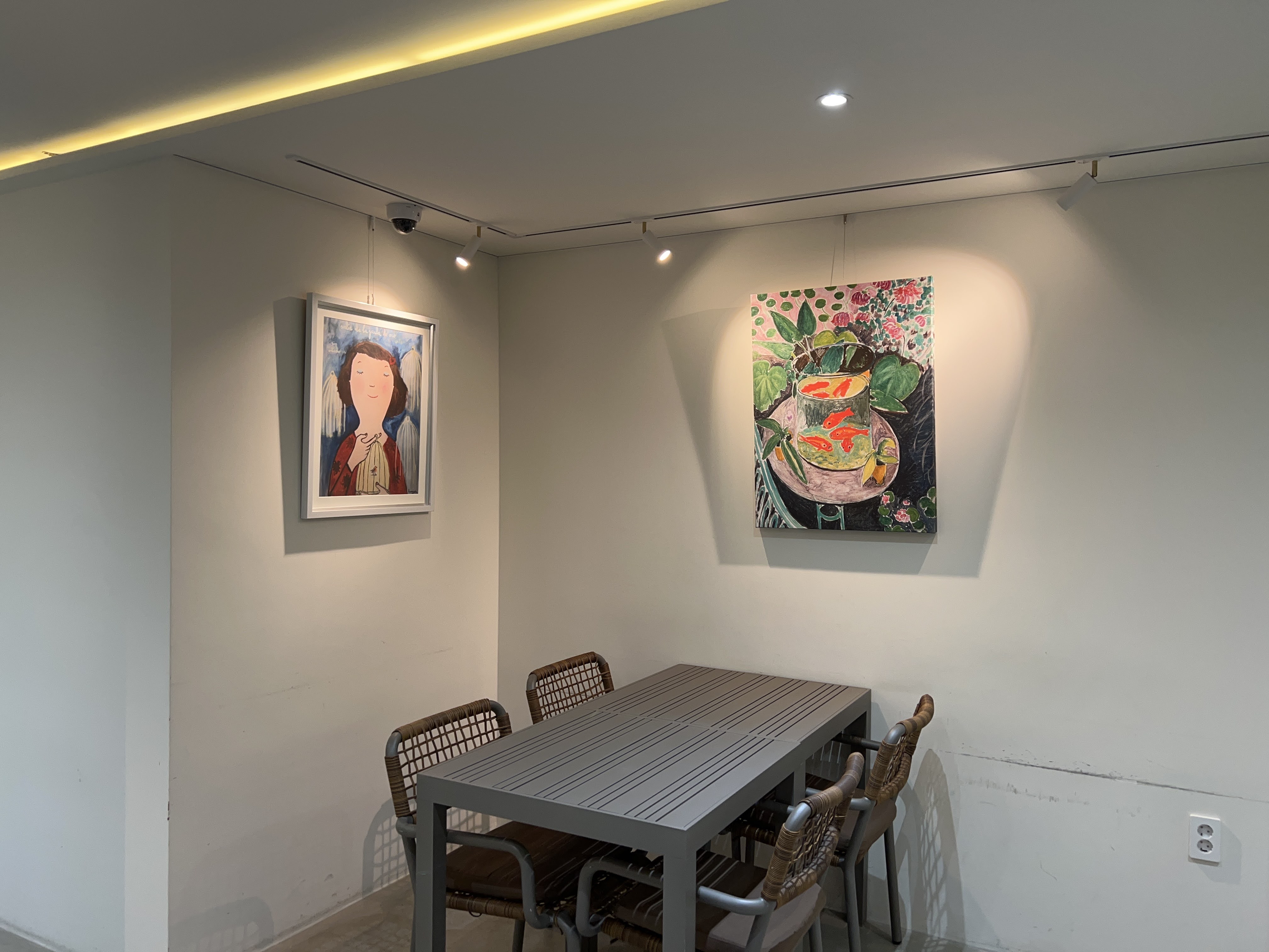 매장 안 곳곳에 이렇게 그림이 걸려있는데 그림으로 인테리어를 하고 있습니다.