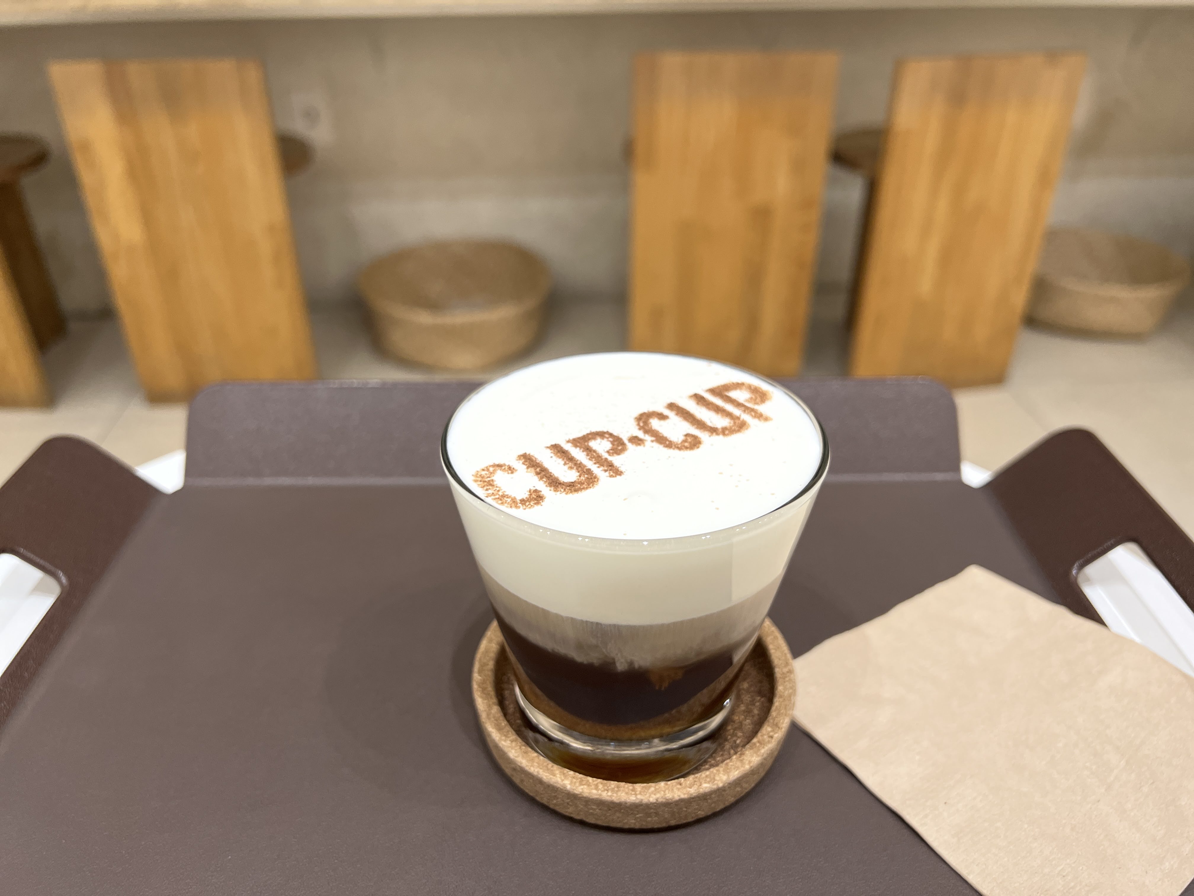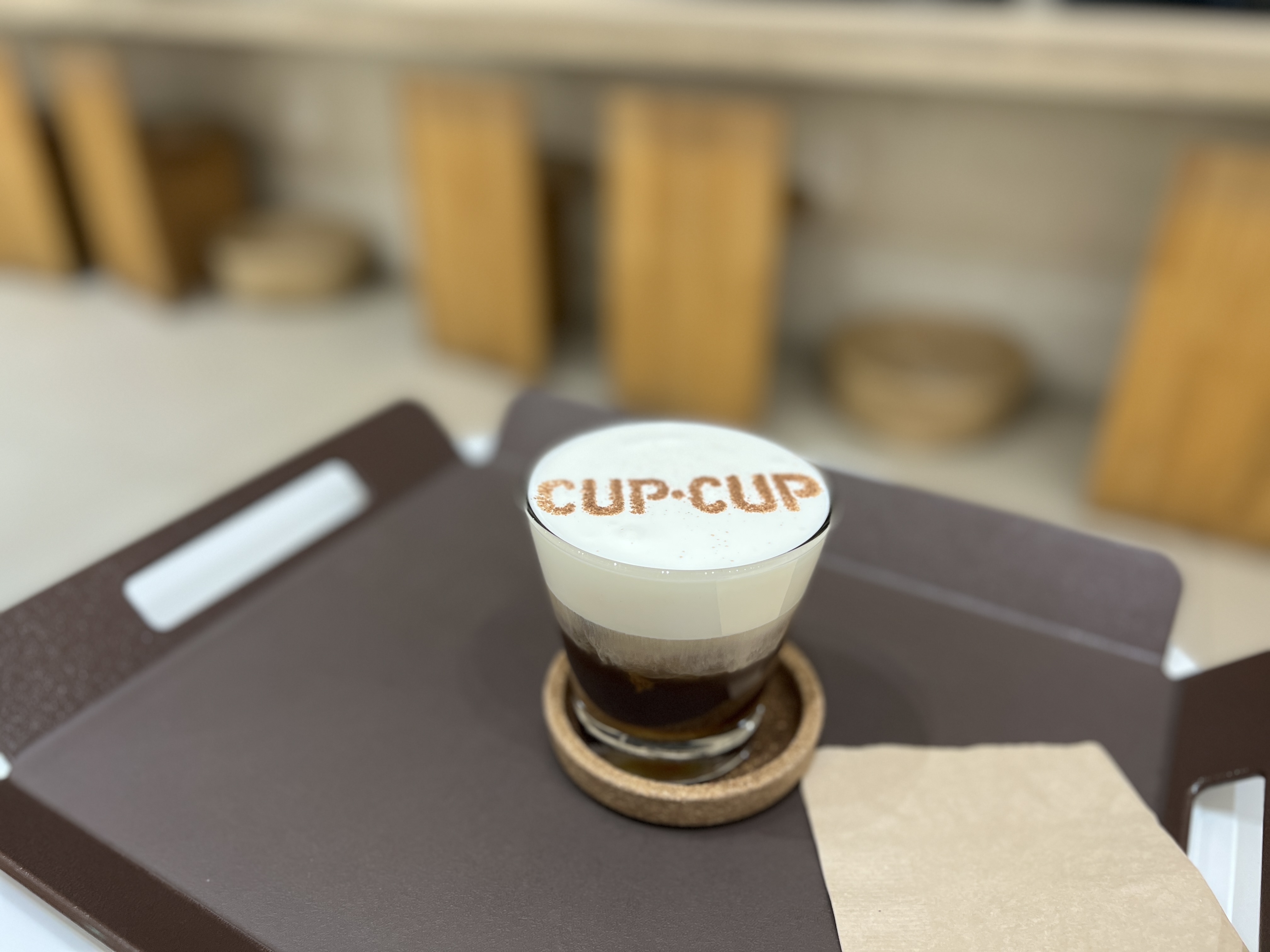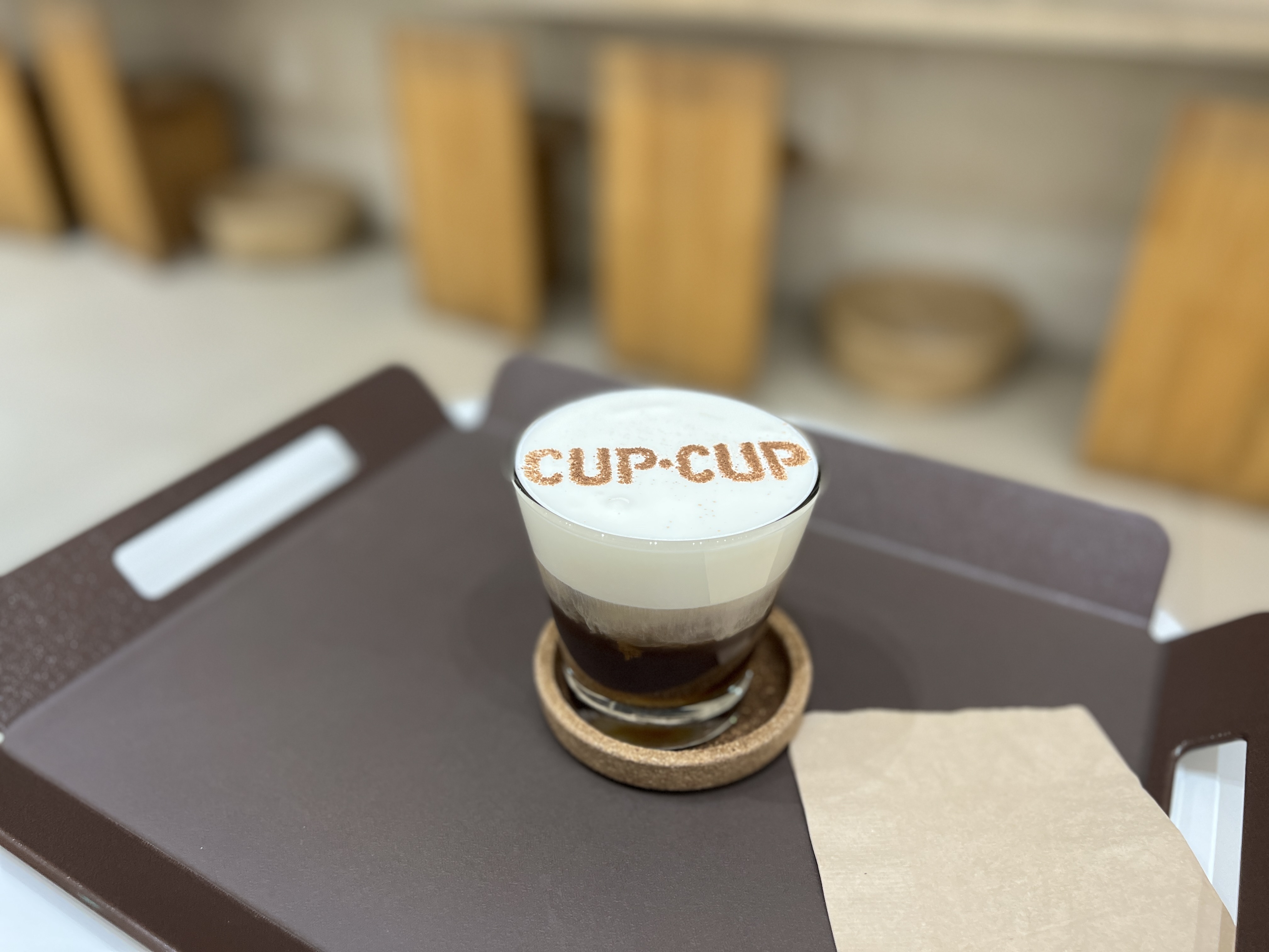 간단하게 커피 하나를 시켰습니다. 커피 위에 컵앤컵이라는 로고를 새겨줍니다.