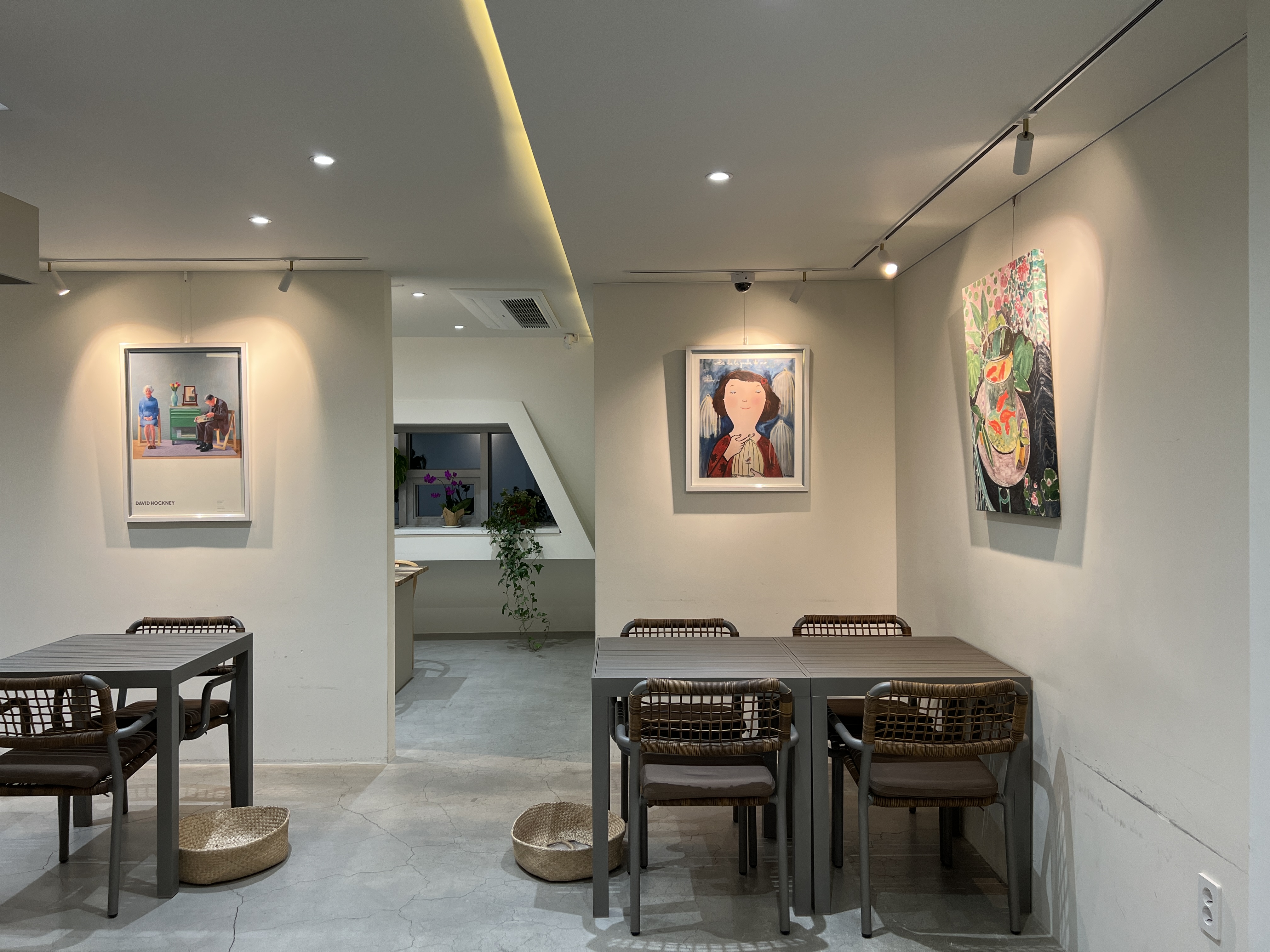 매장 안 곳곳에 이렇게 그림이 걸려있는데 그림으로 인테리어를 하고 있습니다.