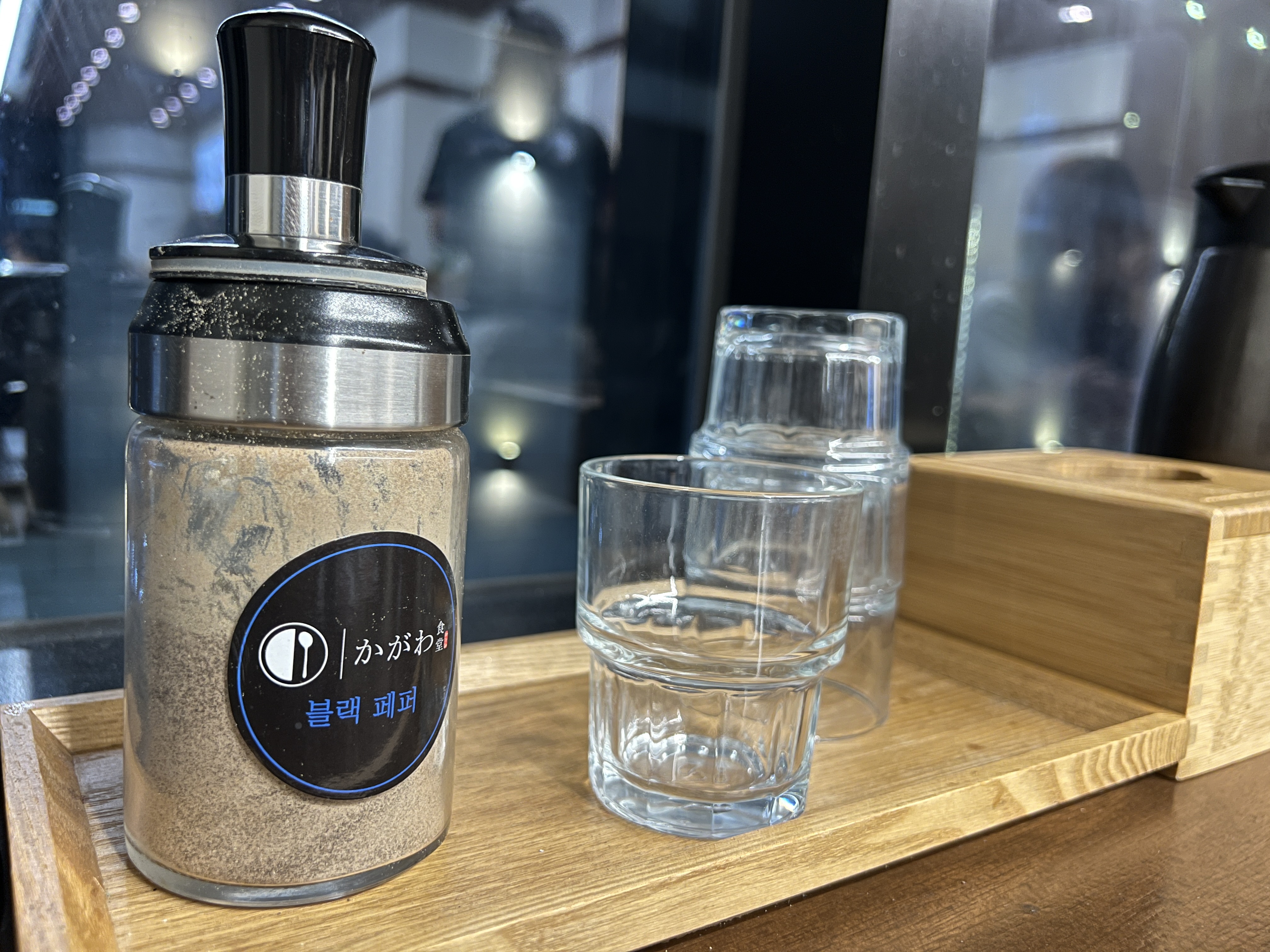 테이블에 앉렇게 블랙 페퍼가 있는데 취향에 따라서 블랙 페퍼를 뿌려서 드시면 됩니다.