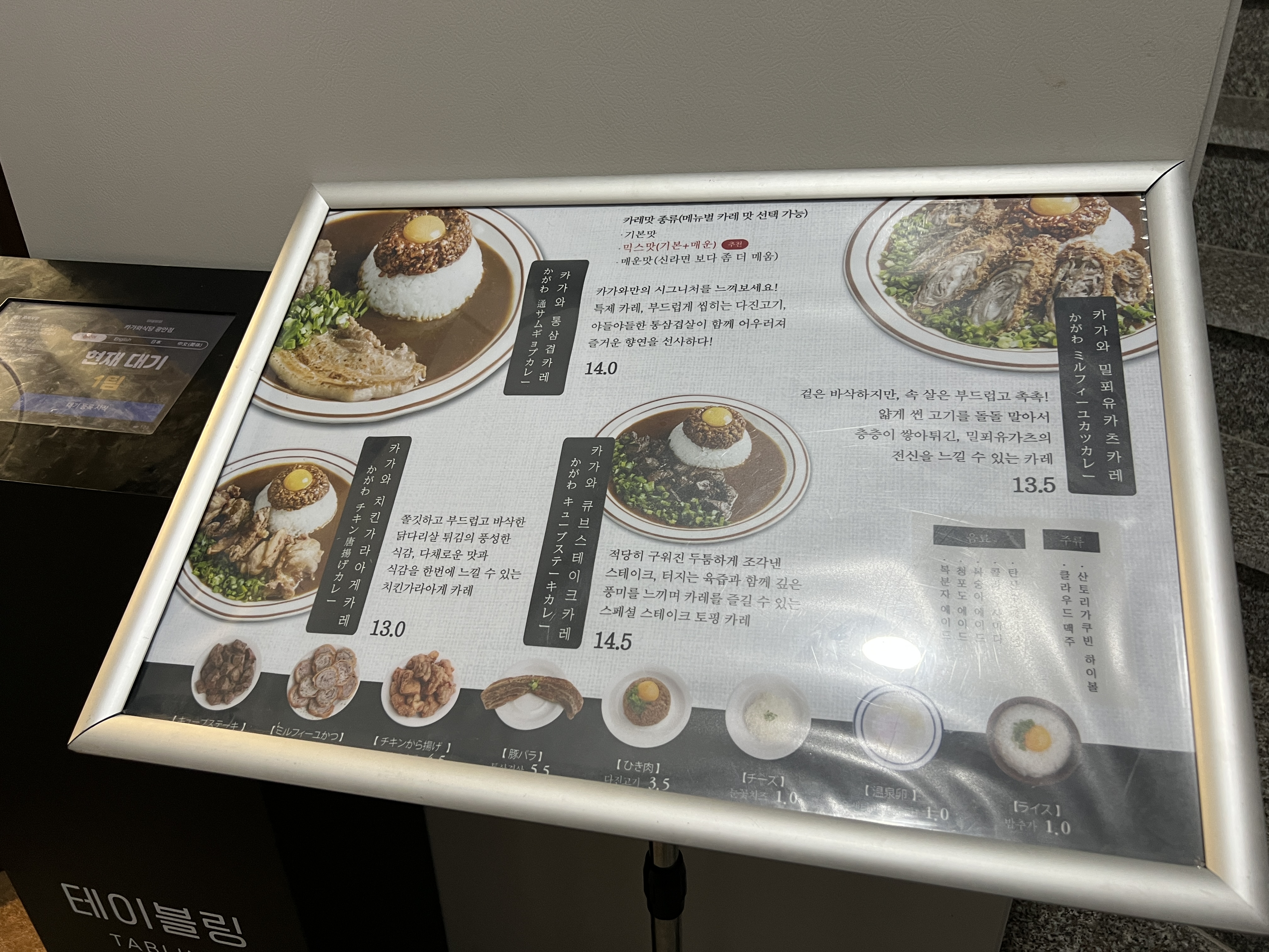 여기는 일식 카레를 전문으로 하는 곳인데 정통의 일식 카레라기보다는 약간은 퓨전스러운 메뉴입니다 가격은 대체로 1만 4천 원 정도입니다.