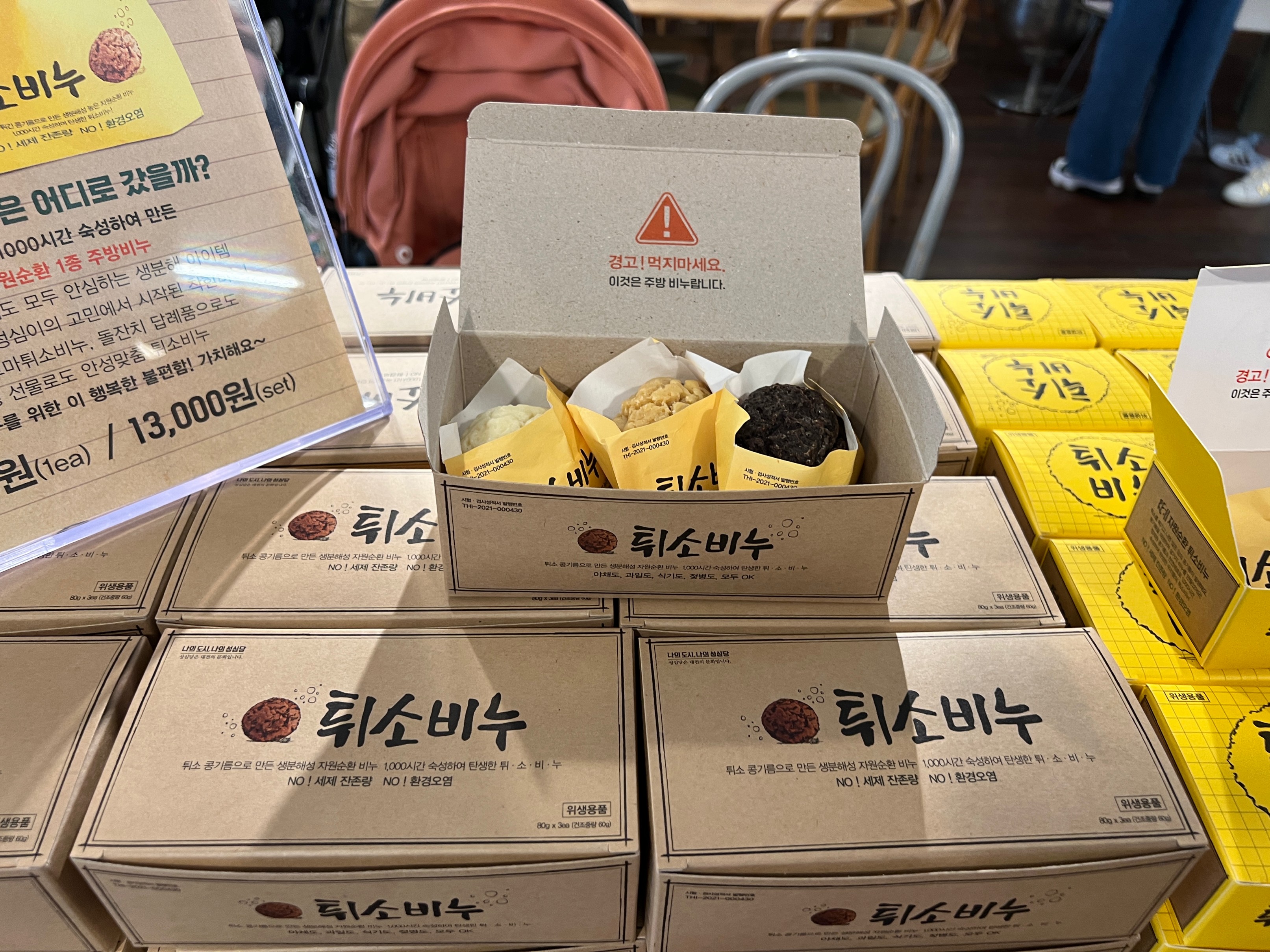 튀김 소보루 형태로 만든 비누인데 튀김 소보루를 만들 때 나온 기름을 가지고 비누를 만든 거라고 한다. 친환경까지 생각하는 성심당!