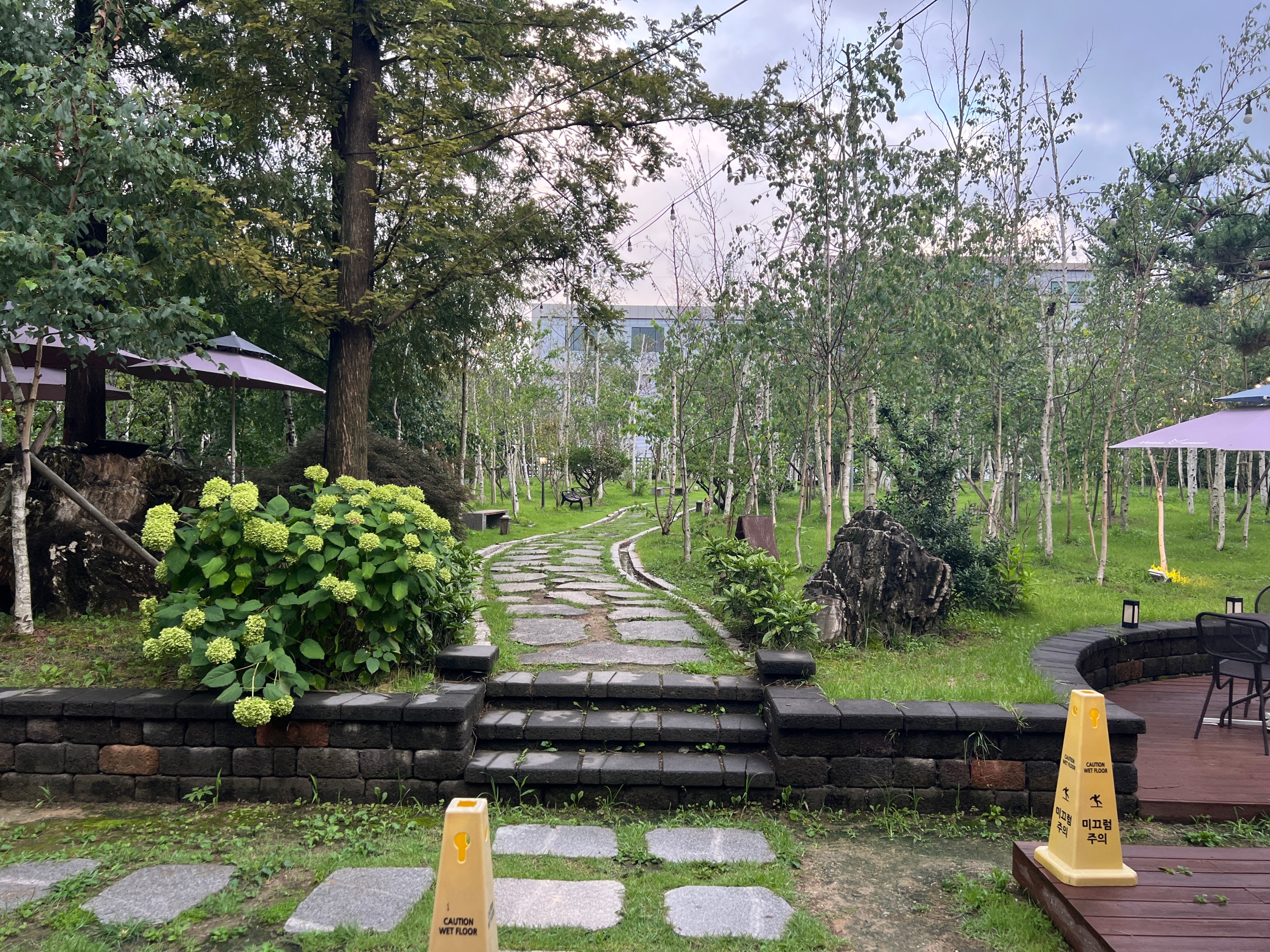 무슨 동화속 집을 찾아가는 것처럼 잘 가꾸어진 정원길을 따라가다보면 카페 건물이 나온다.