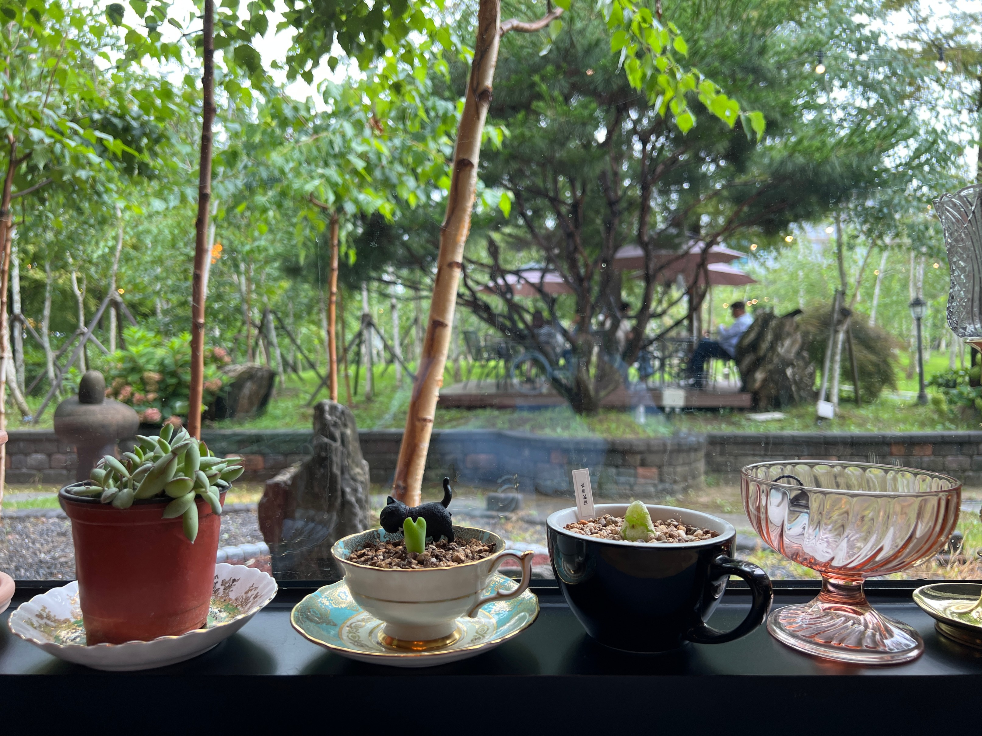 벽면은 이런 식으로 커피잔을 활용해 다육이들이 심어져 있다.