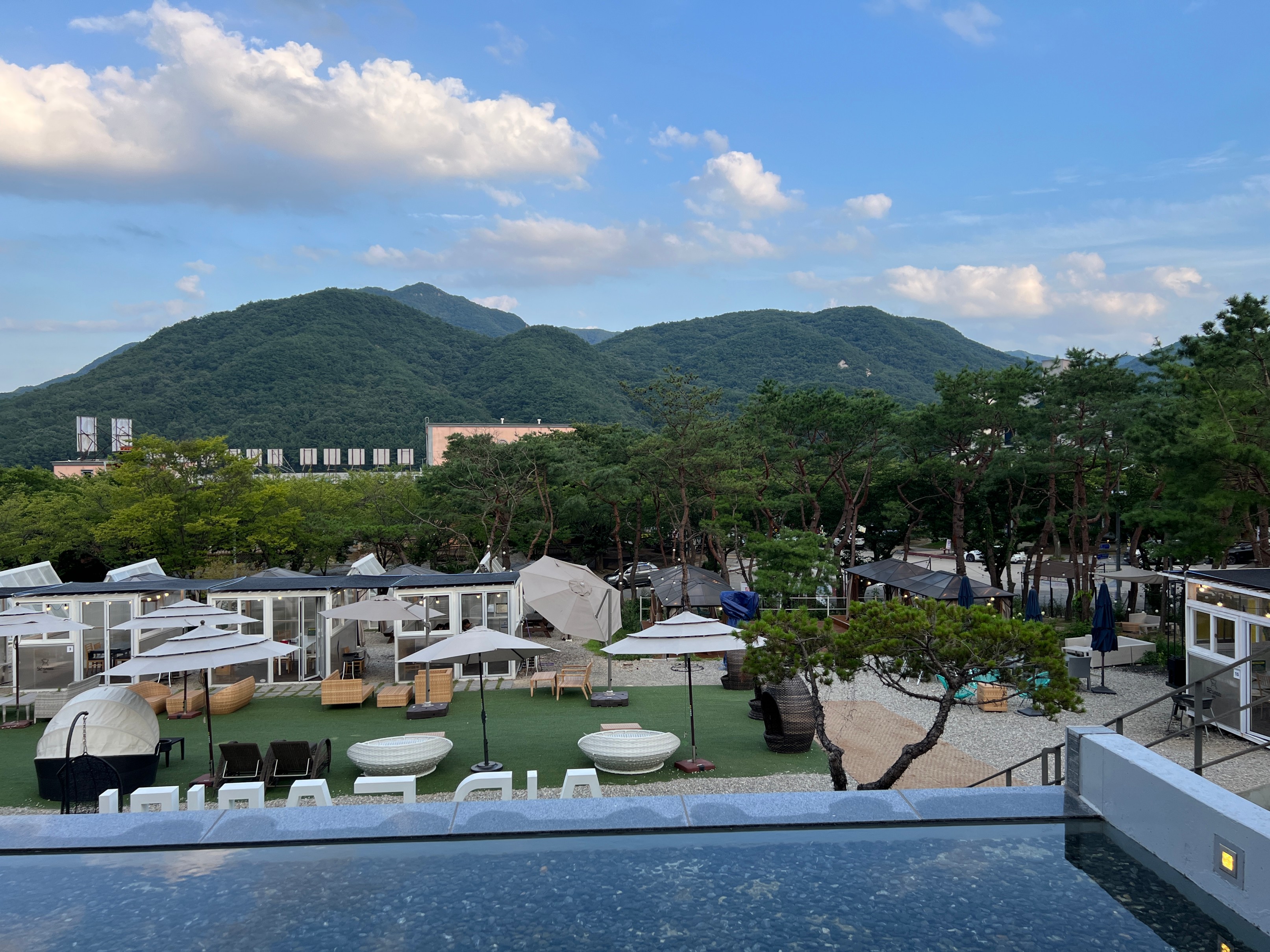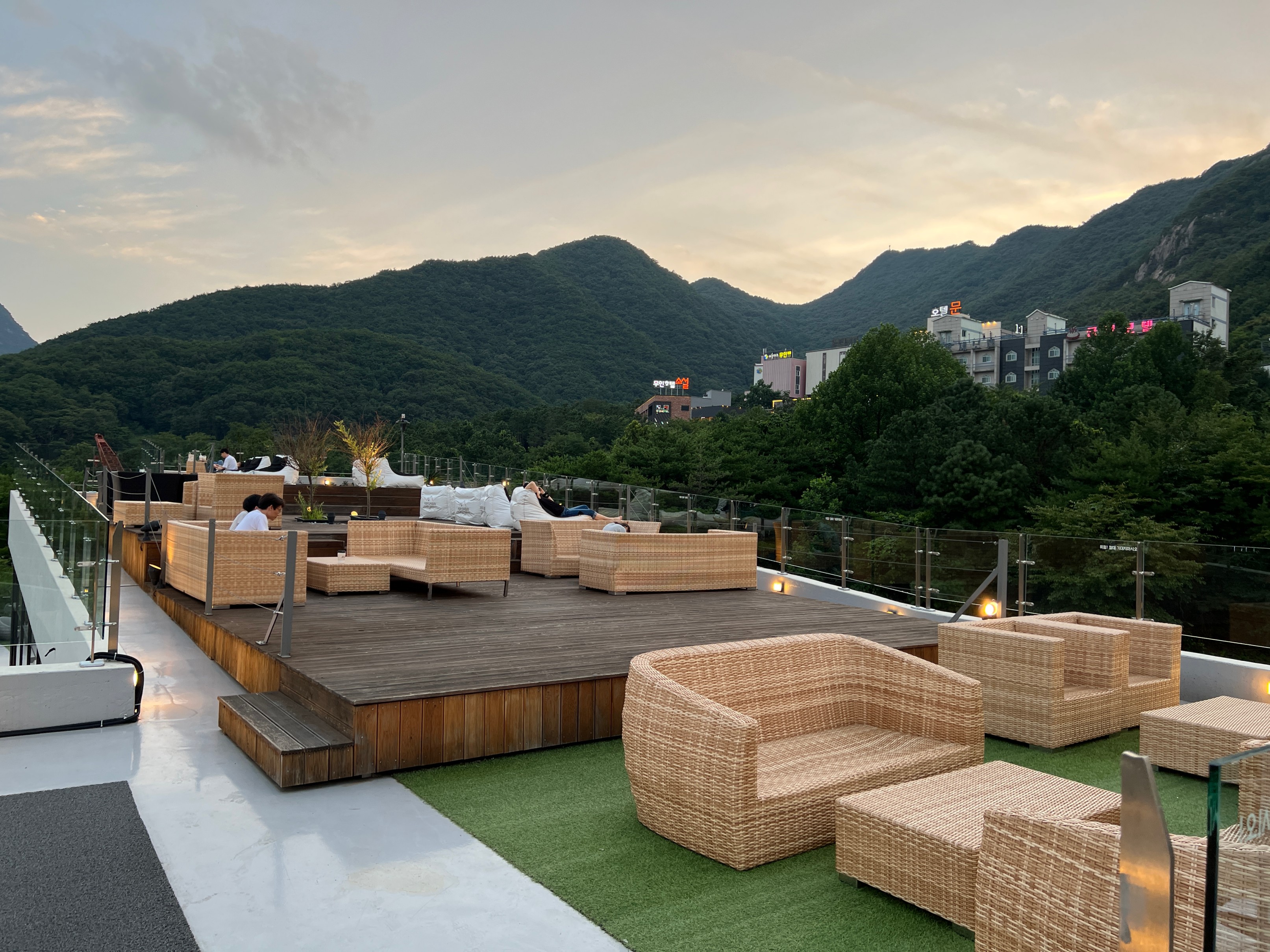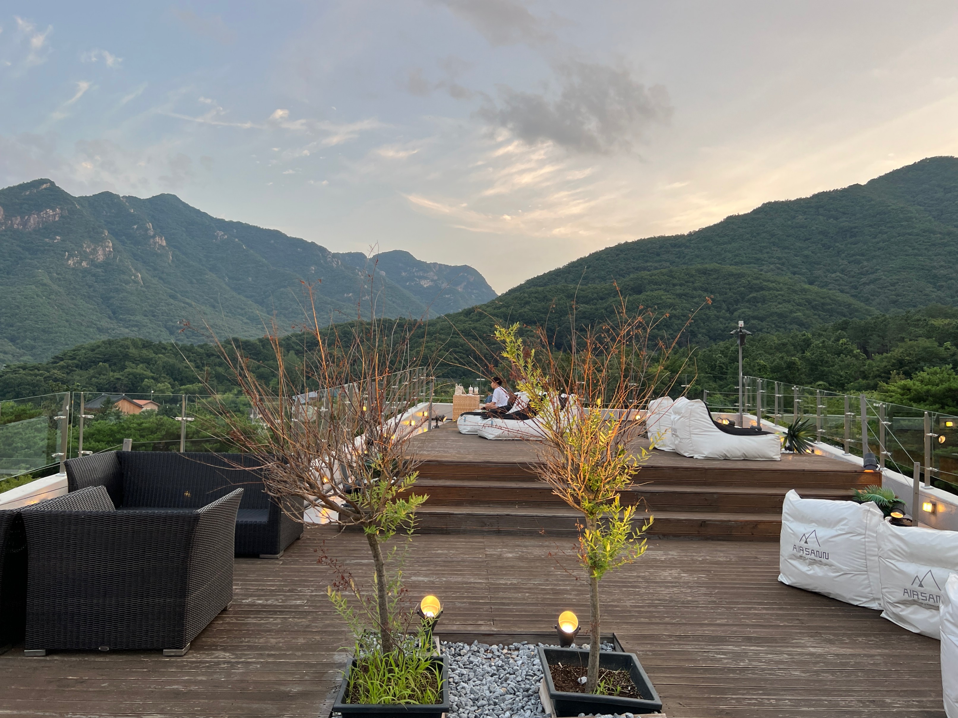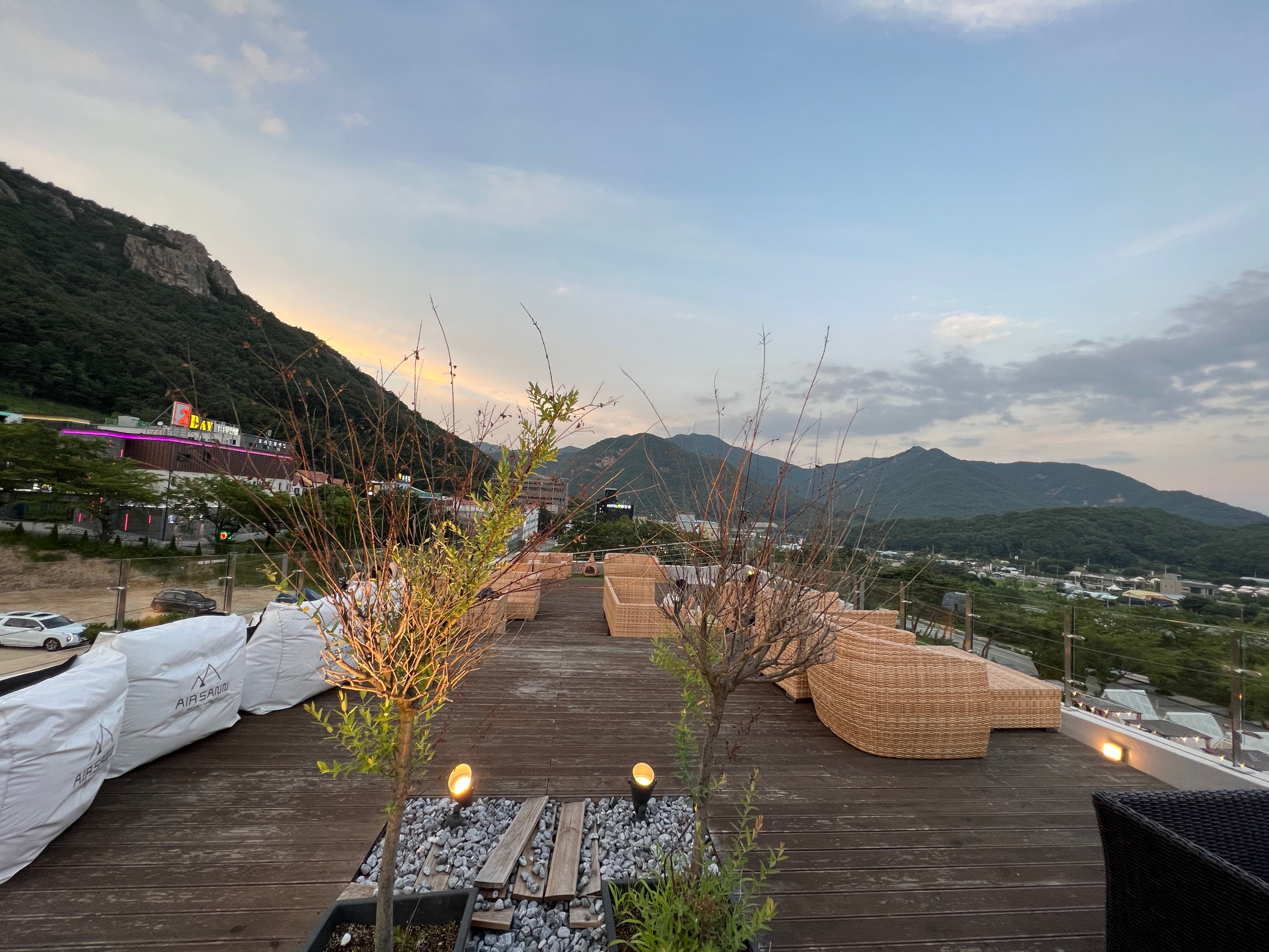 루프탑에서 바라보면 계룡산이 바로 등 뒤에서 감싸고 있는데 그 풍경이 굉장히 멋지다