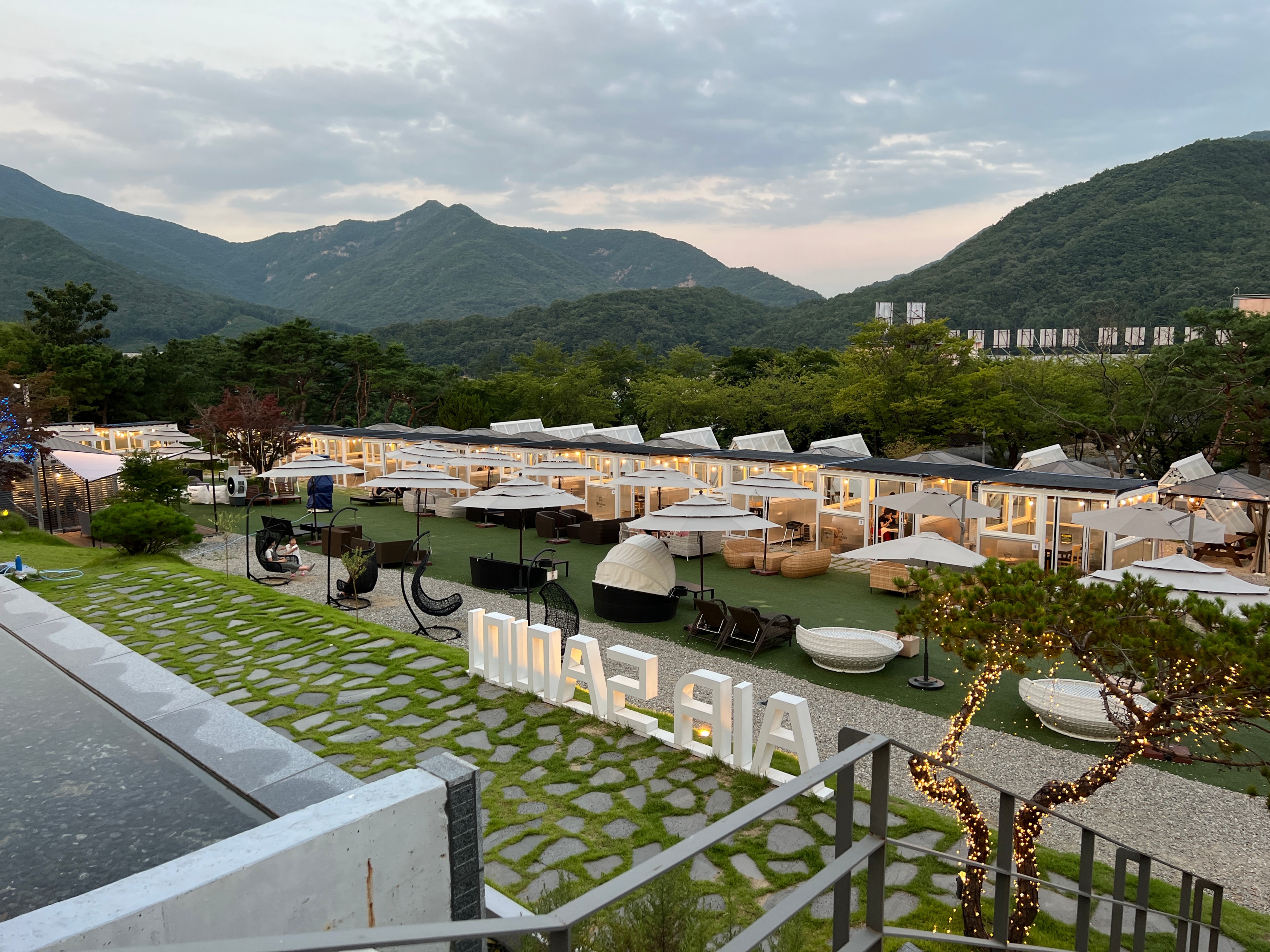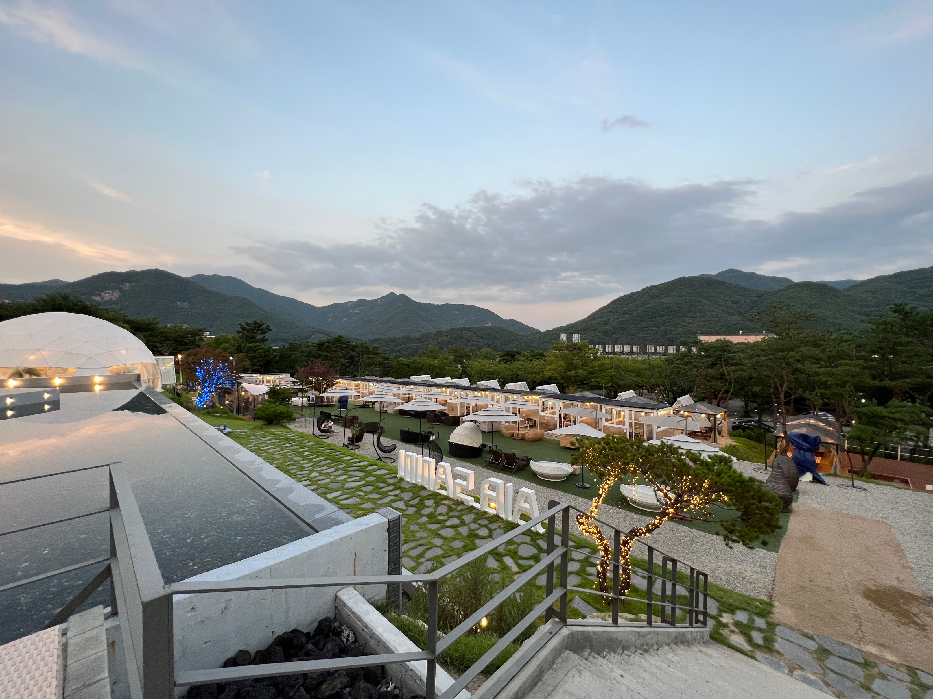 루프탑에서 바라보면 계룡산이 바로 등 뒤에서 감싸고 있는데 그 풍경이 굉장히 멋지다