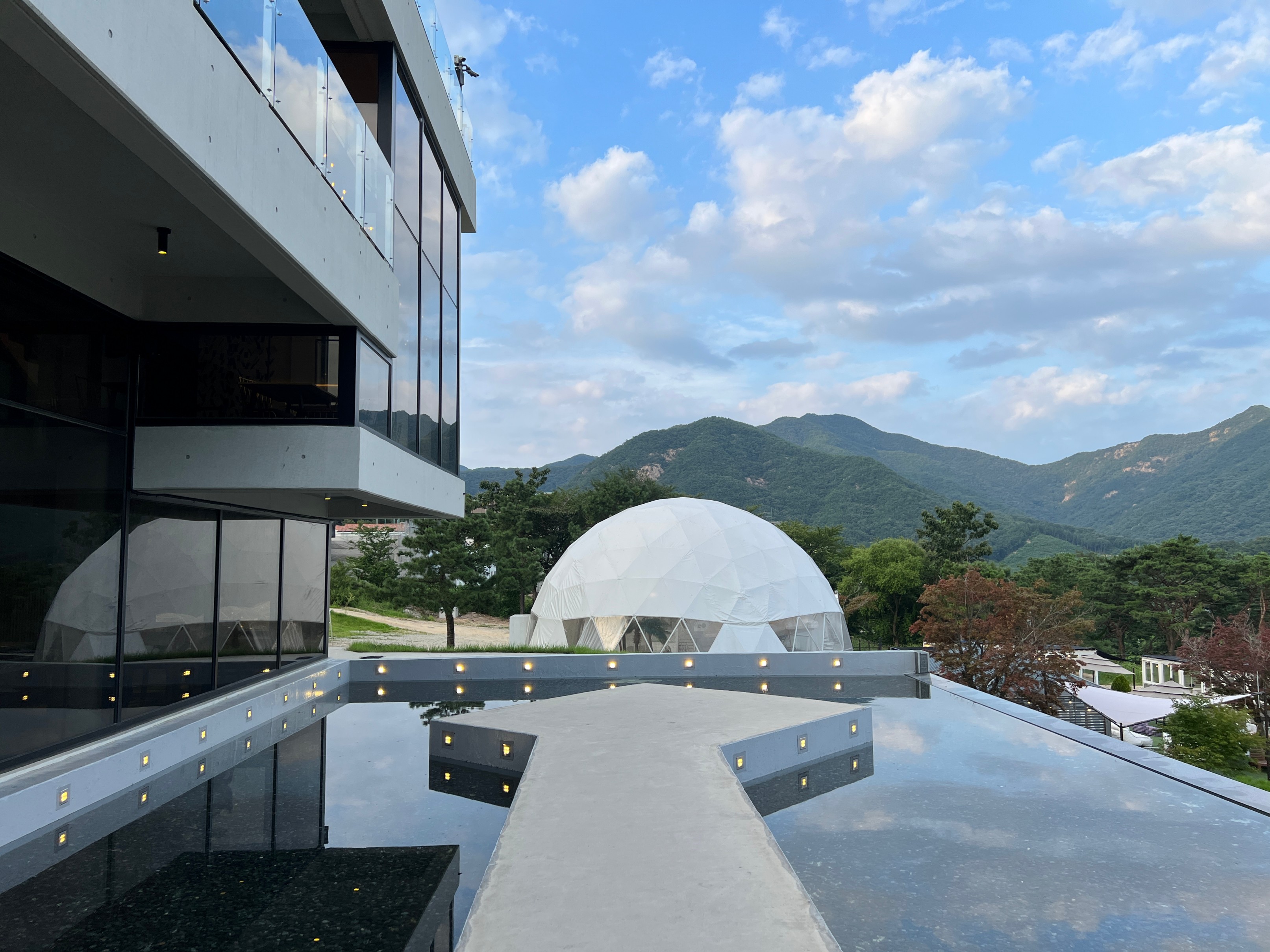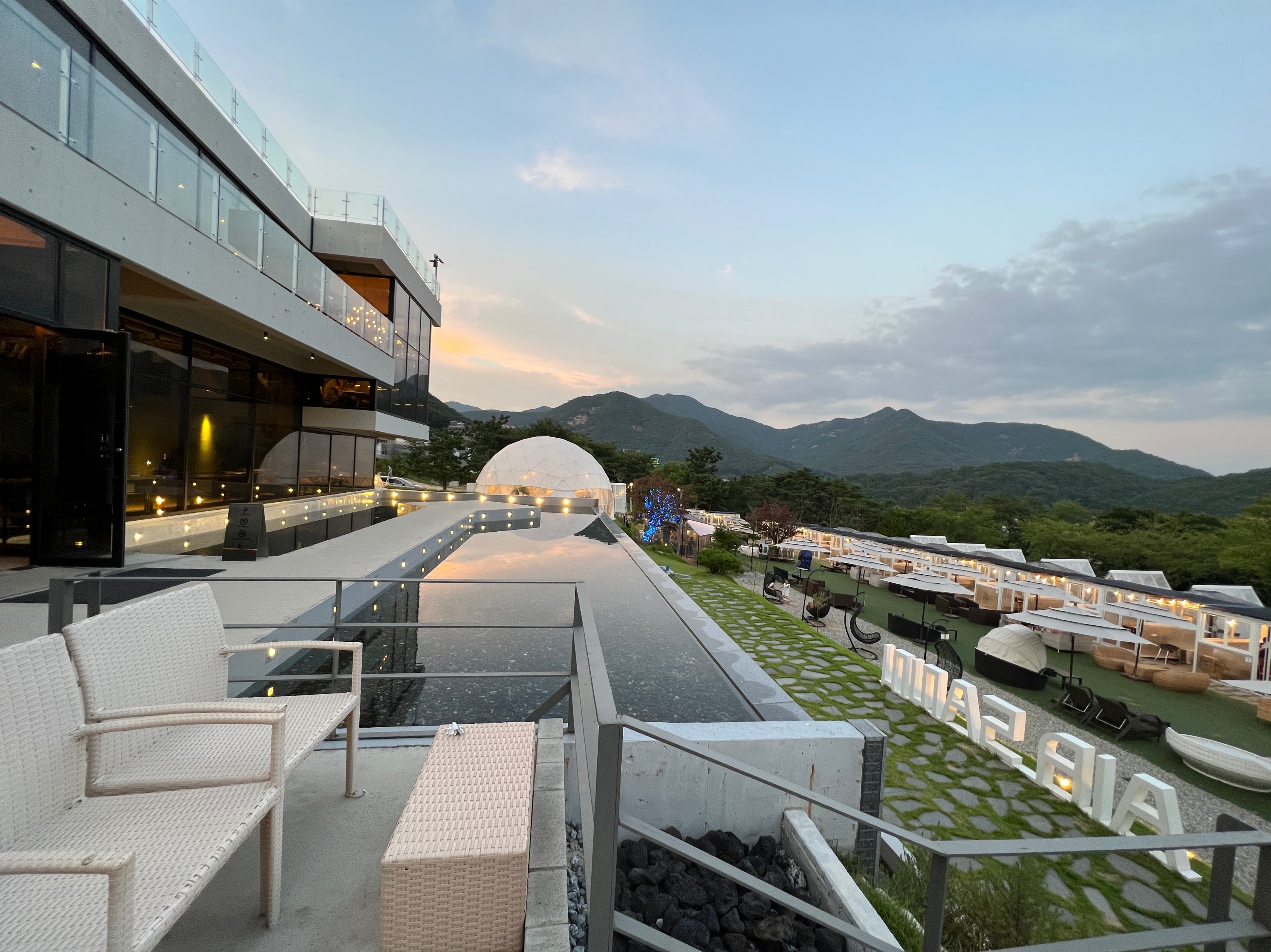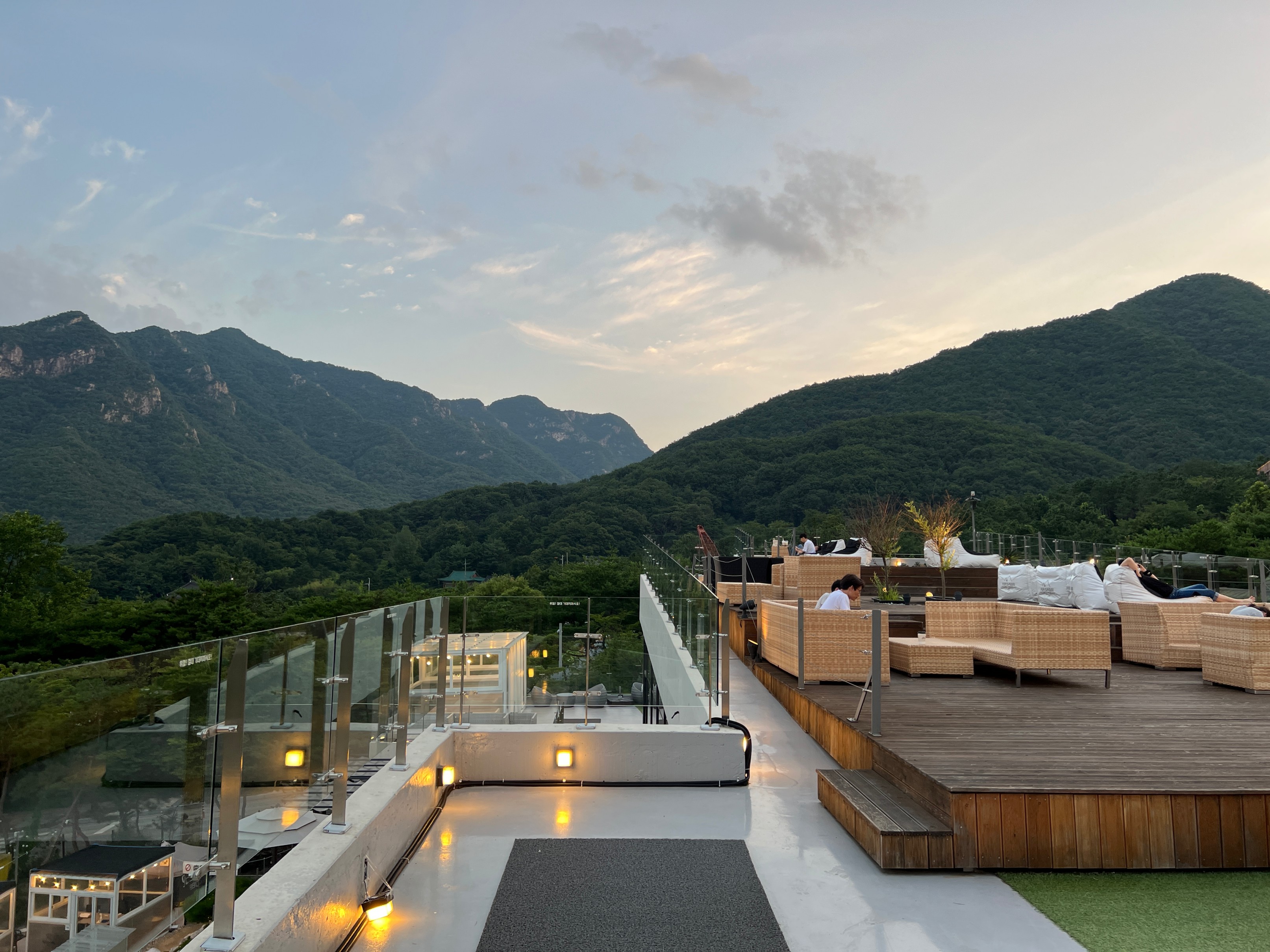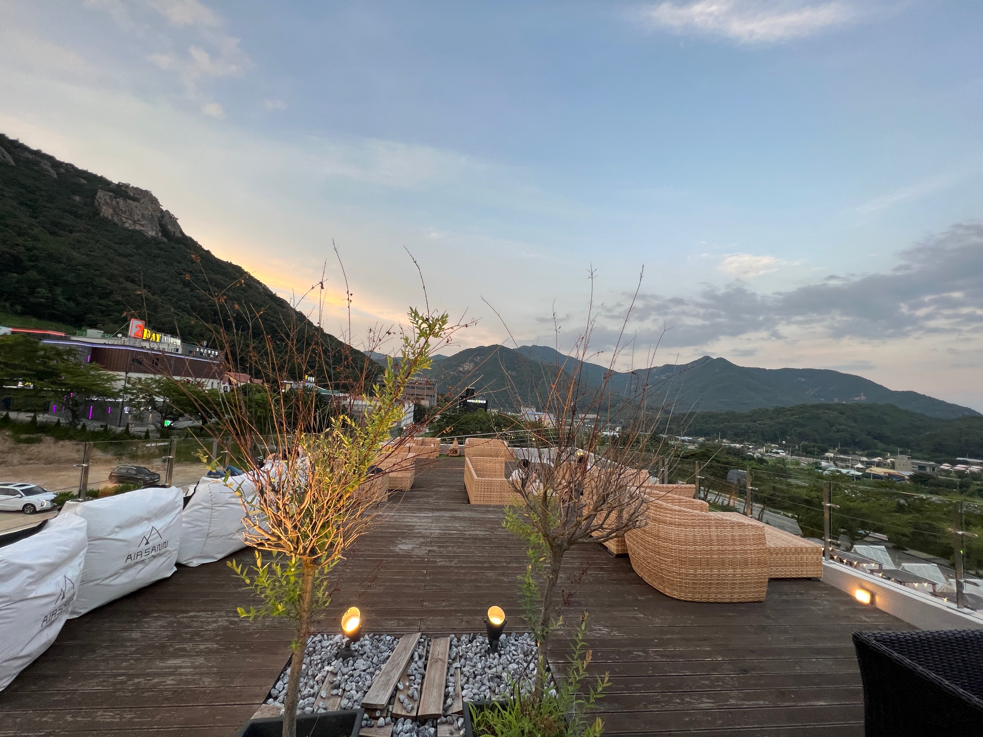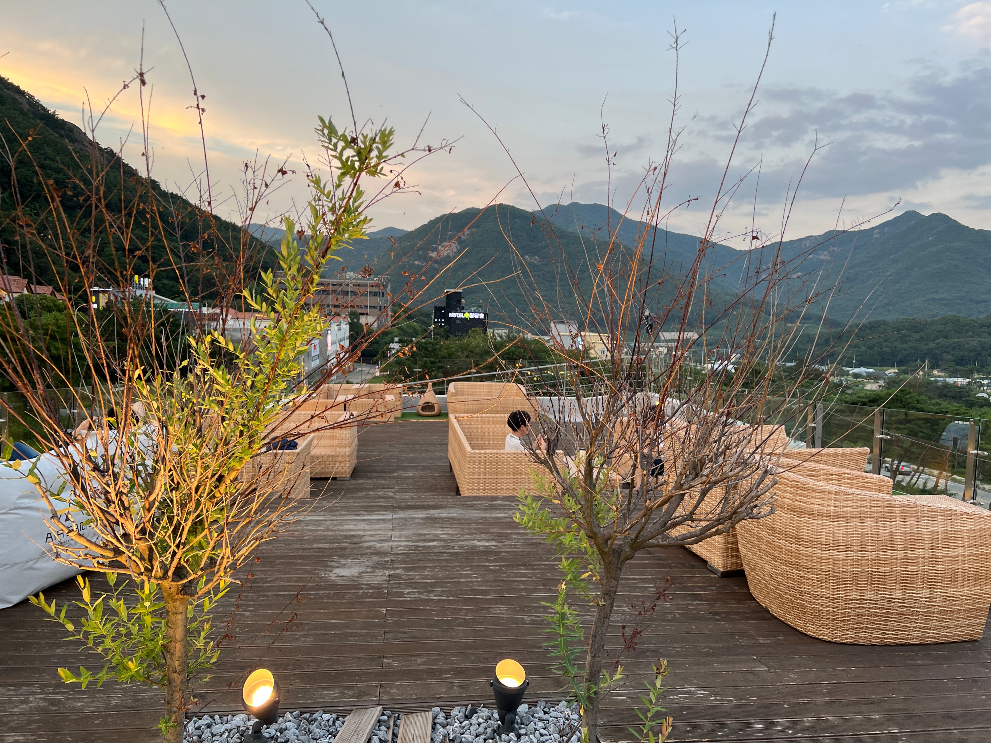 루프탑에서 바라보면 계룡산이 바로 등 뒤에서 감싸고 있는데 그 풍경이 굉장히 멋지다
