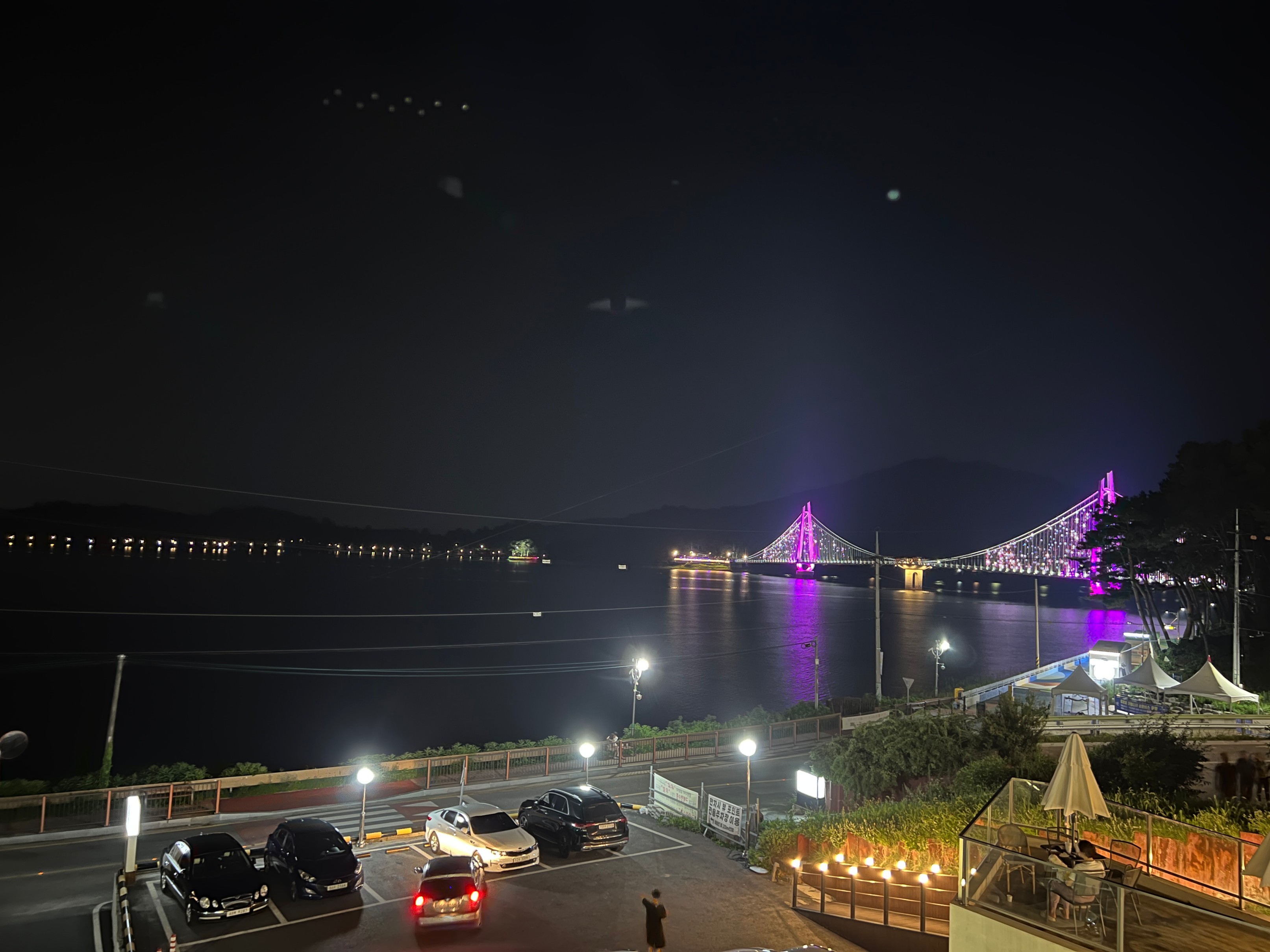 시간이 조금 지나니 불빛이 시간이 조금 지나니 다리에 불빛이 켜졌다.