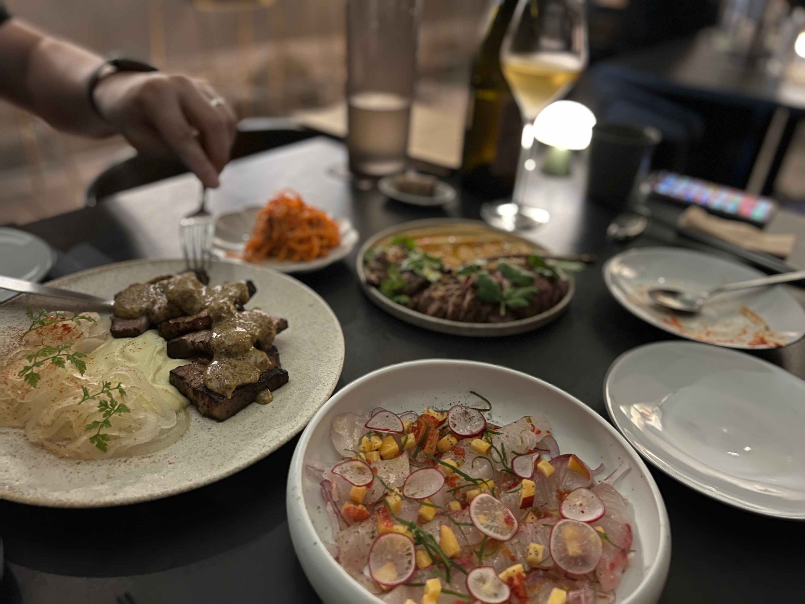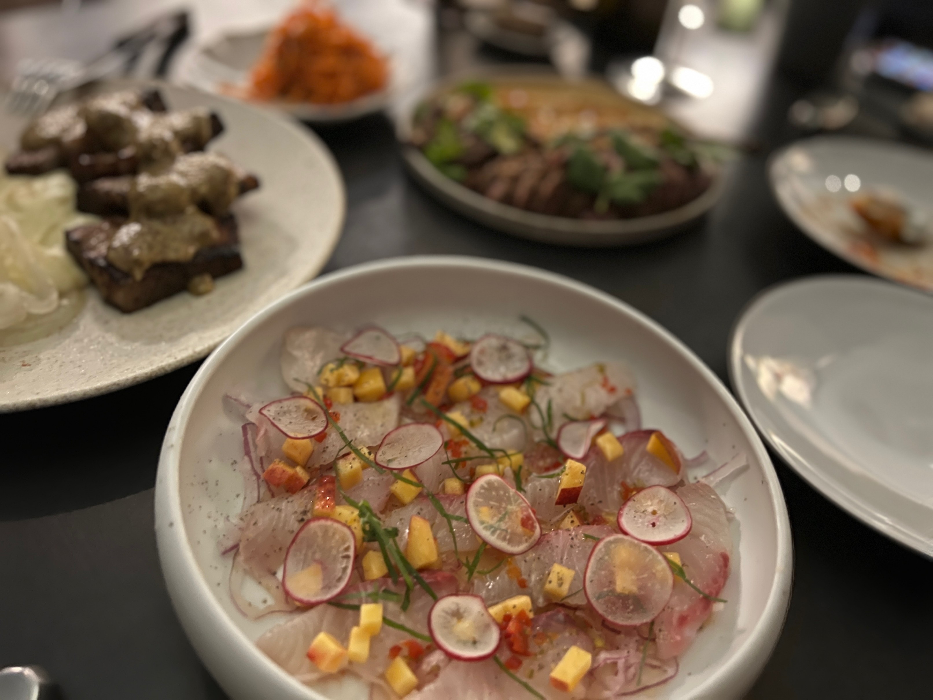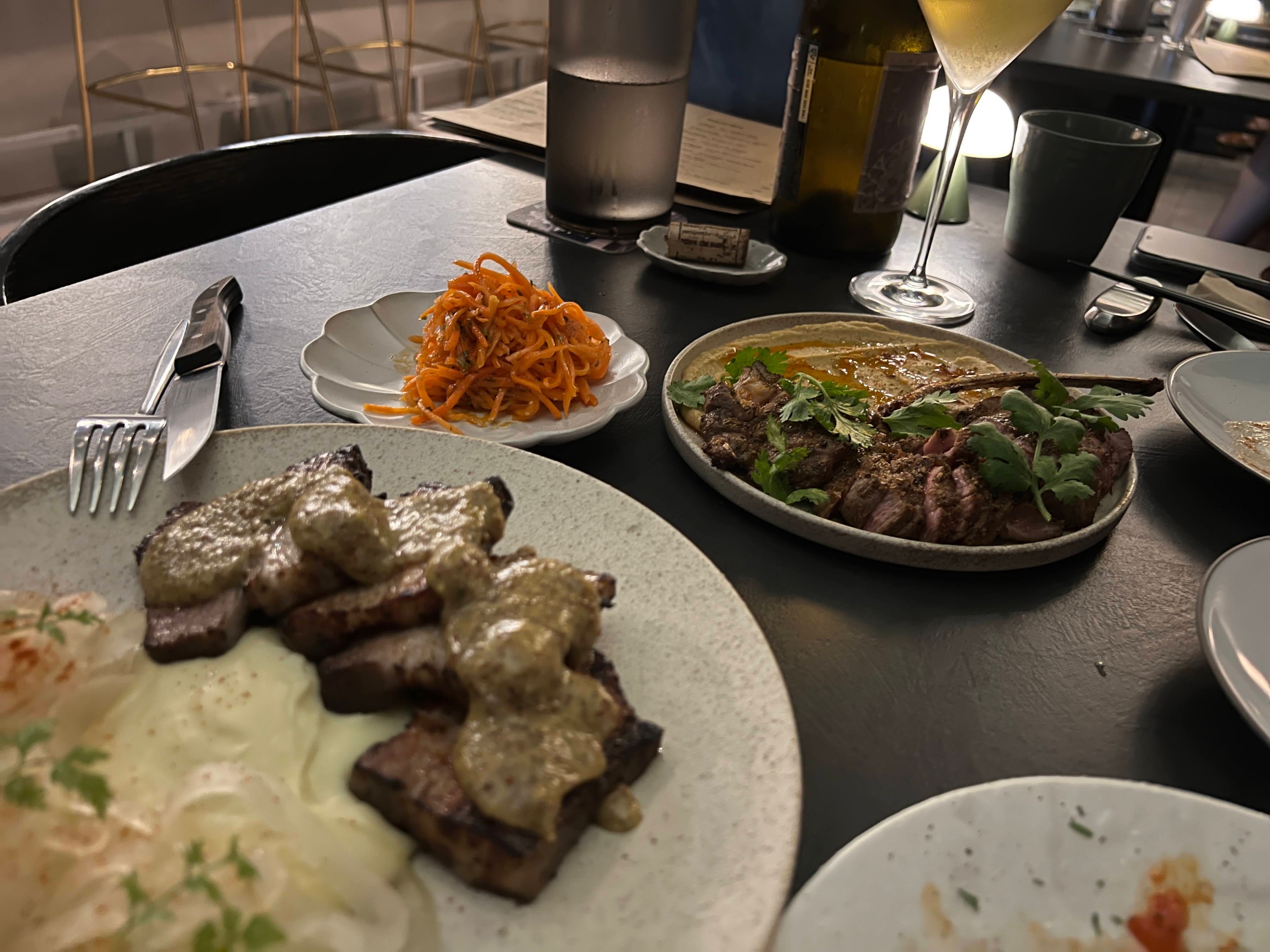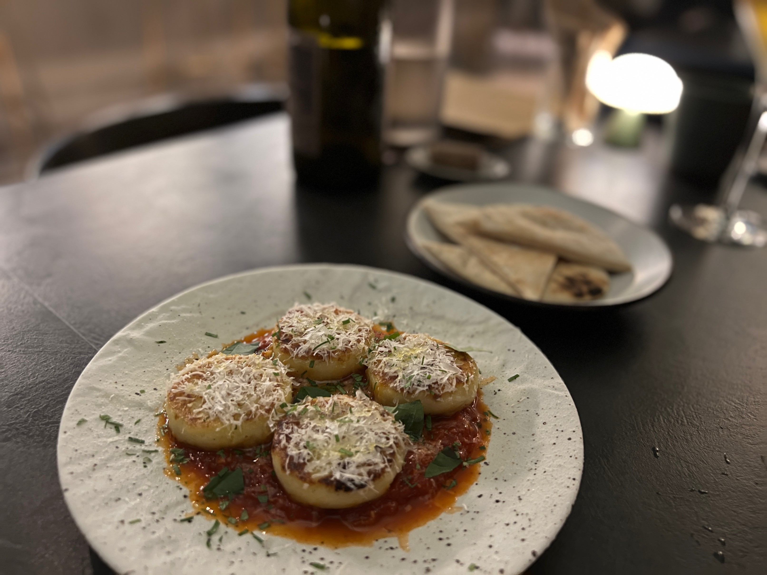 우리는 남자 세 명이서 갔는데 저기 메인 메뉴에 있는 메쉬드 포테이트와 그릴에 구운 삼겹살, 차이 스타일 양갈비 그리고 토마토 소스와 두뼉감자 뇨끼를 주문했다.