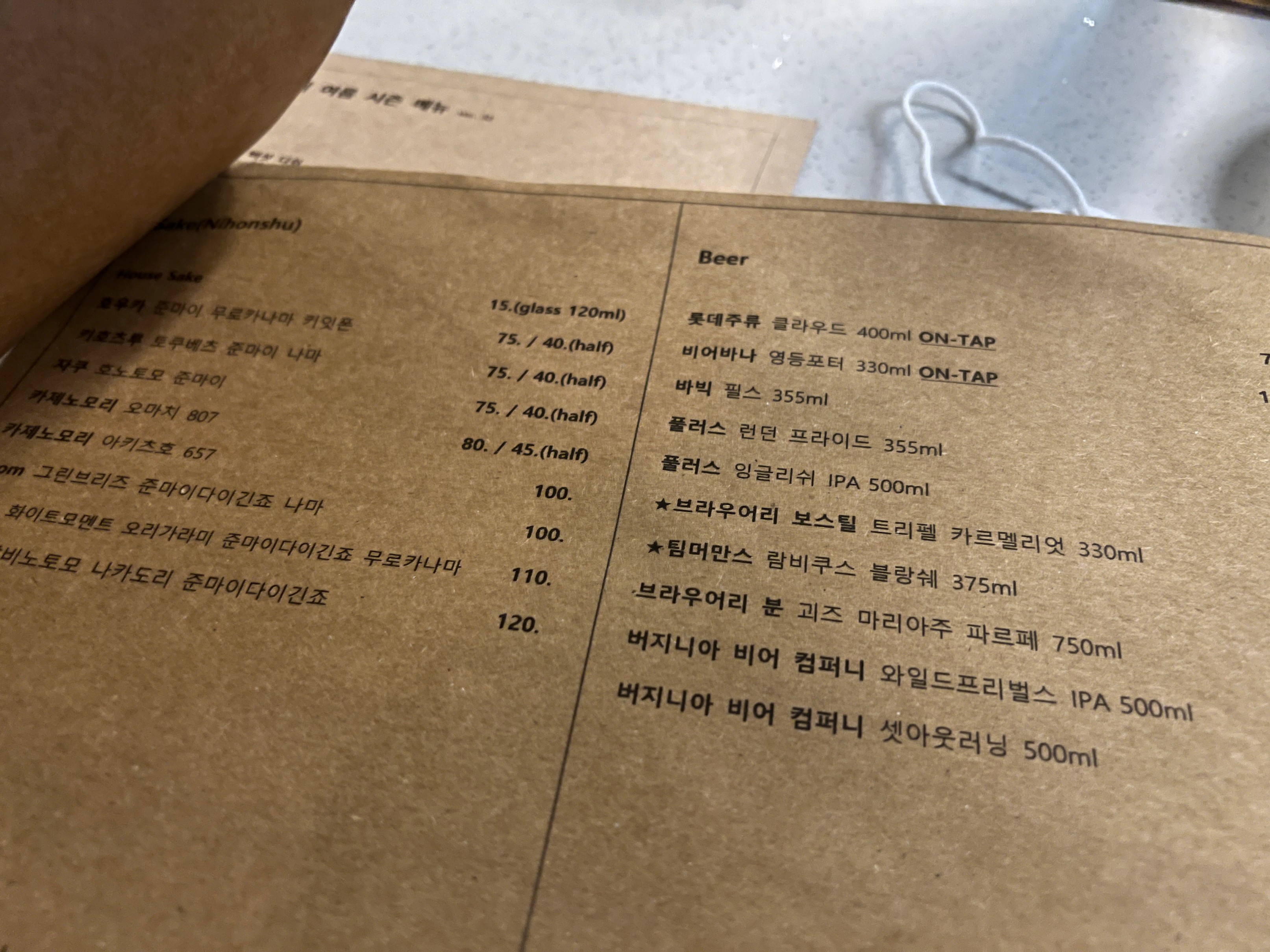 수제 맥주를 파는 곳인데 여느 수제 맥주 가게들처럼 맥주 가격은 대략 7천 원에서 9천 원 사이이다.