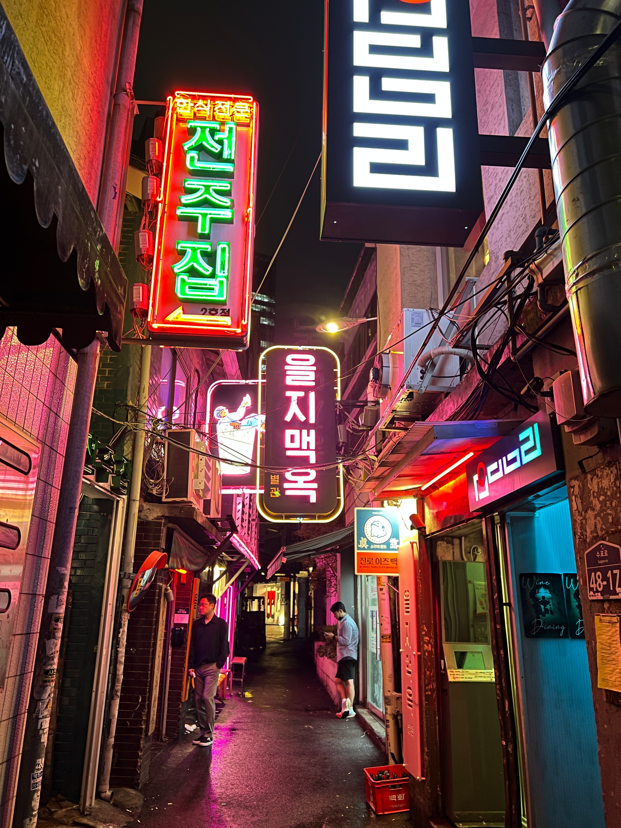 특별히 검색을 해서 간 건 아니고 을지로 해서 그냥 눈에 보이는 분위기 좋은 데로 들어가자고 가다 보니 을지맥옥이라는 간판이 화려하게 보이길래 저기로 들어갔다.