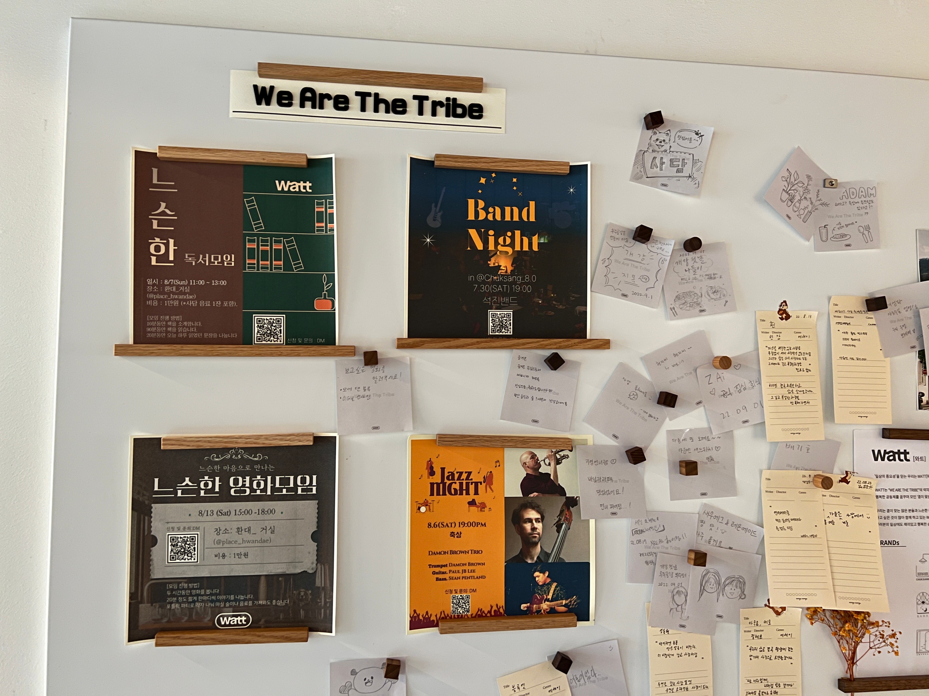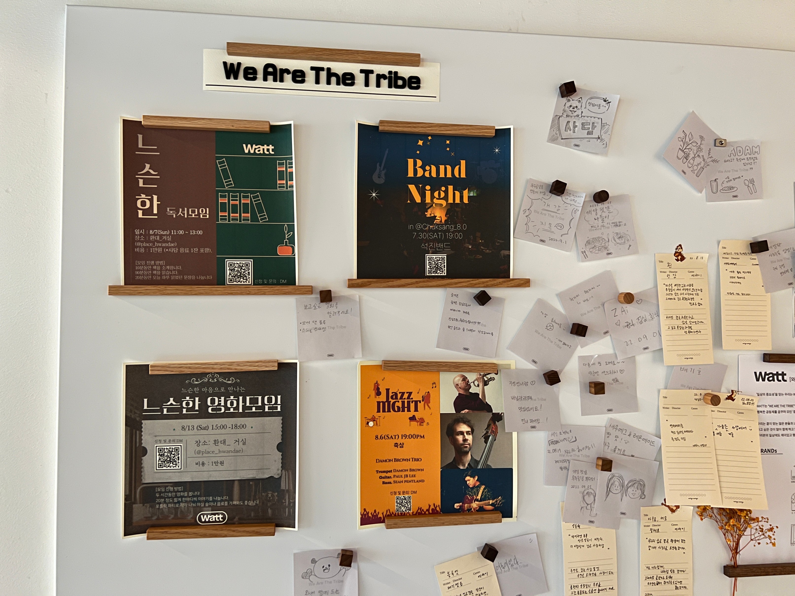 벽에 보니 이렇게 독서 모임 band night 이런 것들 모임에 관한 포스터가 붙어 있다.