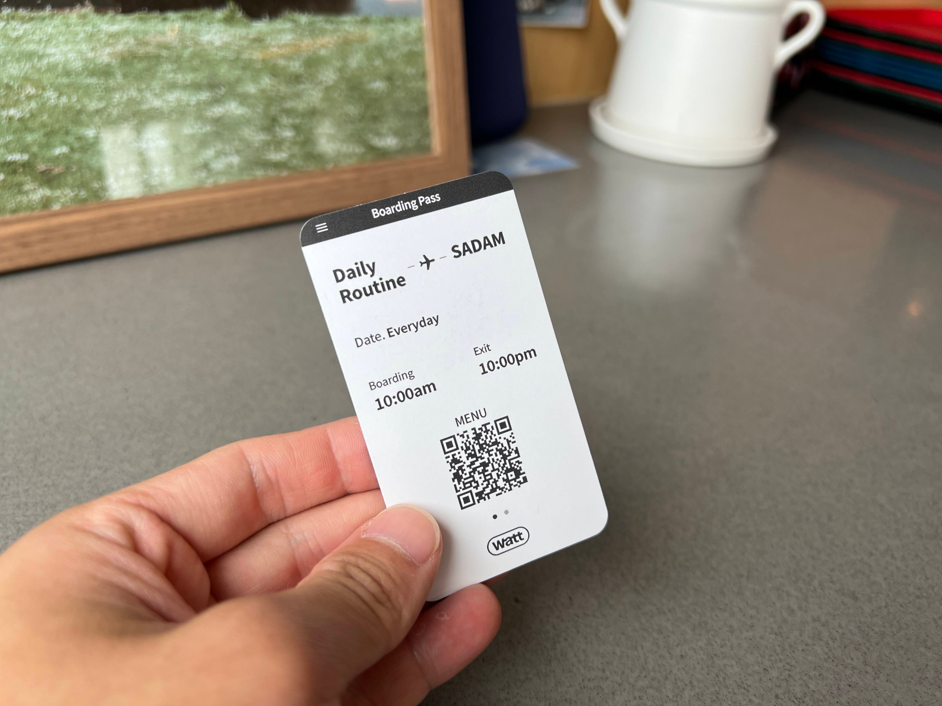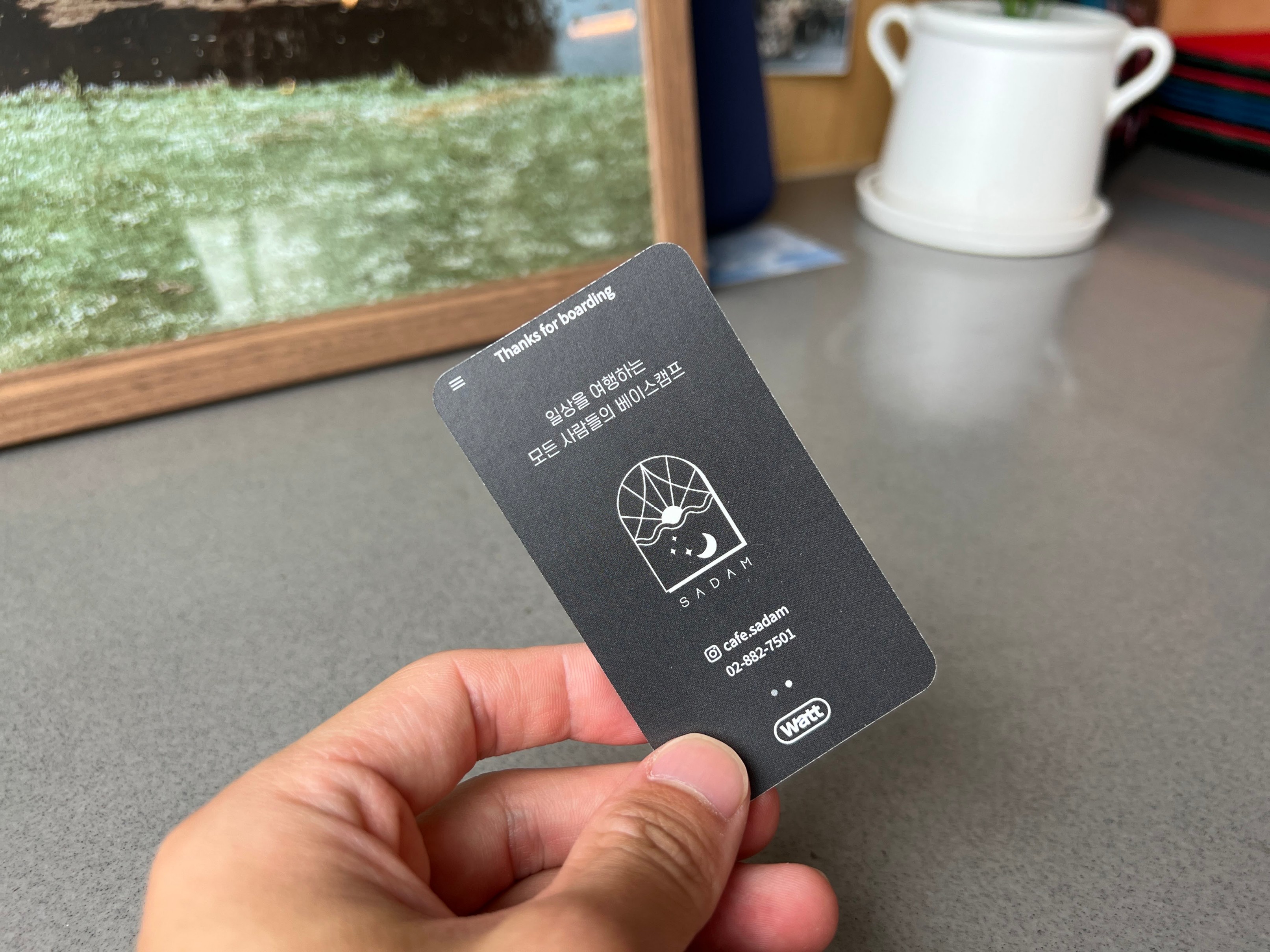 여기는 주문을 할 때 이 명함 같은 거에 적혀있는 qr 코드를 찍어서 주문을 하면 된다