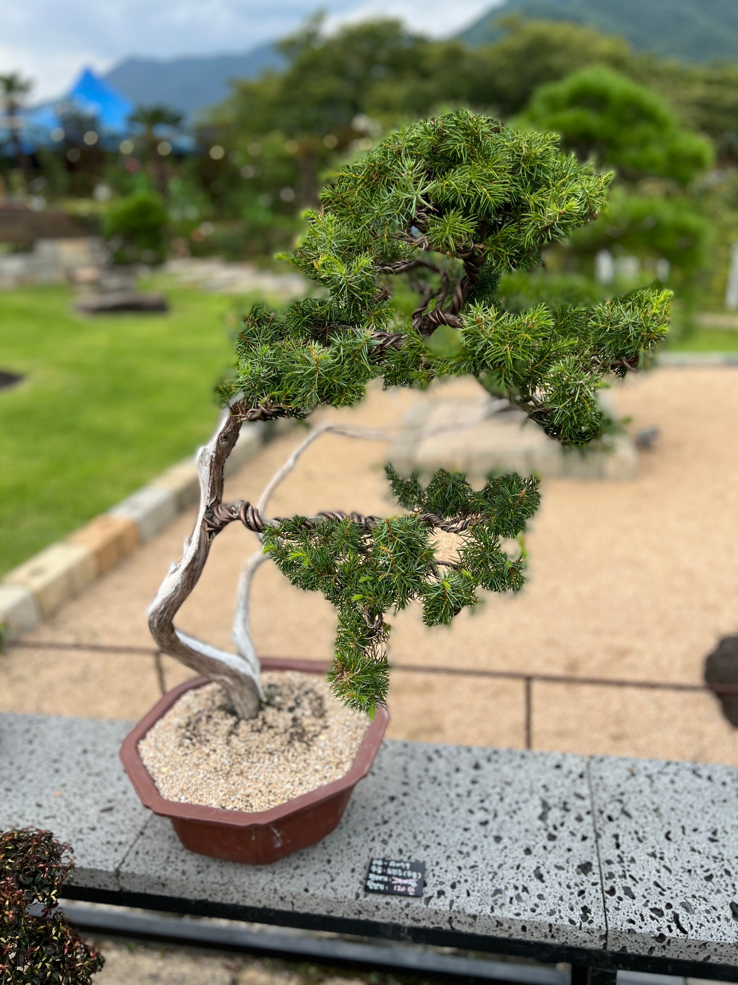 입구에 엄청 멋있는 소나무 한 그루가 서 있는데 딱 봐도 값어치가 나아 보이는 소나무다