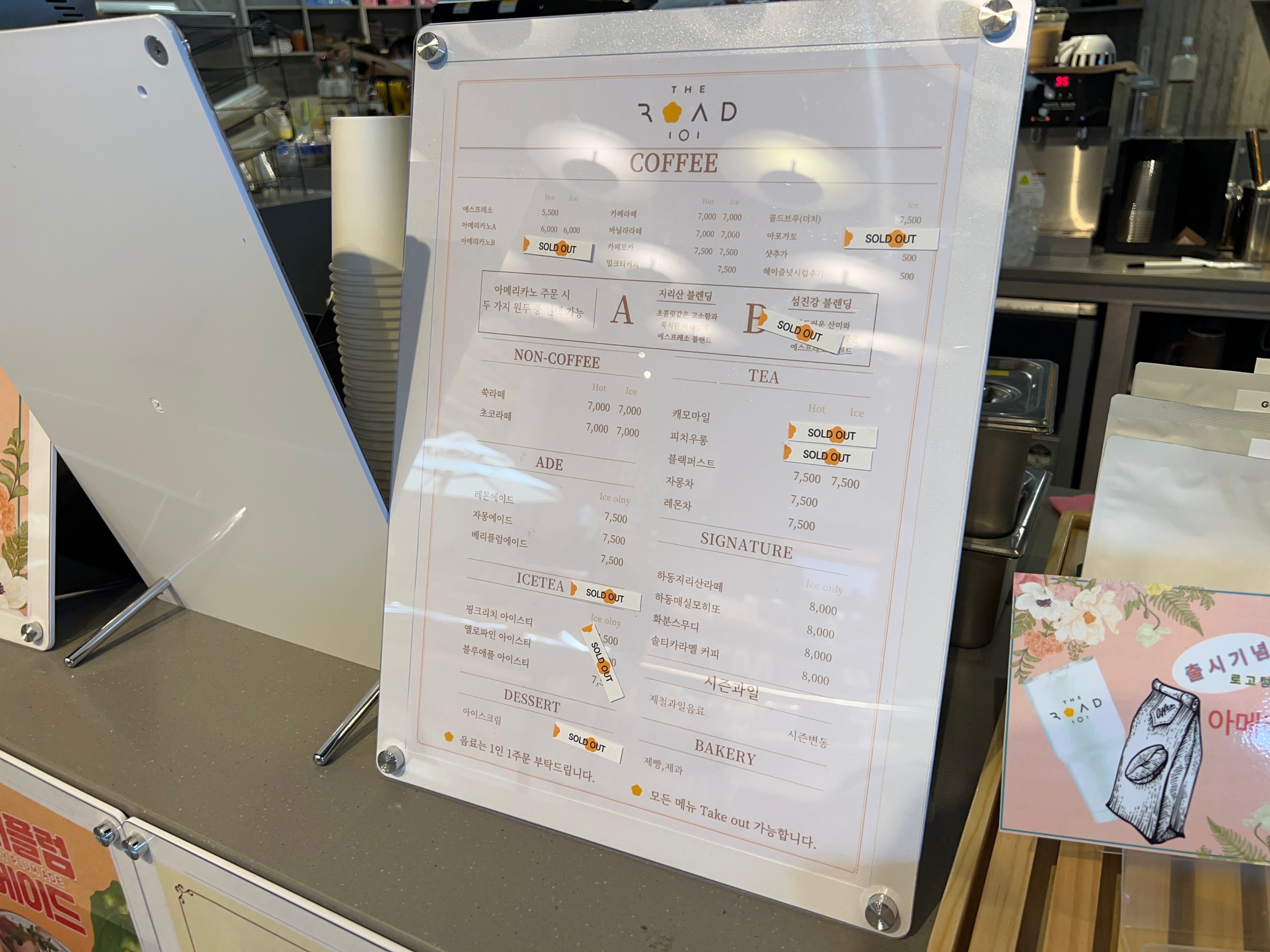 아무리 핫플 카페에 오더라도 보통 6천 원에서 7천 원 사이면 끝나는데 여기는 평균적으로 7천 원 이상이다보니 커피 가격은 굉장히 비싼 편이다.