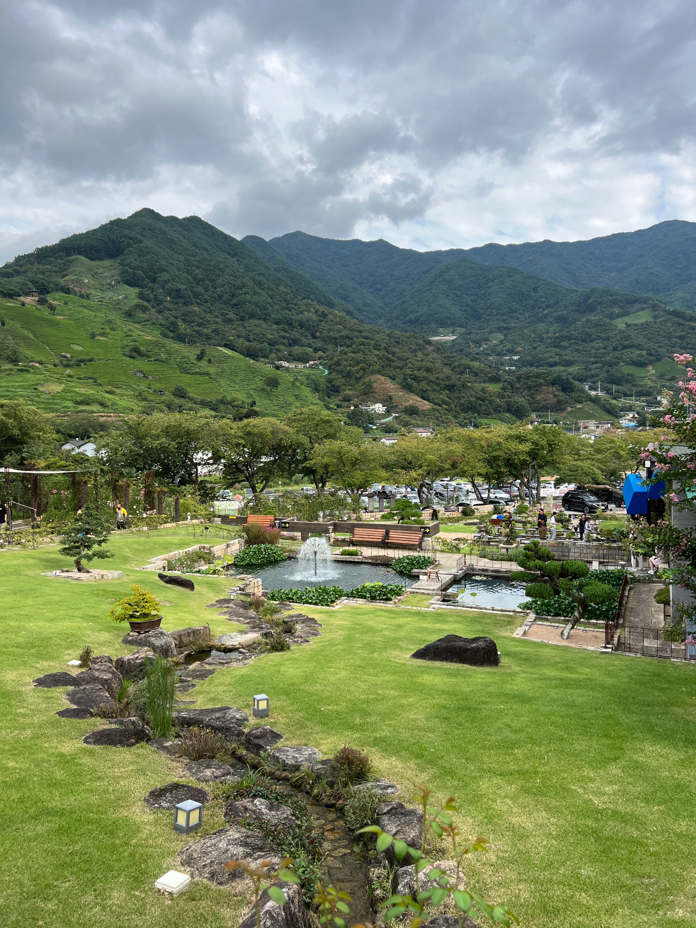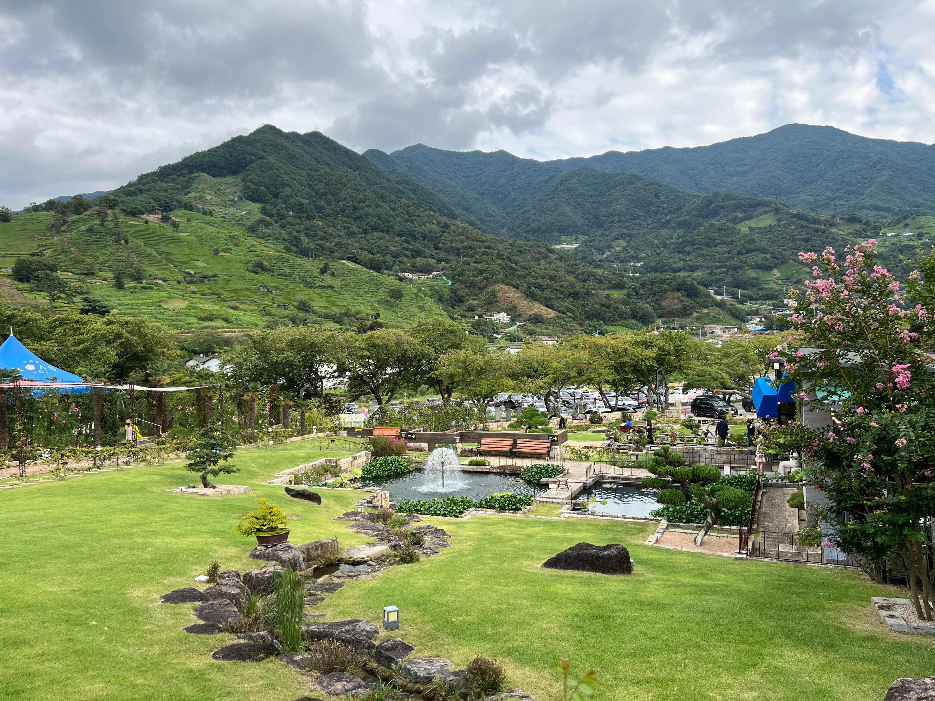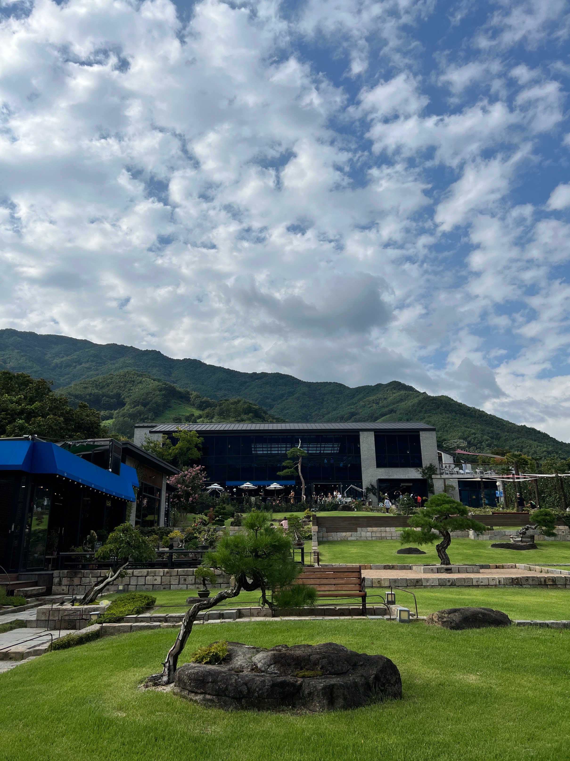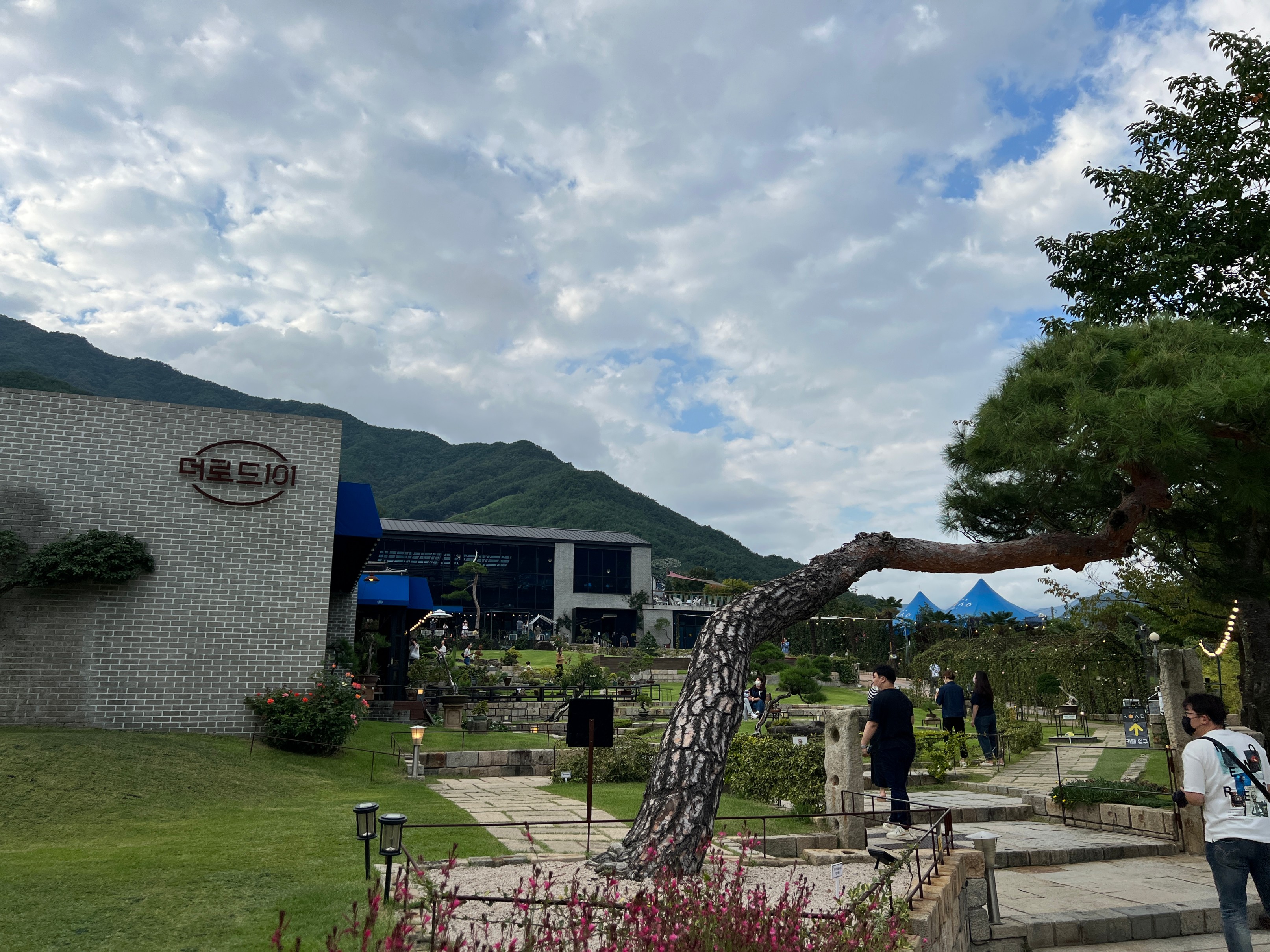 그렇게 입구로 들어가면 잘 꾸며진 정원과 뒤편에 카페 건물이 보인다.
