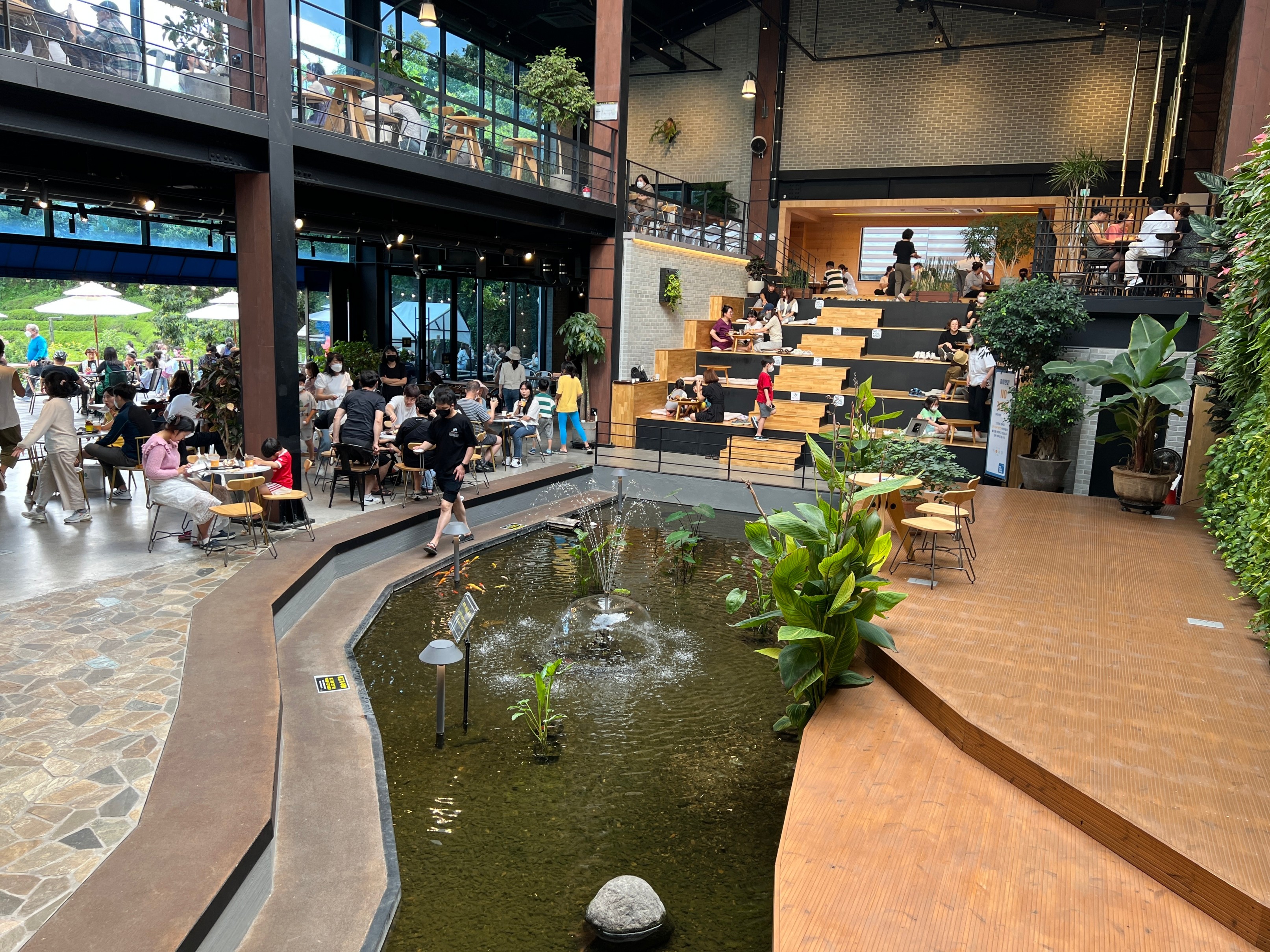 이 카페의 특이한 인테리어 요소 중에 하나는 바로 이렇게 실내에 연못이 있다는 점이다.